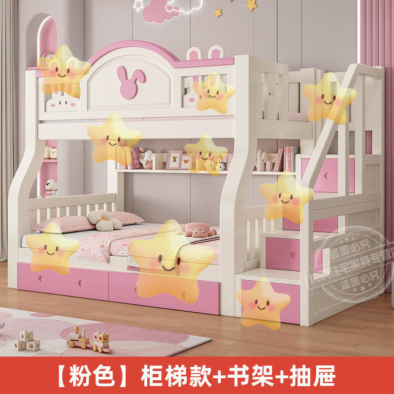 • (핑크색 침대에는 매트리스가 포함되어 있습니다.) 캐비닛 사다리 + 책장 + 서랍 + 위층 배송