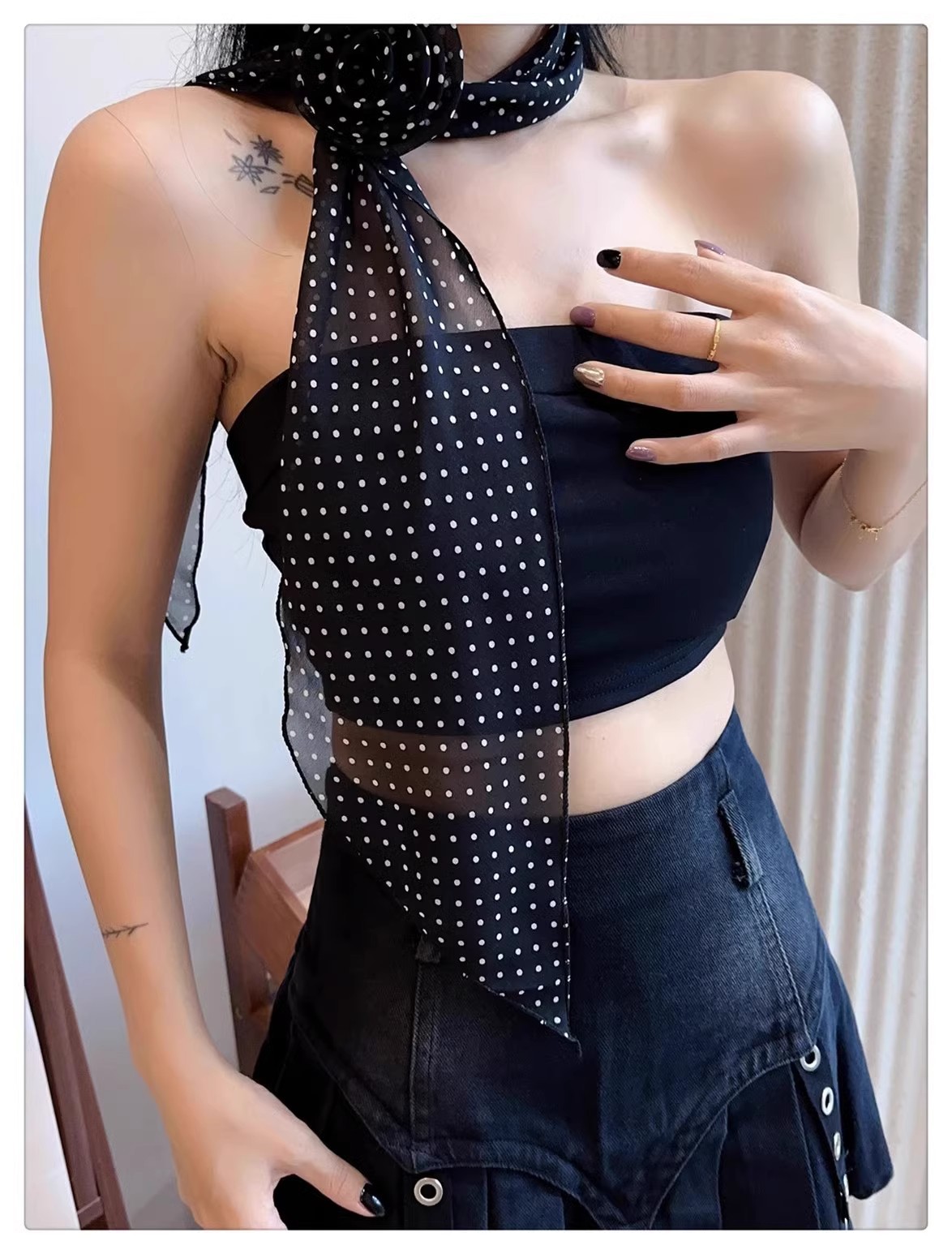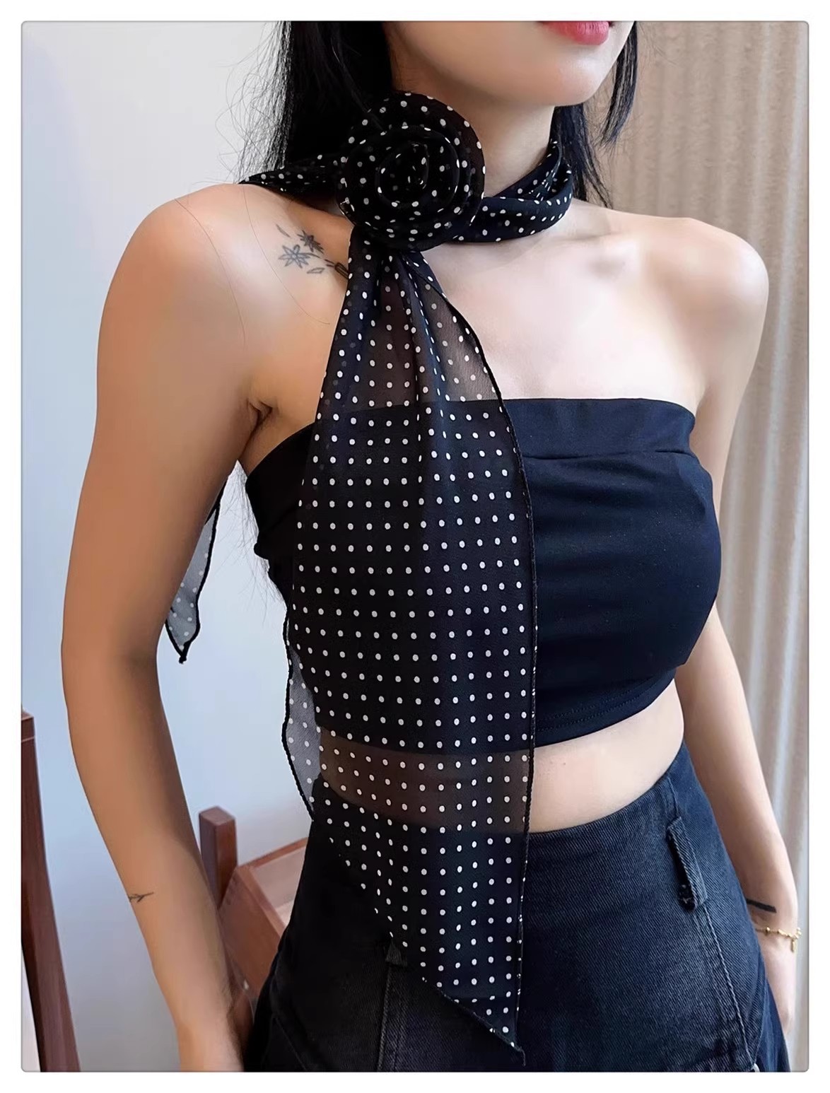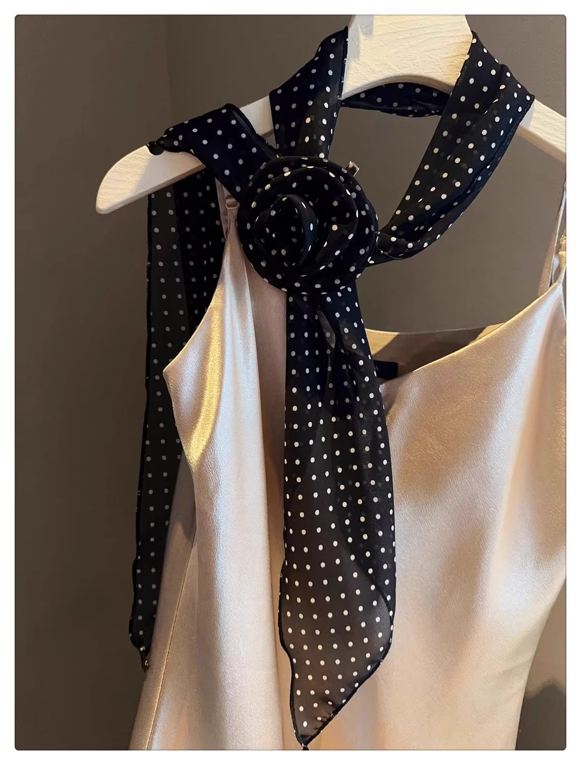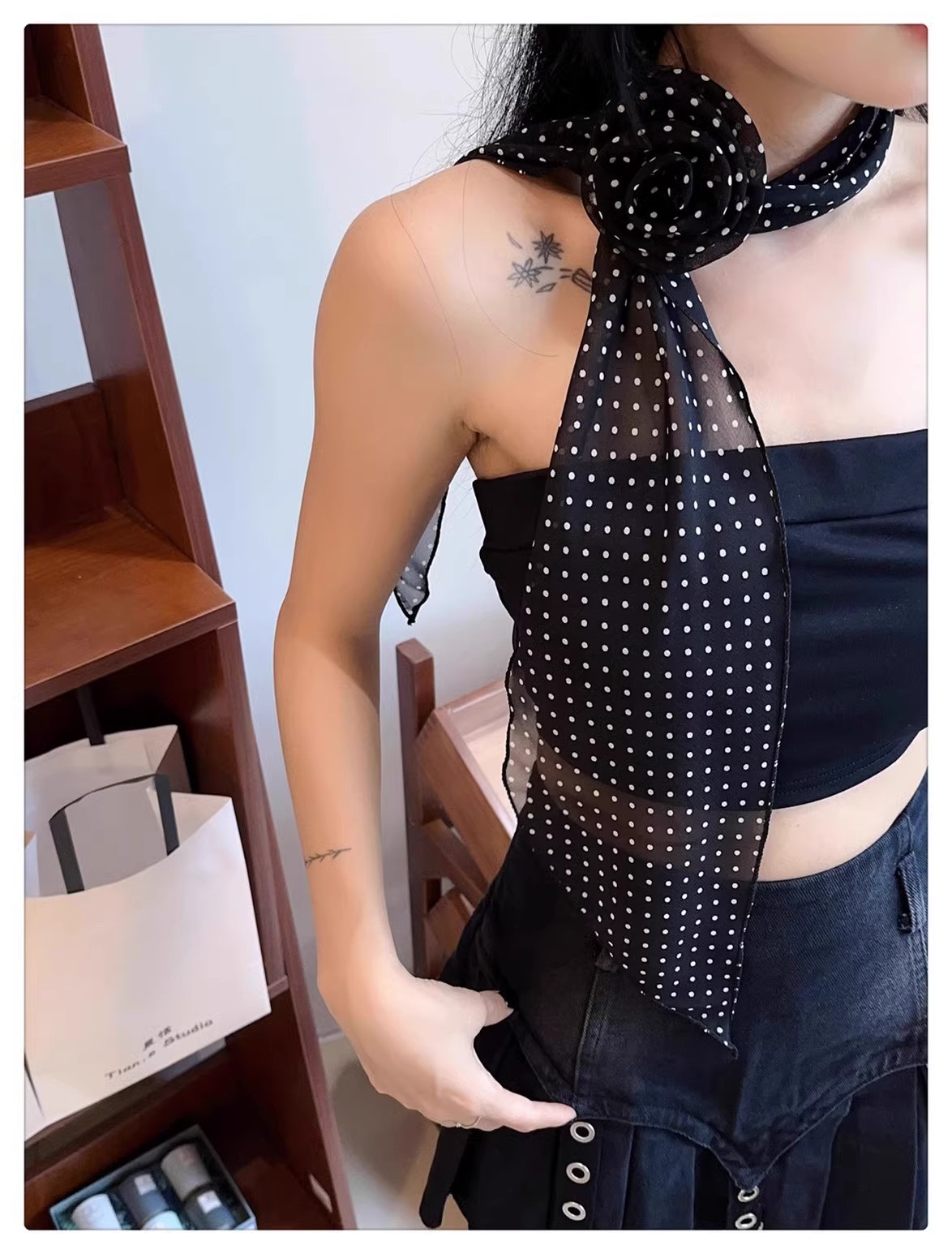 빈티지 간단한 장미 긴 스카프 여자 밀레니엄 스파이스 걸스 블랙 웨이브 도트 리본 봄과 여름을위한 모든 경기 장식 스카프