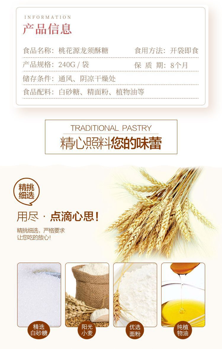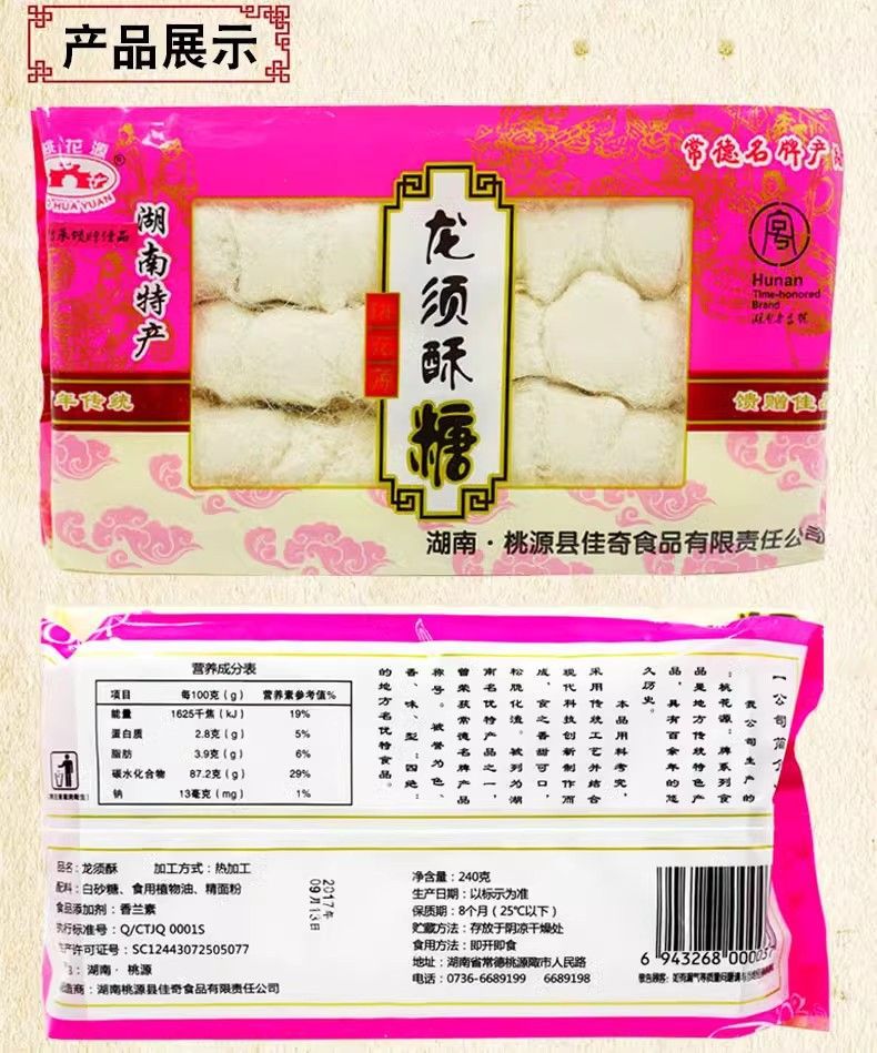 Hunan Taohuayuan Longxu 크리스프 구식 수제 Longxu 크리스프 전통 Longxu Candy Changde Specialty Bulk Pastry