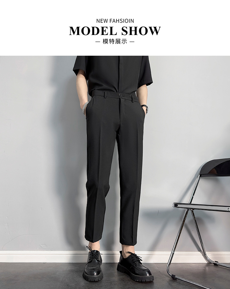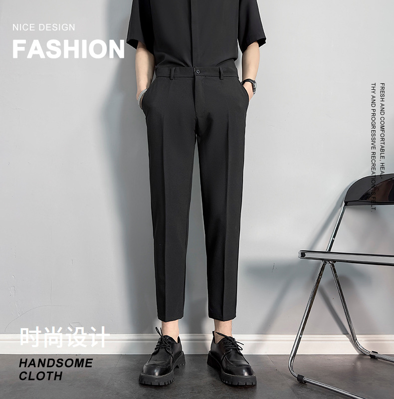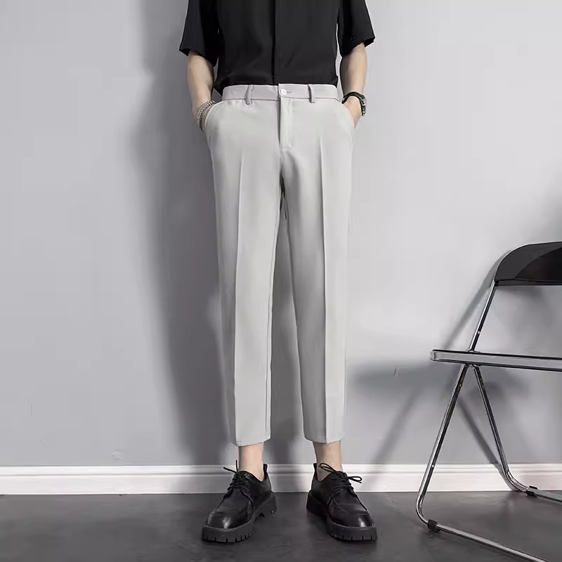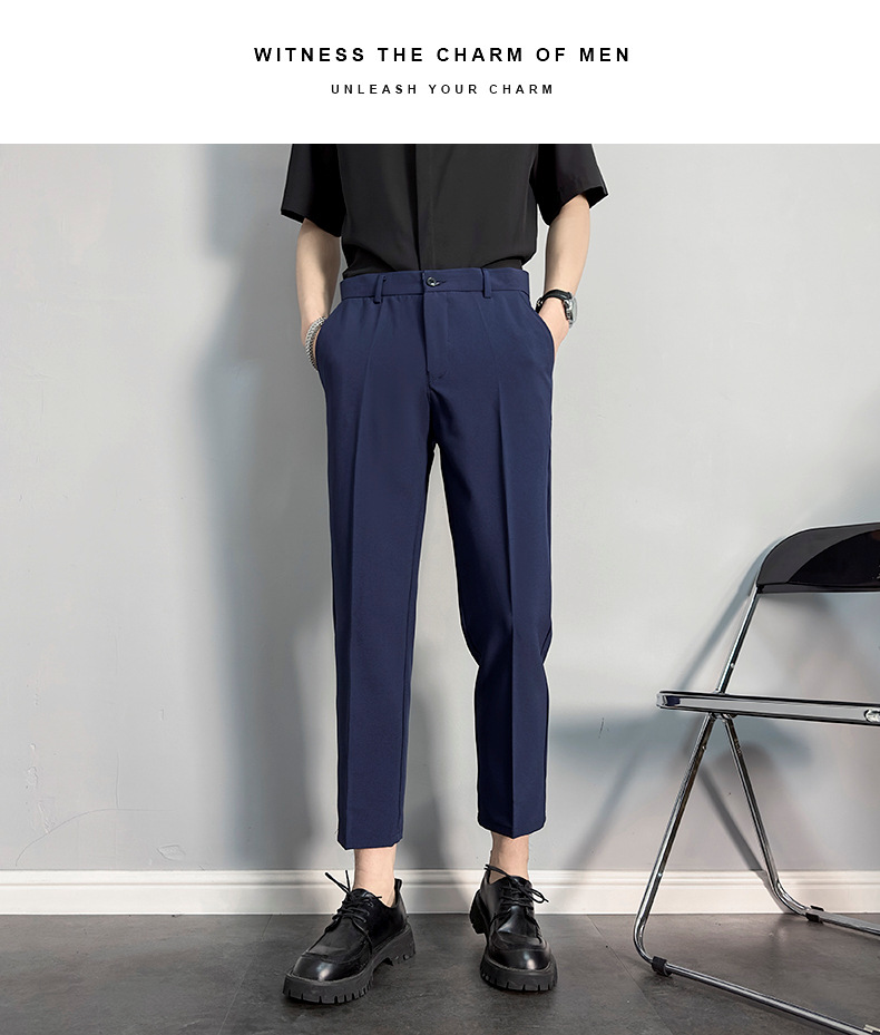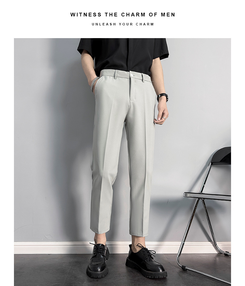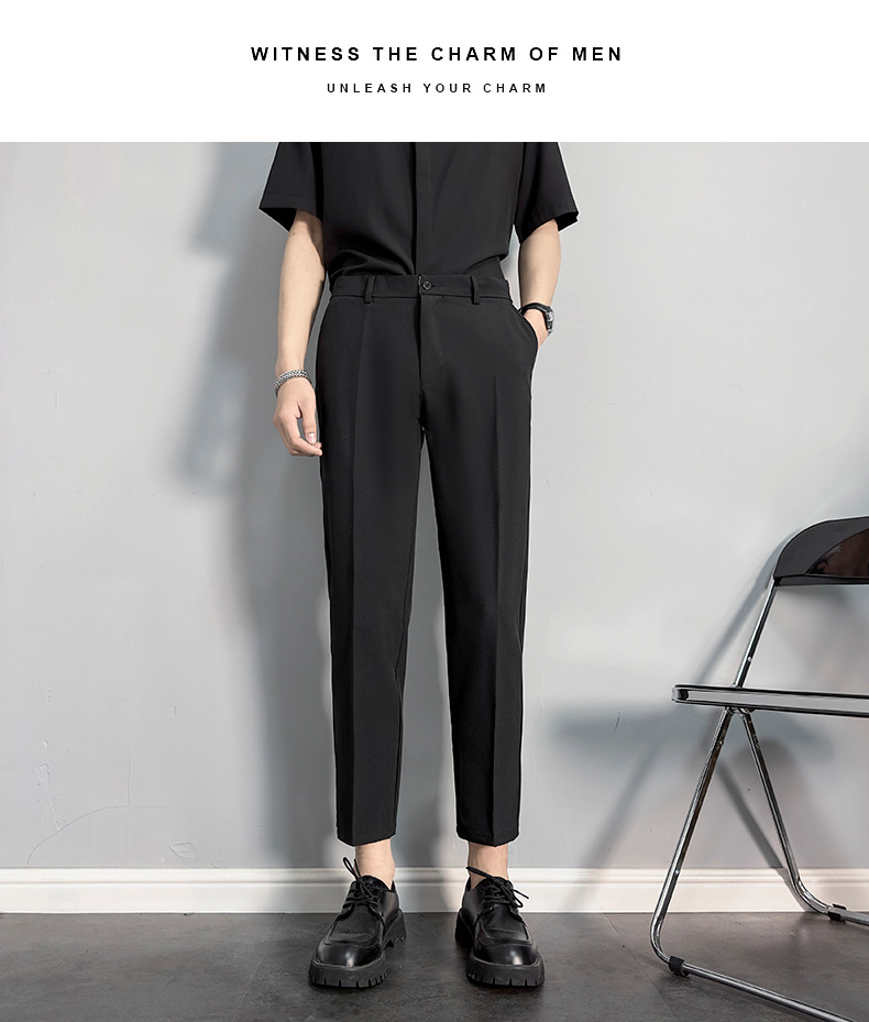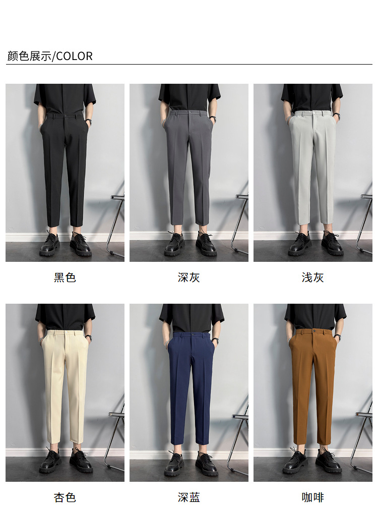 봄과 여름 새로운 도착 9 점 세트 바지 남자 기저귀 슬림 핏 작은 다리 캐주얼 남자 스트레이트 비 다림질 세트 바지