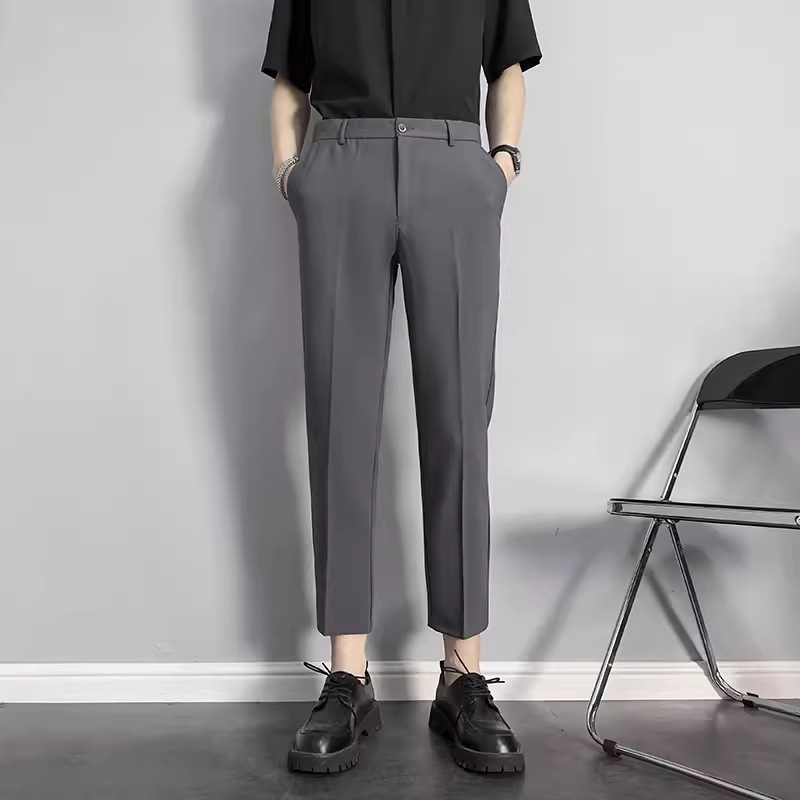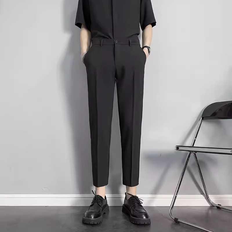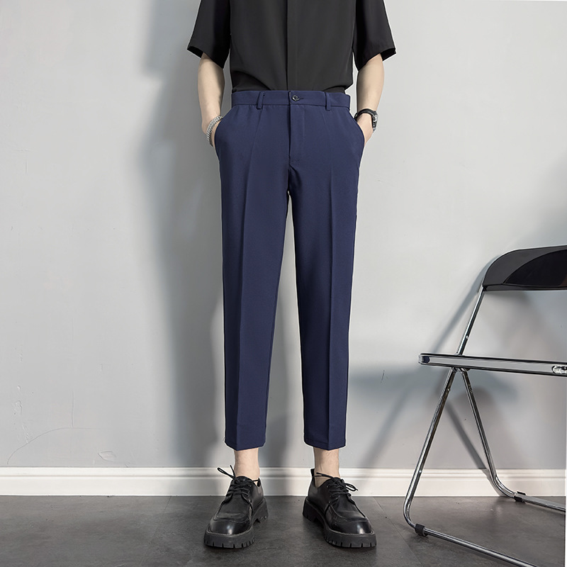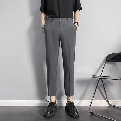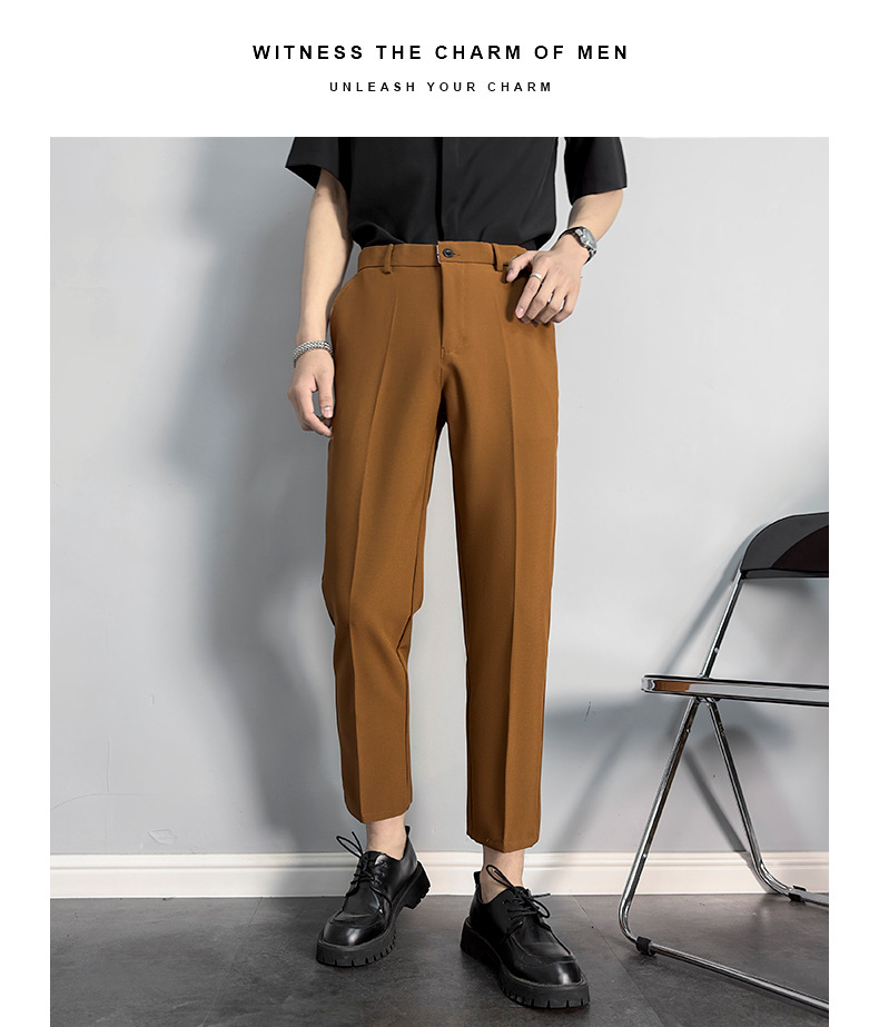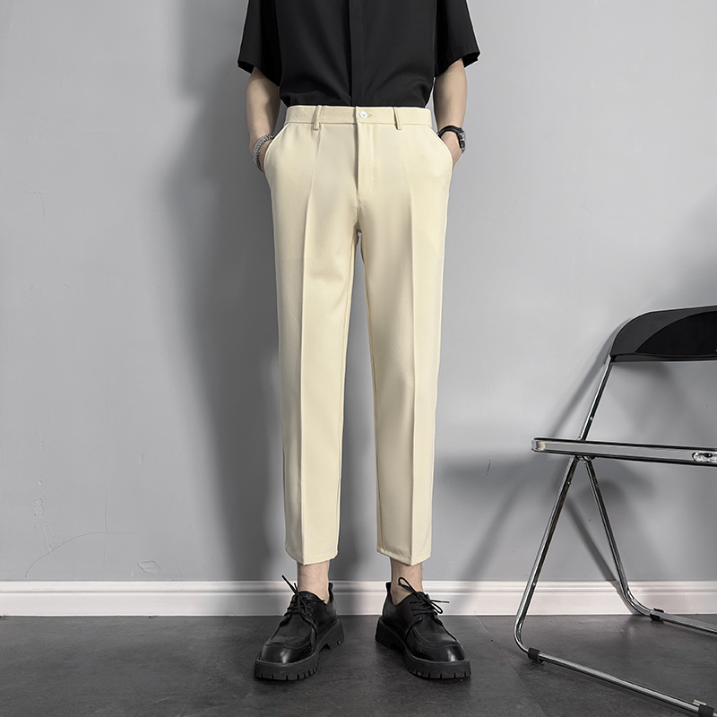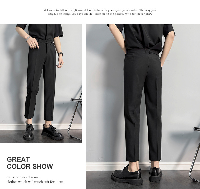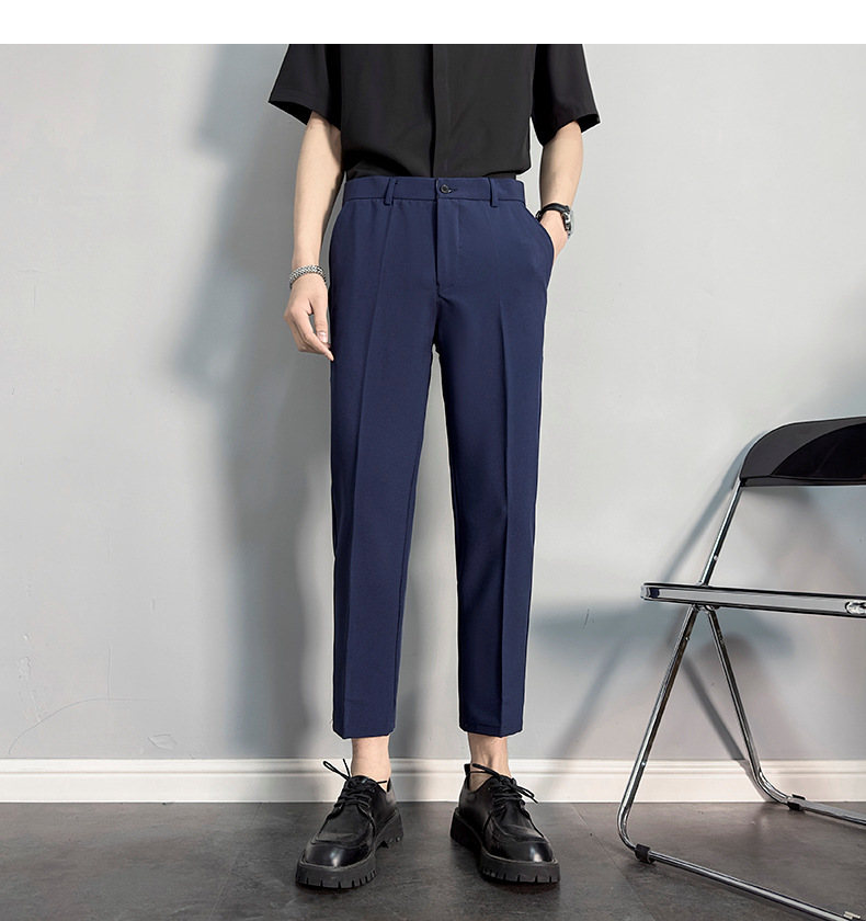 봄과 여름 새로운 도착 9 점 세트 바지 남자 기저귀 슬림 핏 작은 다리 캐주얼 남자 스트레이트 비 다림질 세트 바지