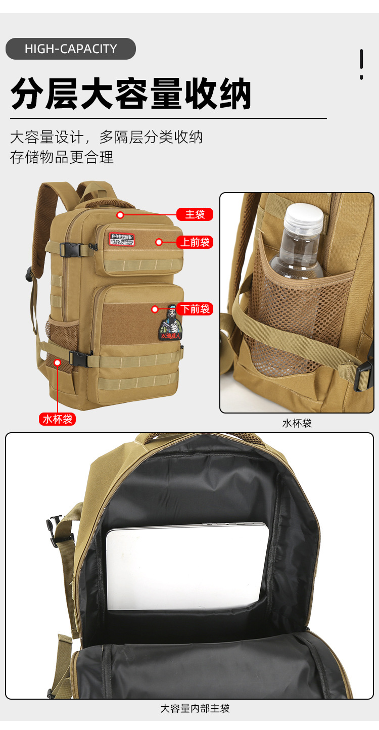야외 전술 배낭 대용량 위장 배낭 레저 캠핑 사이클링 하이킹 가방 등산 가방 훈련 가방
