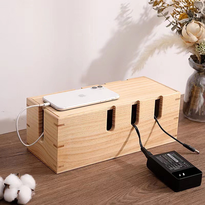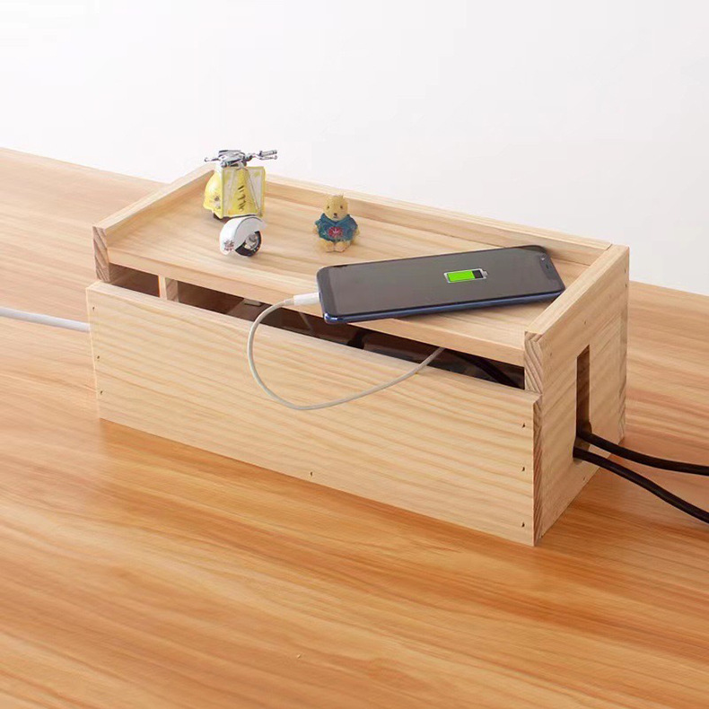데스크탑 전원 코드 소켓 보관 상자 나무 와이어 관리자 정리 상자 데이터 케이블 차단기 허브 상자스토어 가기
