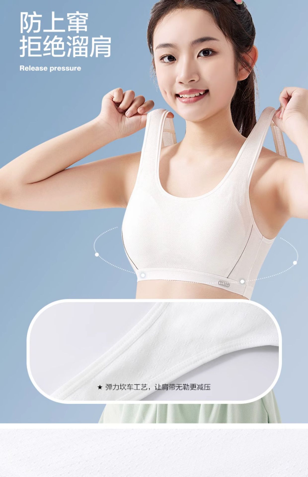속옷 학생 중학생 여고생 소녀 브래지어 발달 기간 스포츠 충격 방지 소녀 고정 컵 얇은 조끼스토어 가기