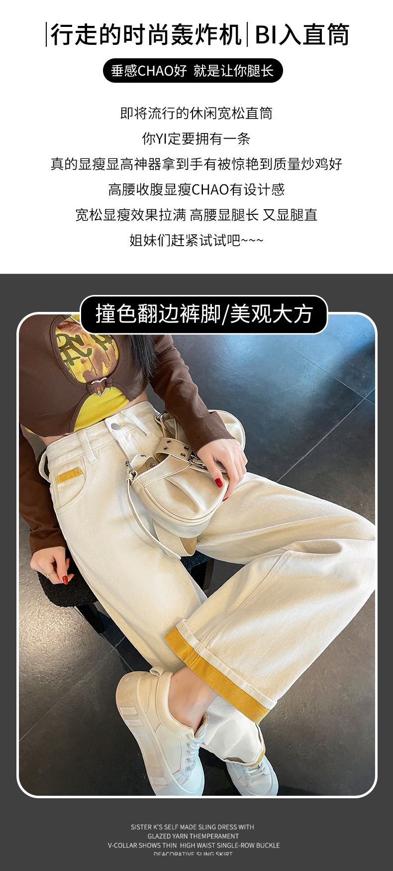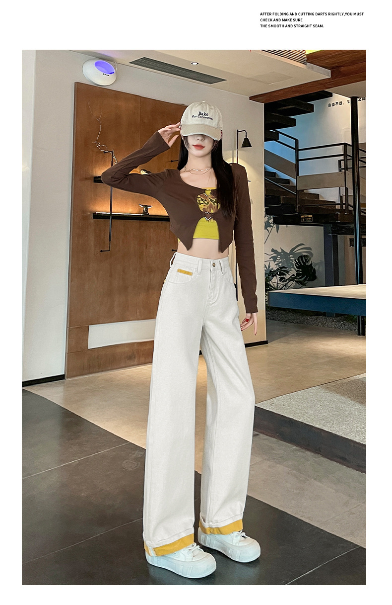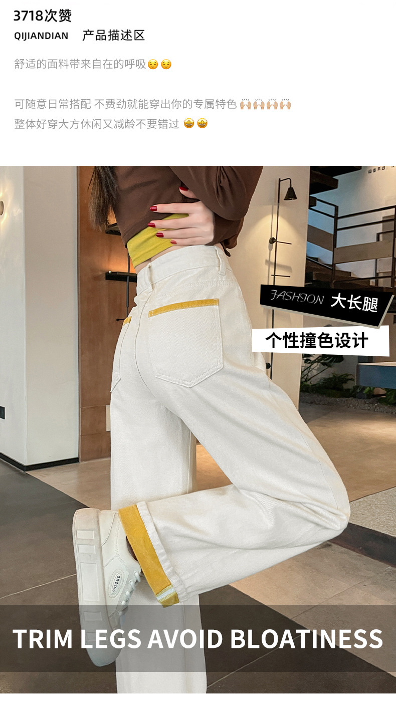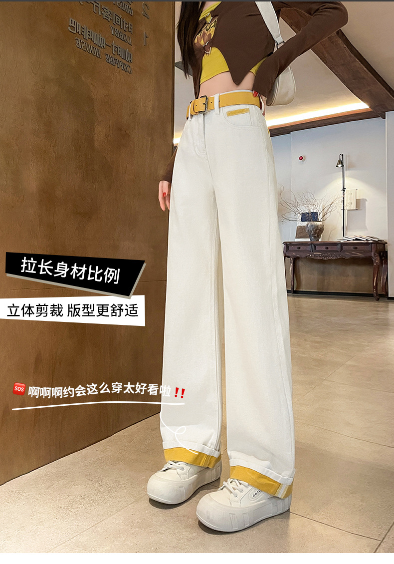 2025년 봄 여름 여성용 화이트 대비 컬러 와이드 레그 청바지 새로운 핫 스타일 하이 웨이스트 루즈 컬링 스트레이트 팬츠스토어 가기