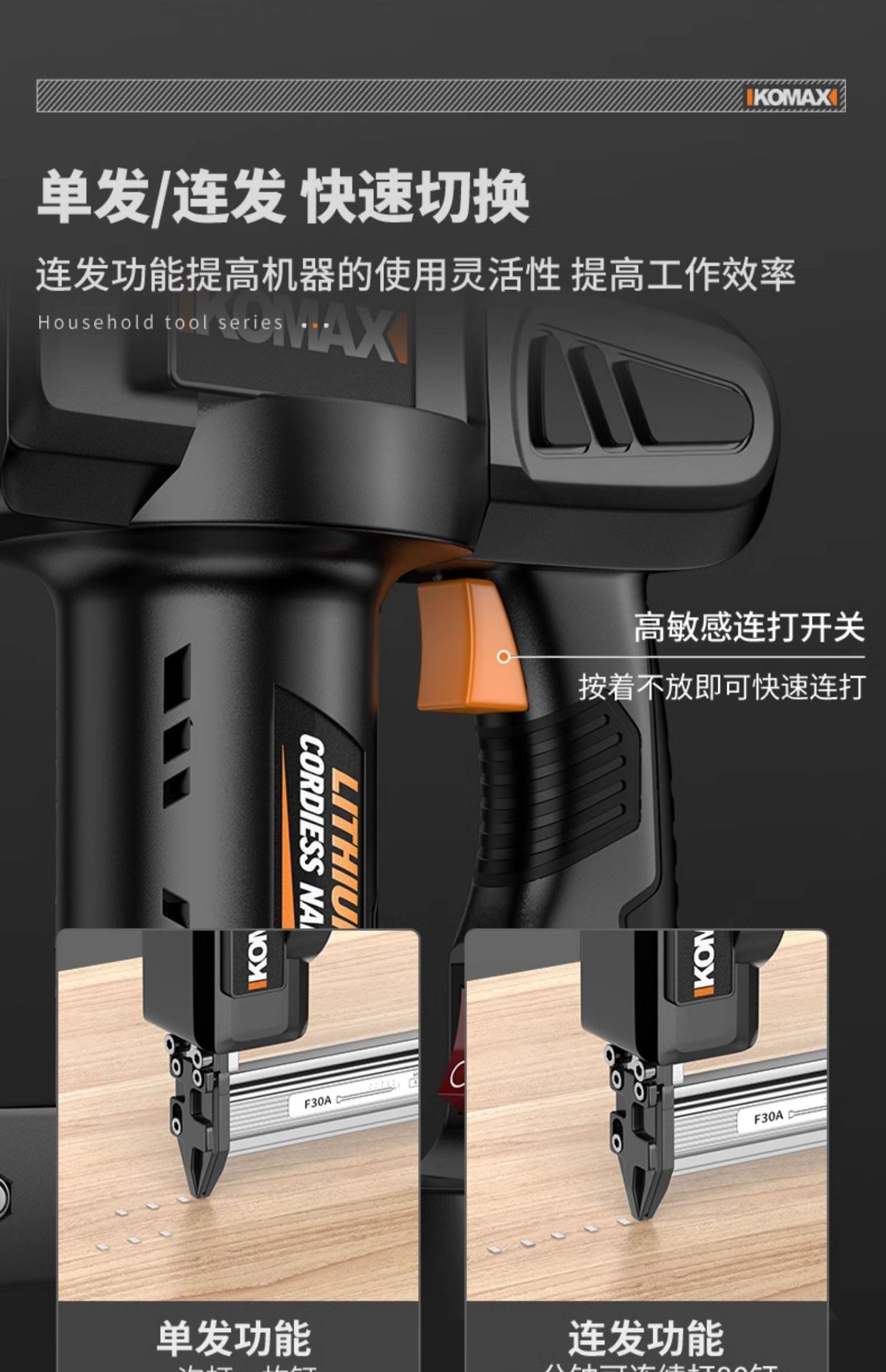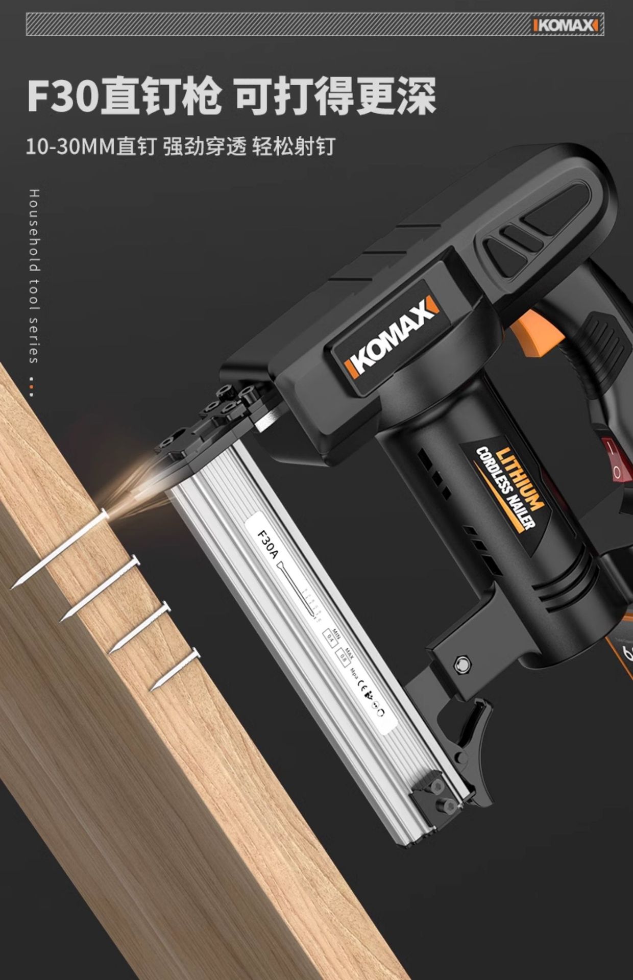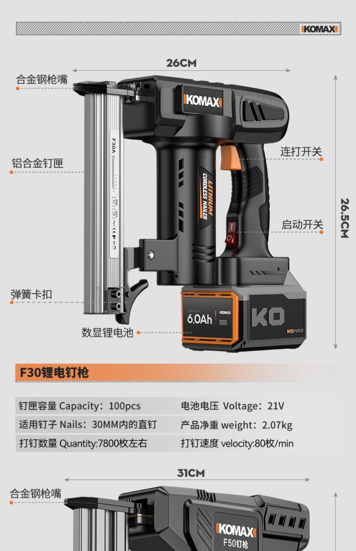 • F30 리튬 전동 네일건[6.0Ah] 배터리 1개, 충전 1개 + 직선 못 1000개 무료