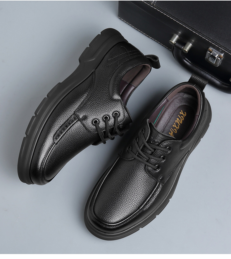 중년 남성 캐주얼 가죽 신발 2025 봄 새 가죽 통기성 레이스 업 남성 신발 비즈니스 올 매치 플랫폼 신발스토어 가기