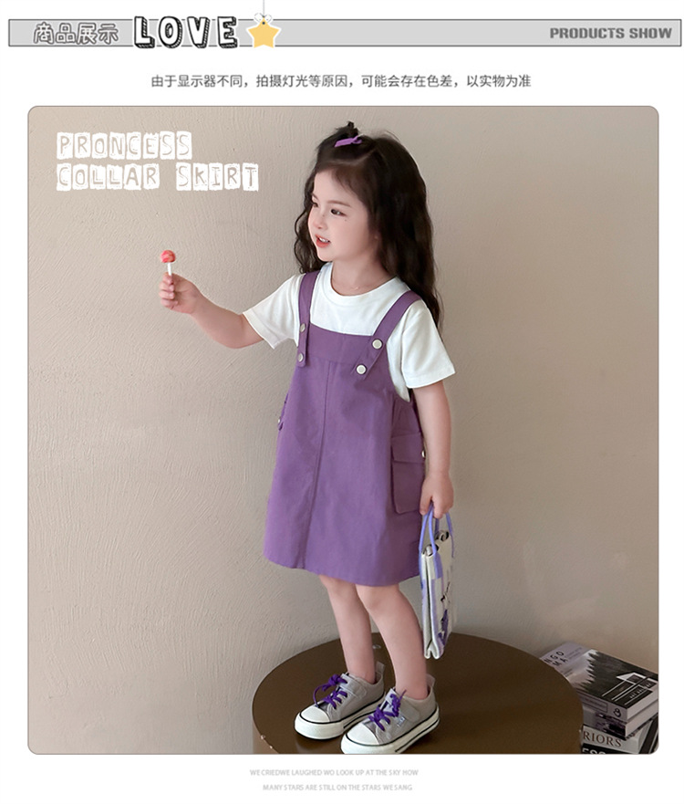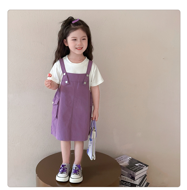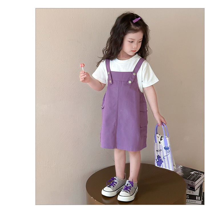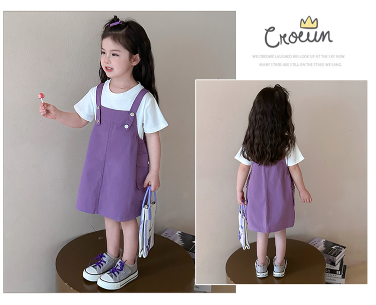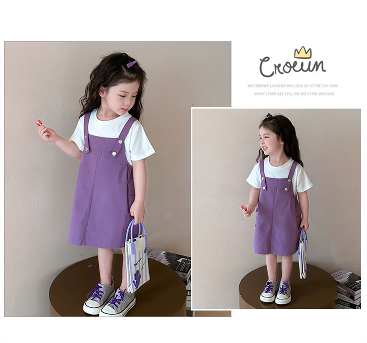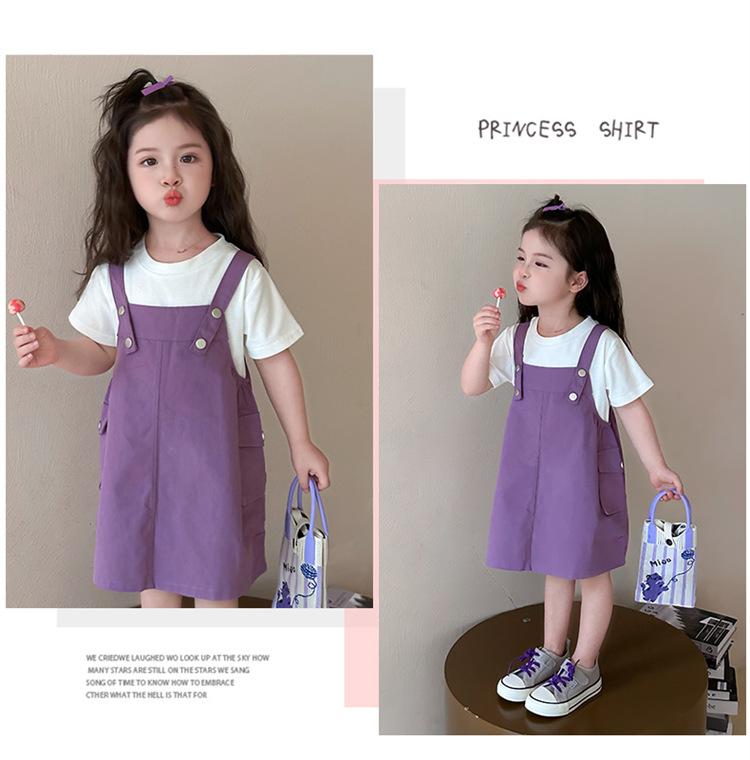 소녀의 보라색 스트랜드 스커트 투피스 세트 2025 여름 새로운 패션 소녀의 세련된 세트 어린이 여름 원피스스토어 가기