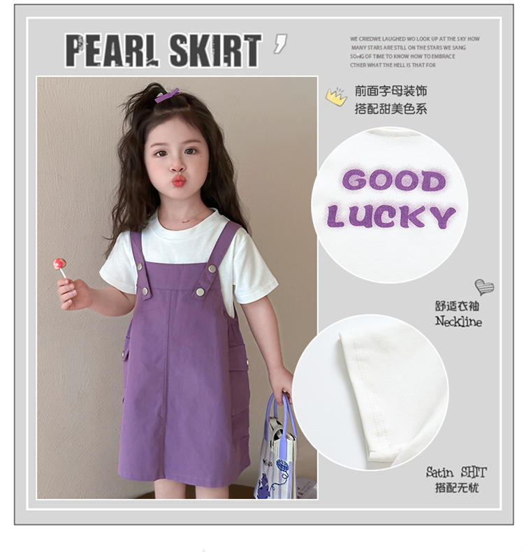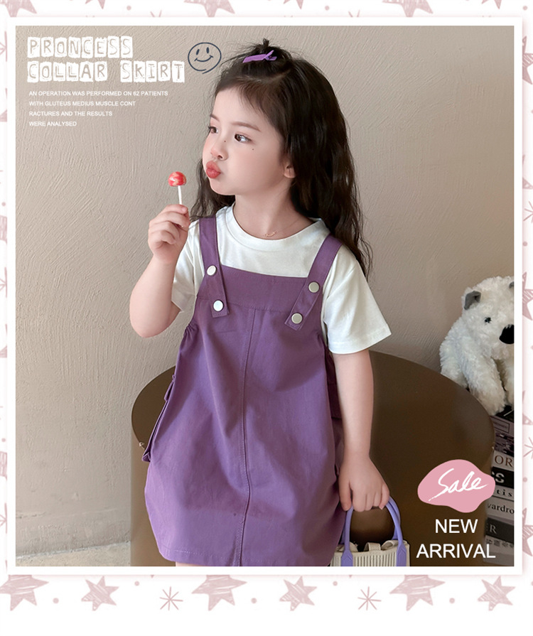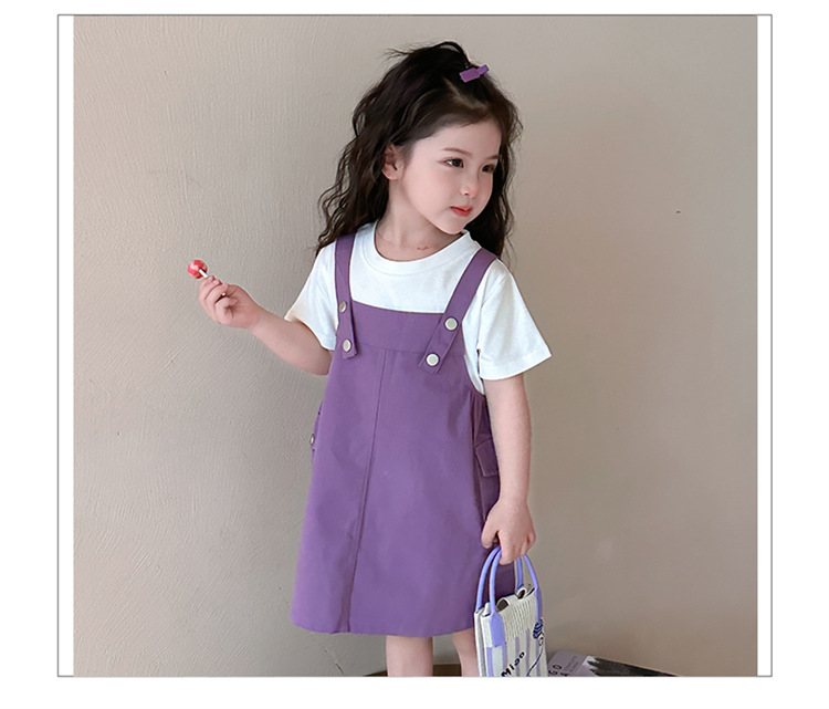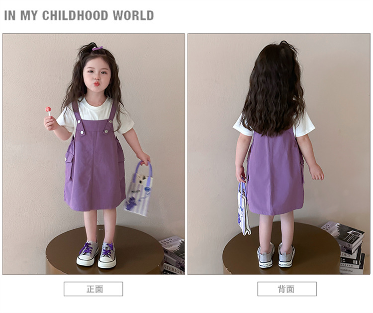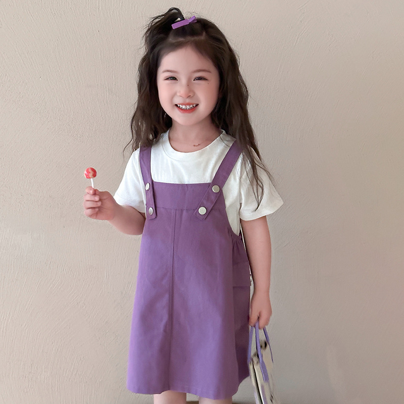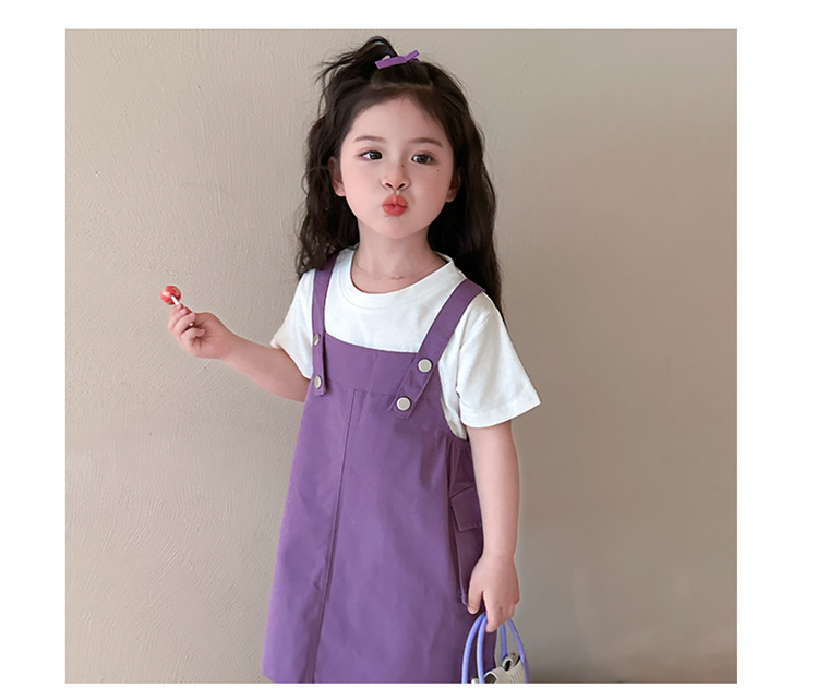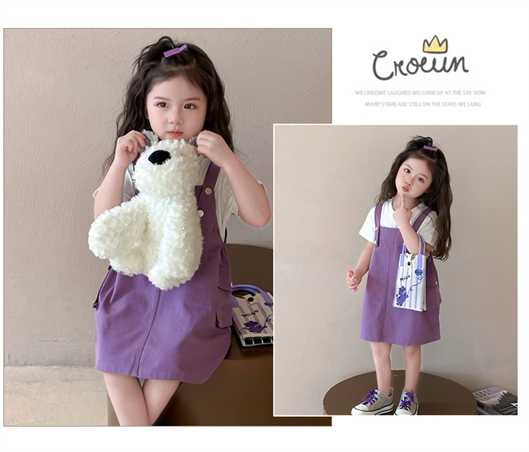 소녀의 보라색 스트랜드 스커트 투피스 세트 2025 여름 새로운 패션 소녀의 세련된 세트 어린이 여름 원피스스토어 가기