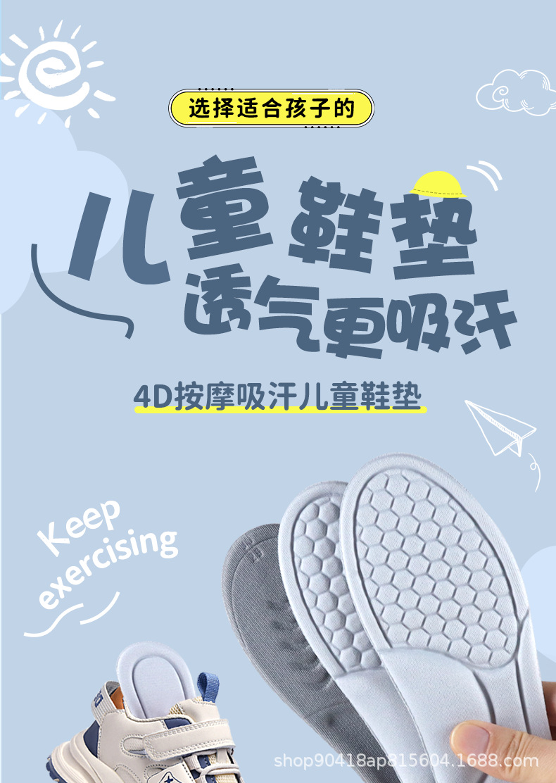 어린이 스포츠 깔창, 탈취제, 땀 흡수성, 통기성, 편안함, 고탄성 쿠셔닝 깔창, 장시간 서 있어도 피곤하지 않음, 청소년스토어 가기