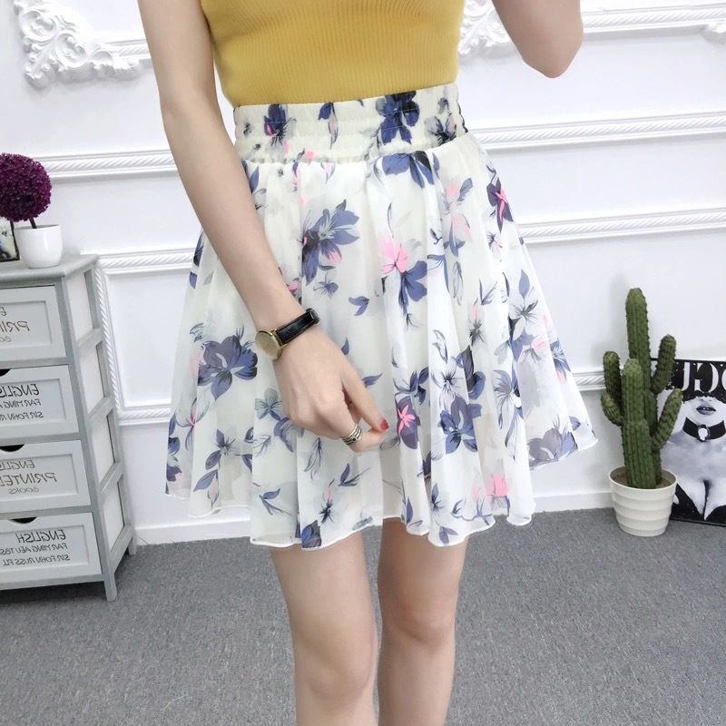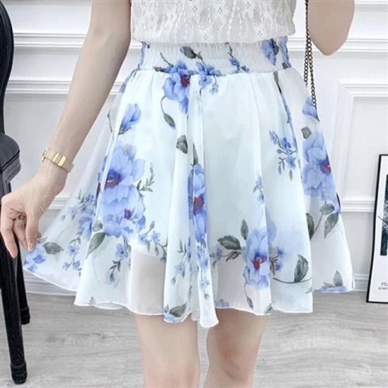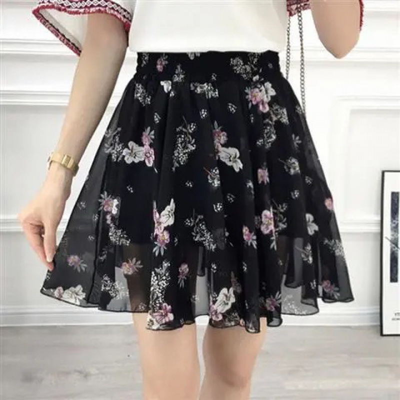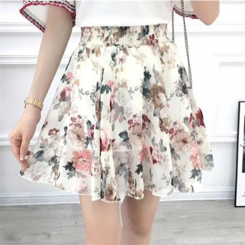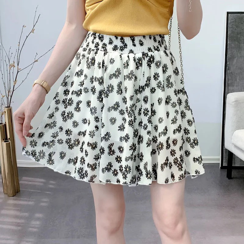 패션 인쇄 주름 쉬폰 짧은 치마 세련된 허리 스커트 여름 어린이를위한 A 라인 스커트 학생용 한국 스타일스토어 가기