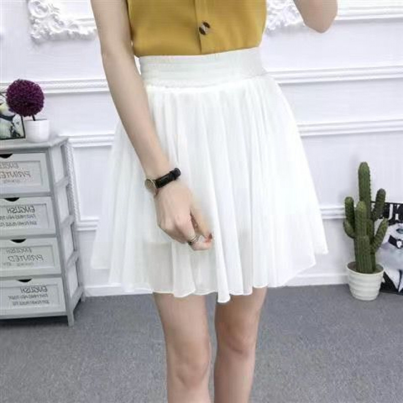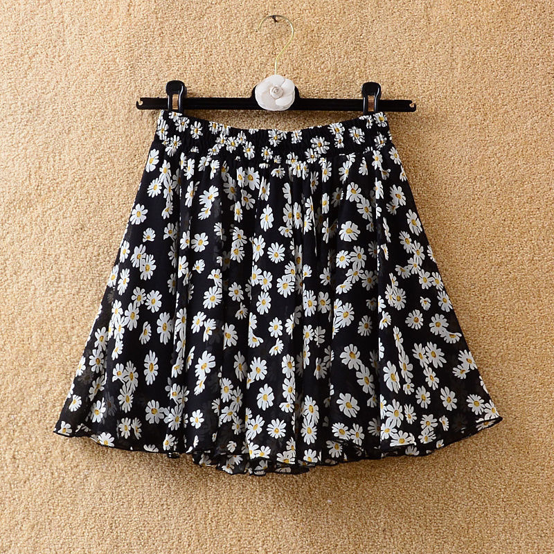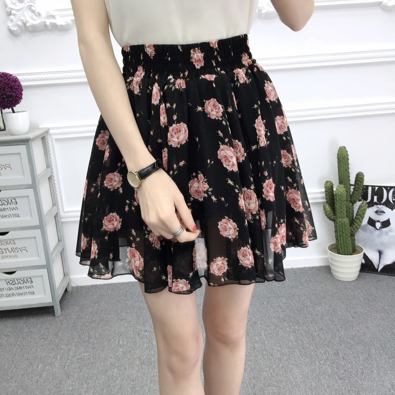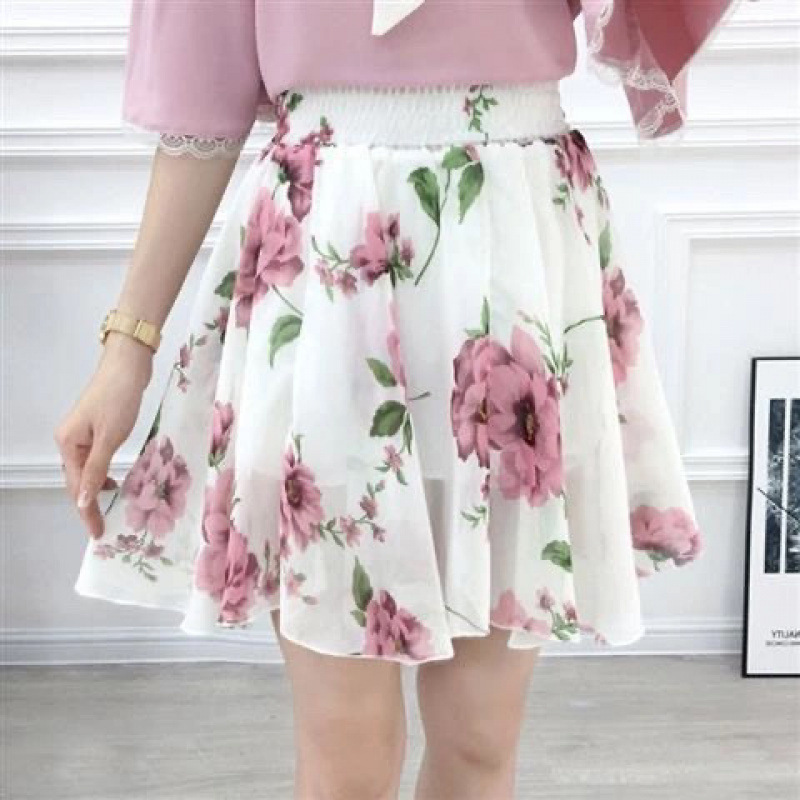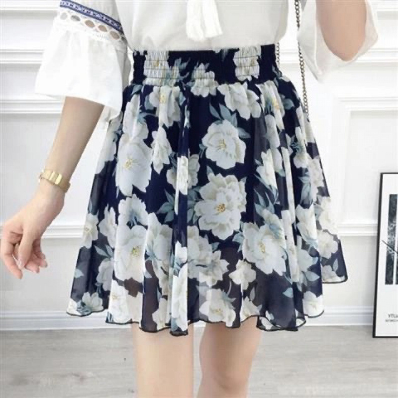패션 인쇄 주름 쉬폰 짧은 치마 세련된 허리 스커트 여름 어린이를위한 A 라인 스커트 학생용 한국 스타일스토어 가기
