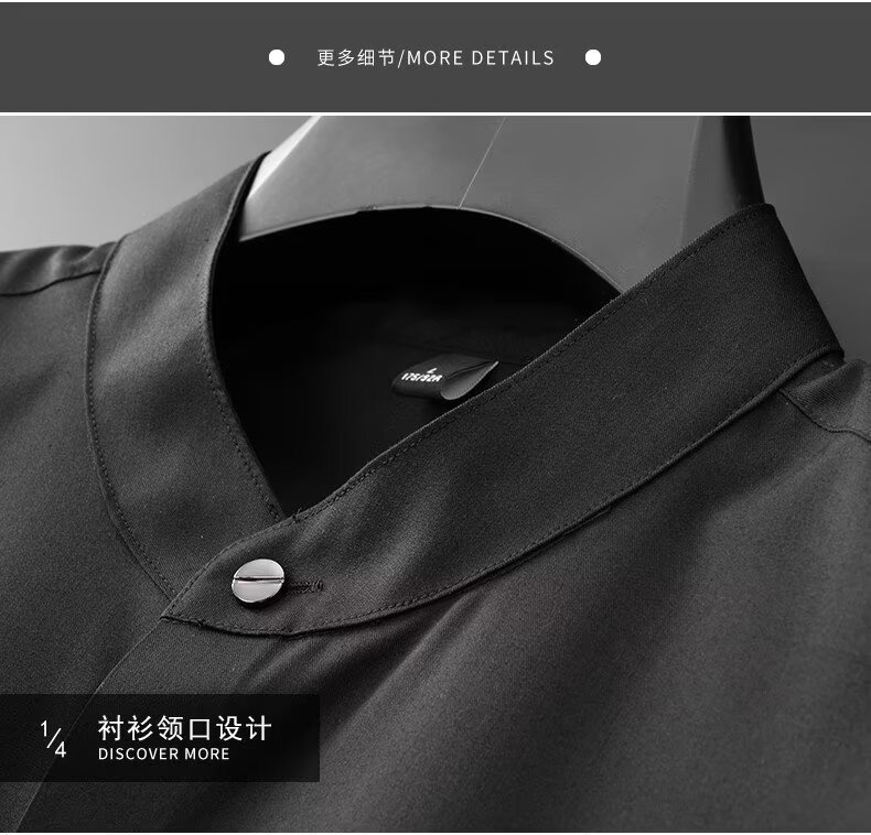 봄, 가을 남성용 실키한 노다림질 스탠드업 칼라 긴팔 셔츠 남성용 슬림 솔리드 컬러 셔츠 캐주얼 비즈니스 정장 셔츠스토어 가기