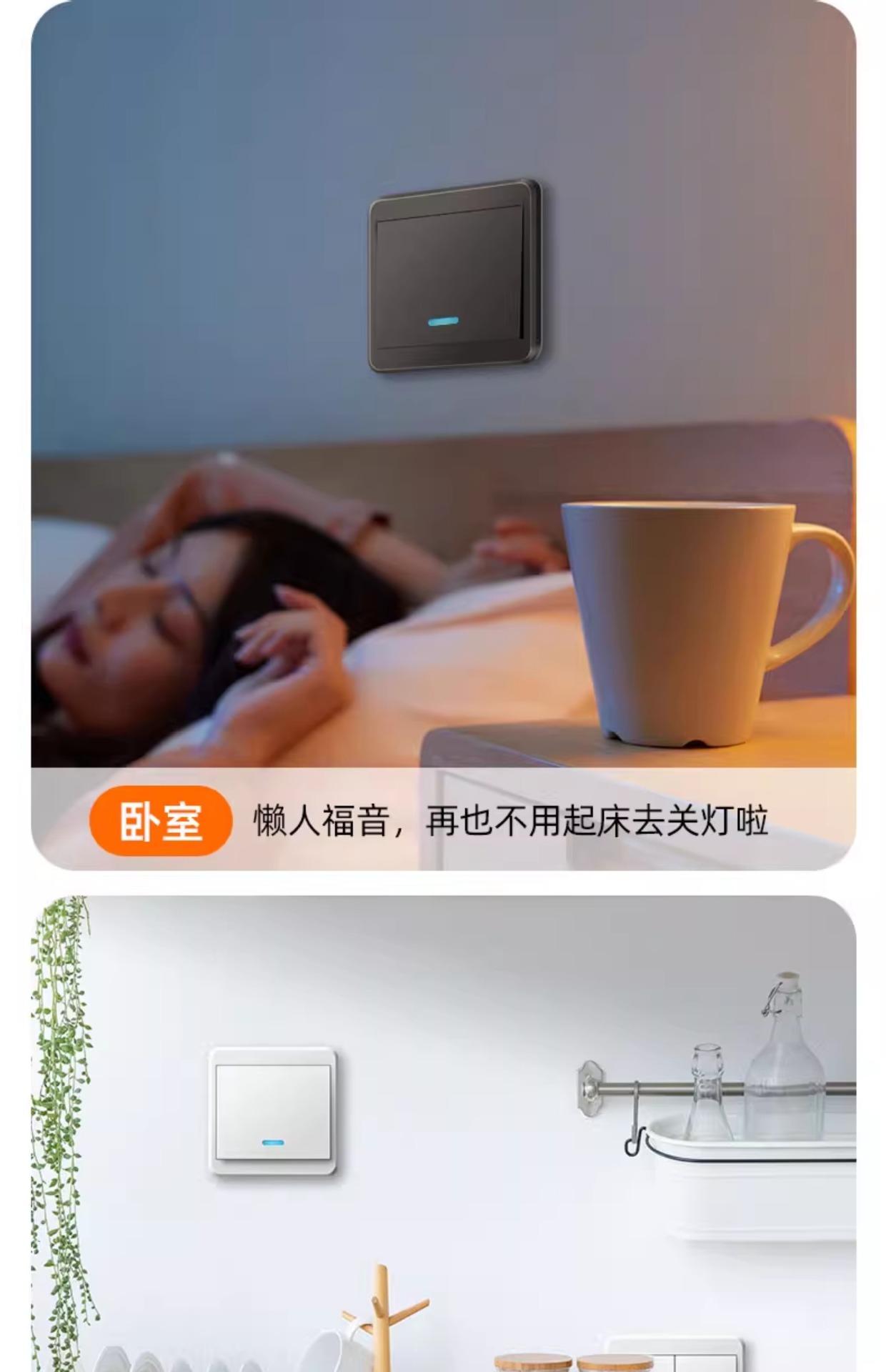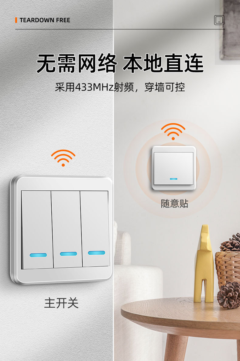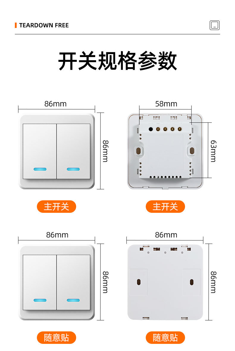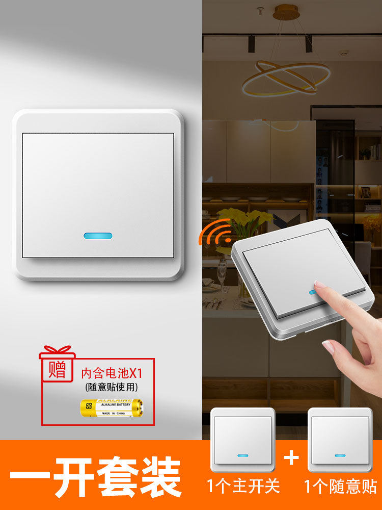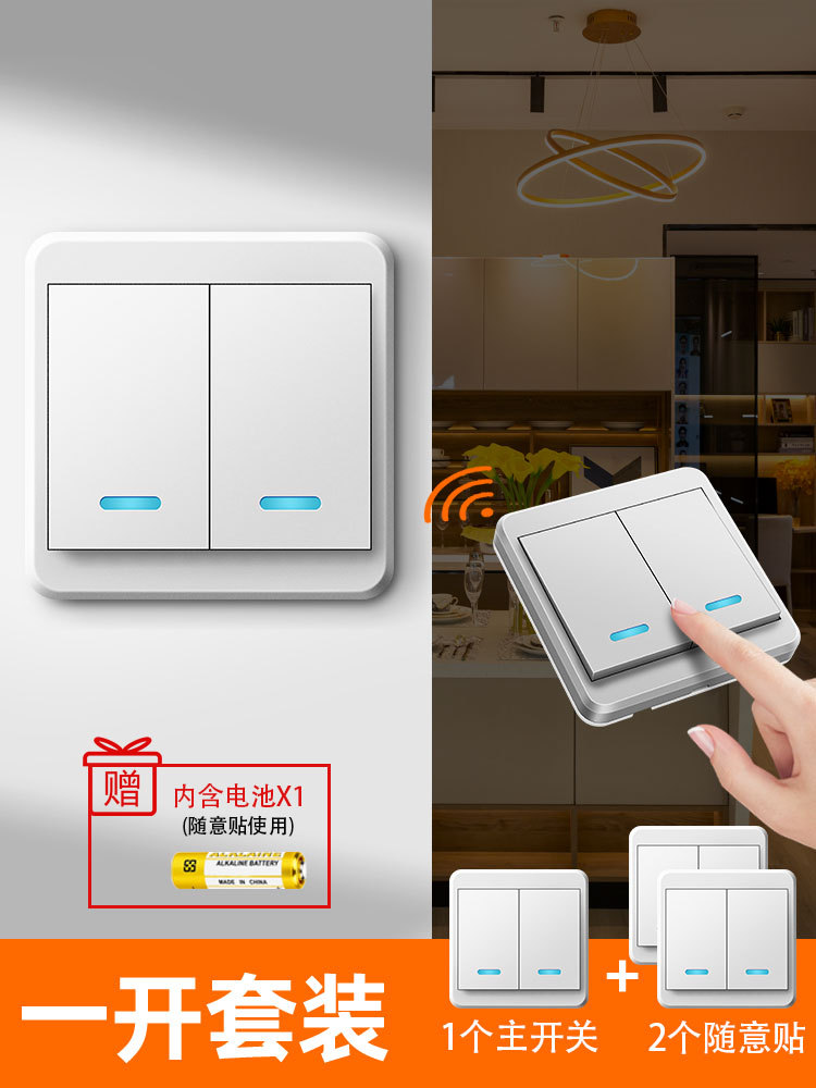 무선 스마트 원격 제어 스위치 패널 배선이 필요 없는 220V 가정용 조명 이중 제어 원격 제어 침대 옆에 붙여넣기스토어 가기