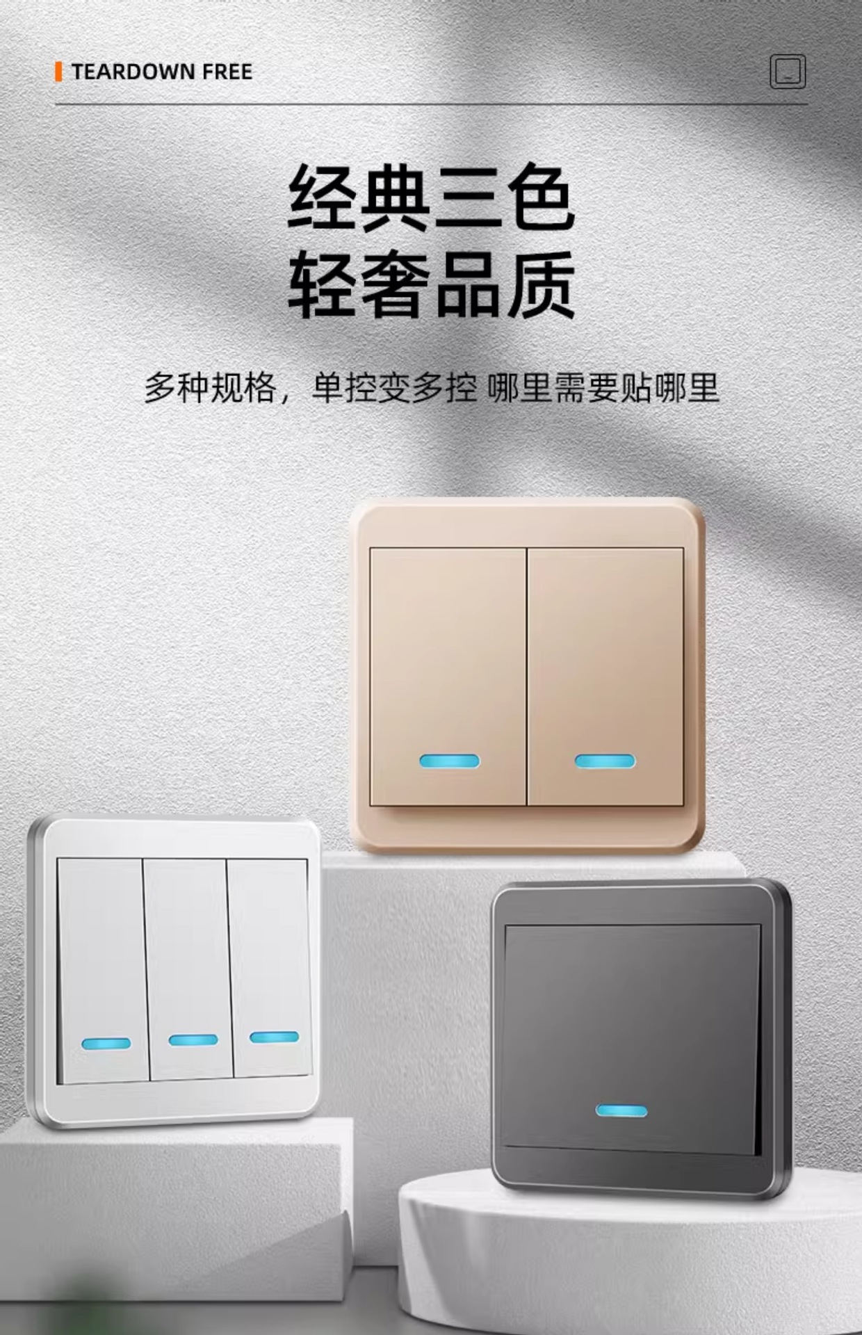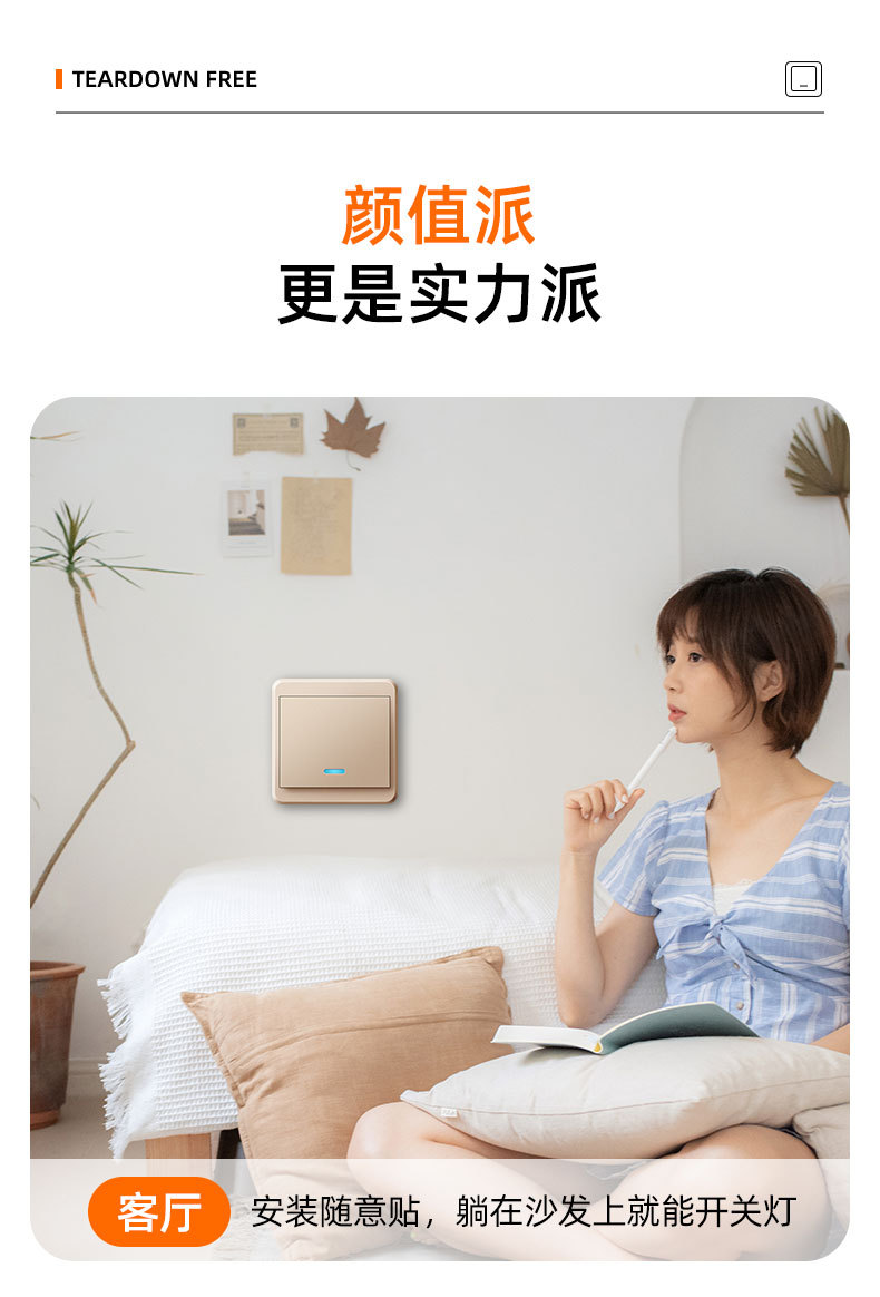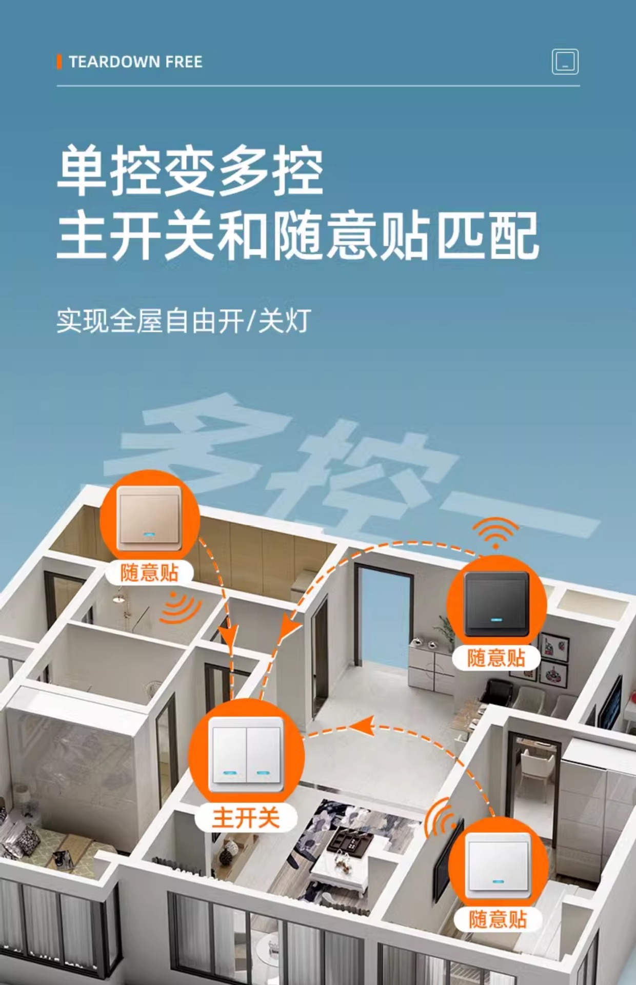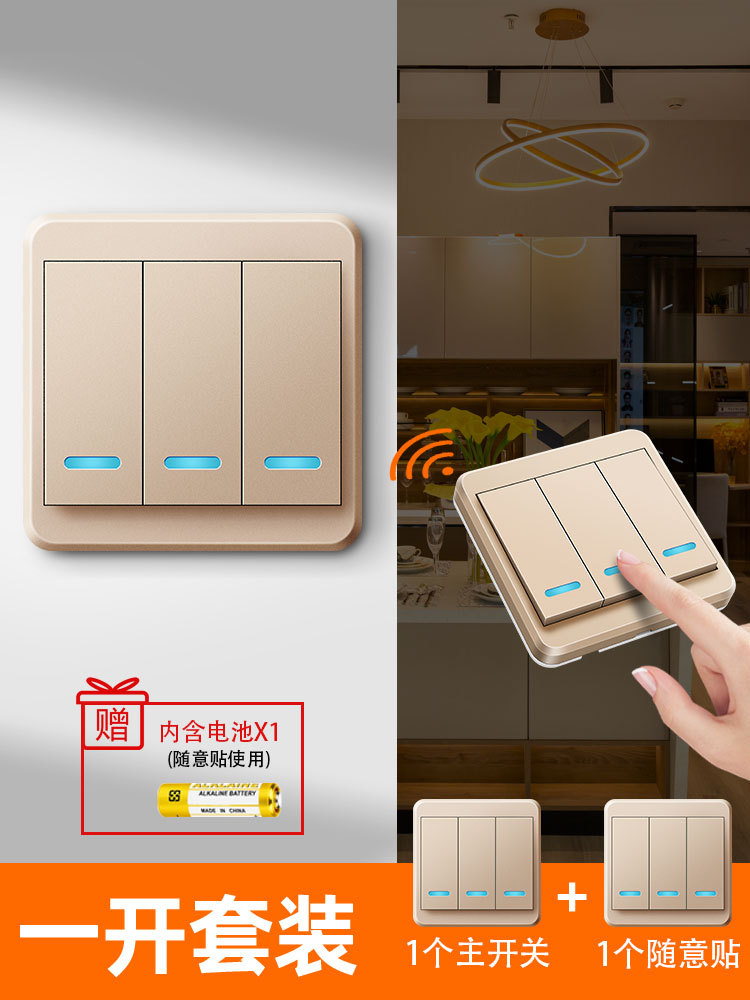무선 스마트 원격 제어 스위치 패널 배선이 필요 없는 220V 가정용 조명 이중 제어 원격 제어 침대 옆에 붙여넣기스토어 가기