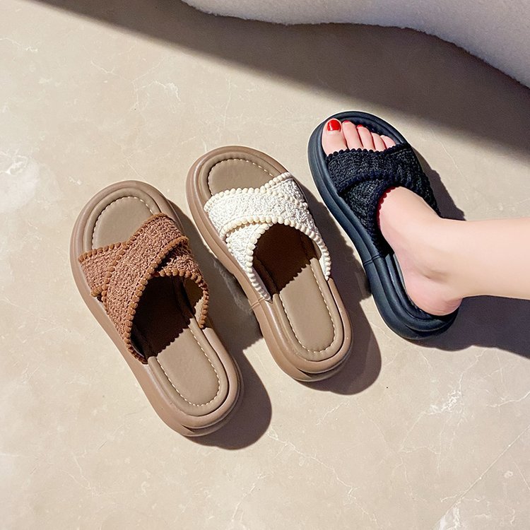 레트로 두꺼운 밑창 일자형 슬리퍼 여성용 2025 여름 신상 외출용 플랫폼 반슬리퍼 스커트와 함께 착용하는 비치 슈즈 여성용스토어 가기