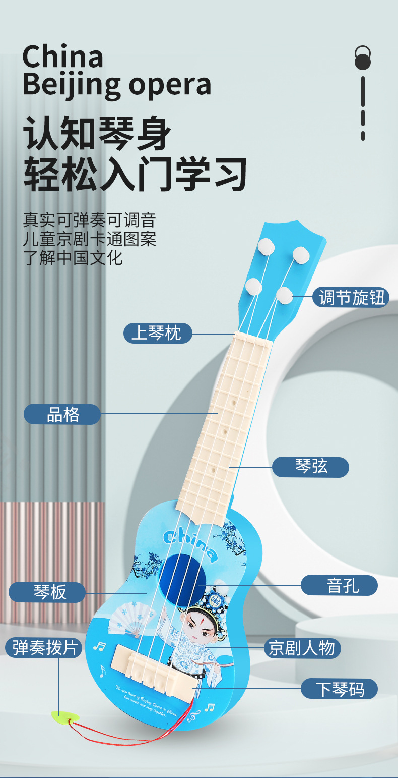 컬러 박스 우쿨렐레 어린이 장난감 시뮬레이션 작은 기타는 초보자를 위한 조기 교육을 연주할 수 있습니다. 어린이 날 선물스토어 가기