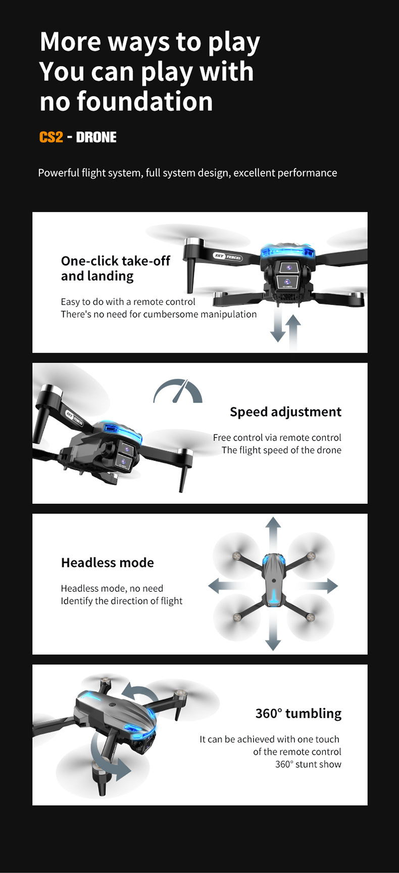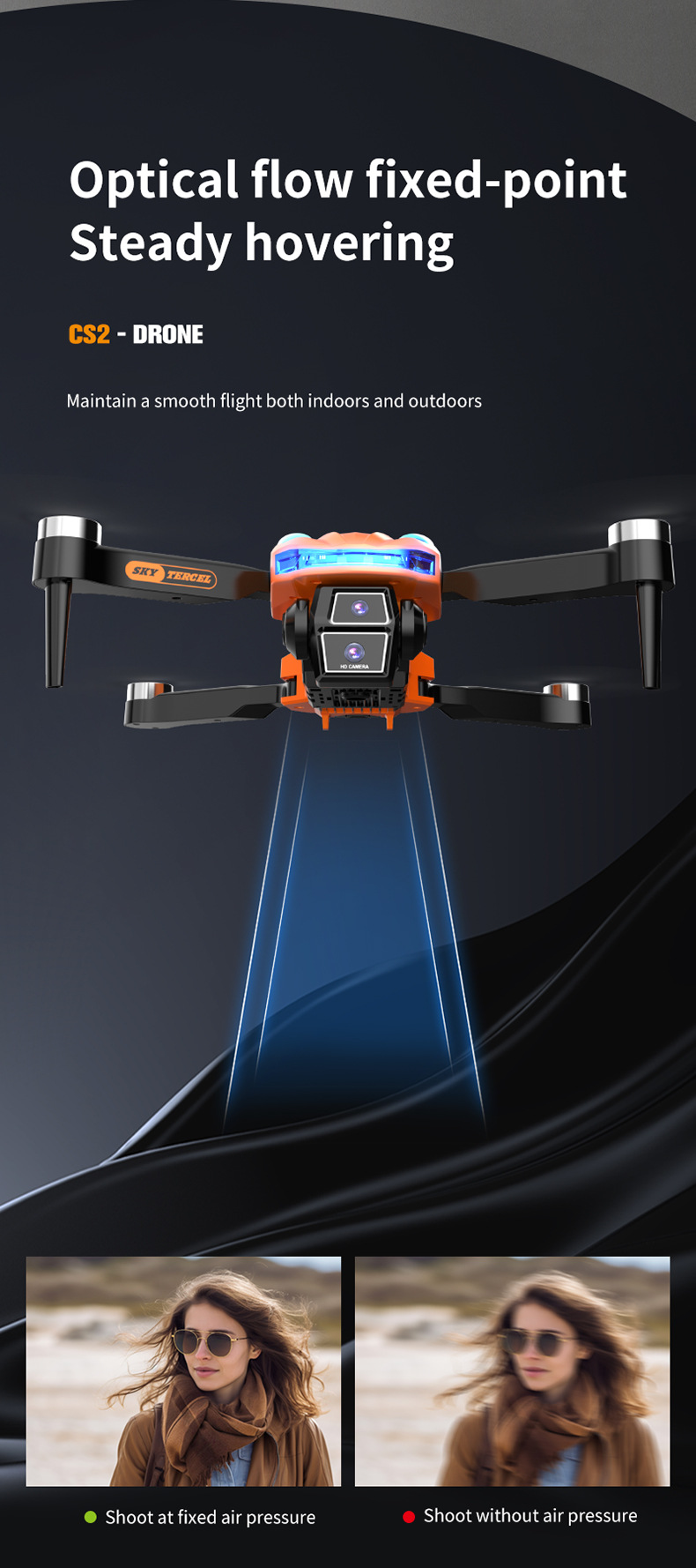 국경 간 CS-2 브러시리스 고화질 항공 사진 광학 흐름 드론 접이식 4 축 항공기 원격 제어 항공기 대외 무역 장난감스토어 가기