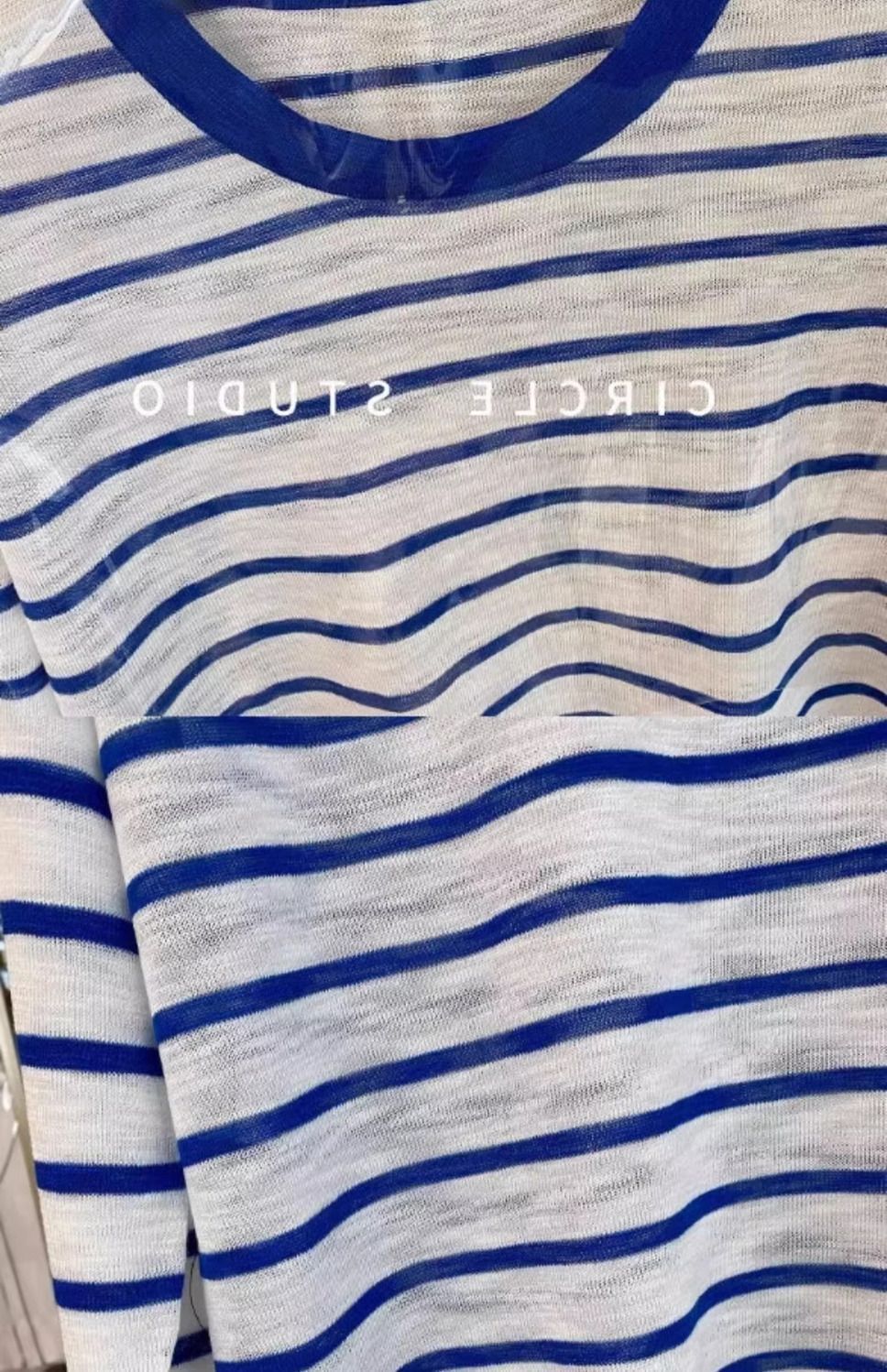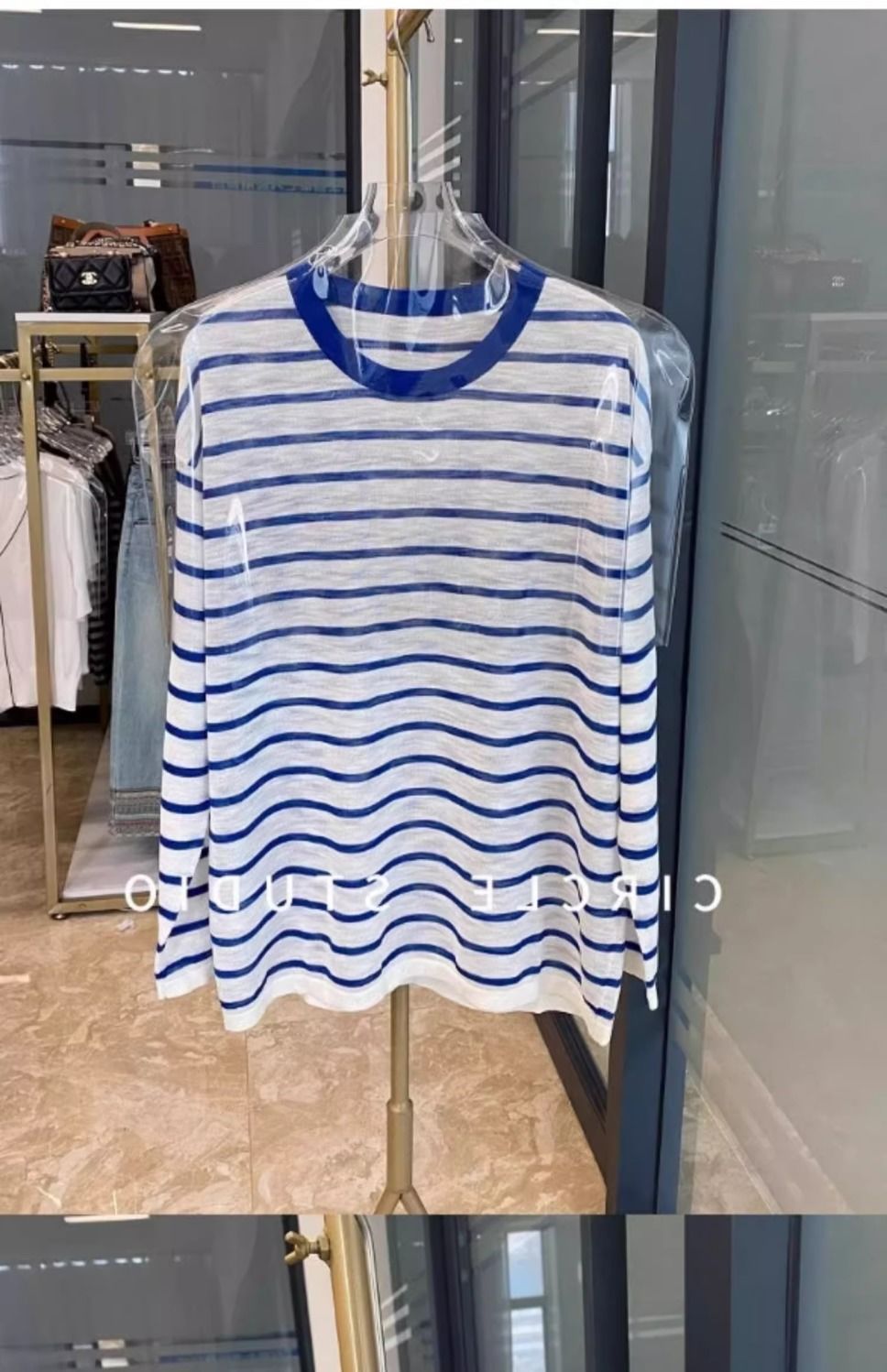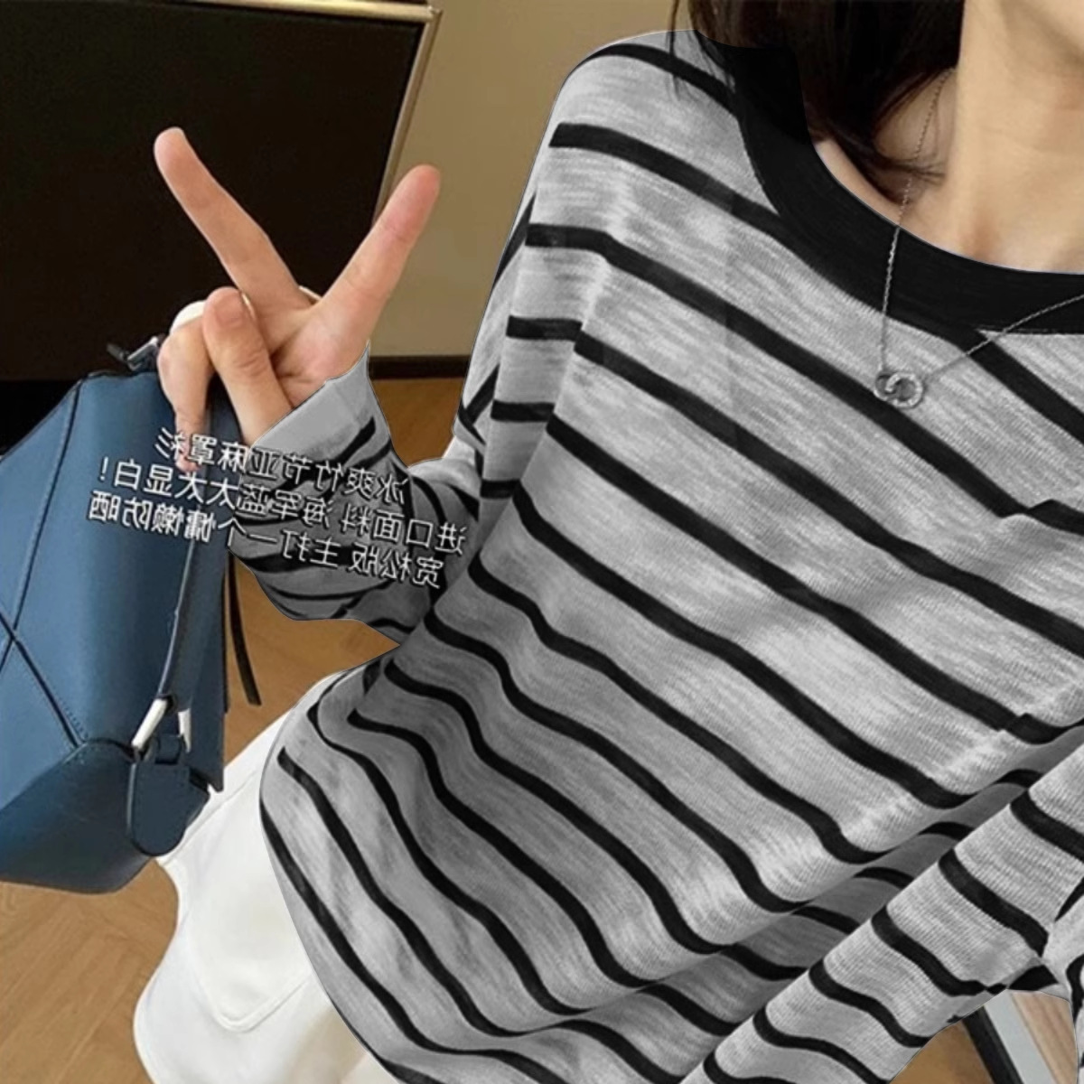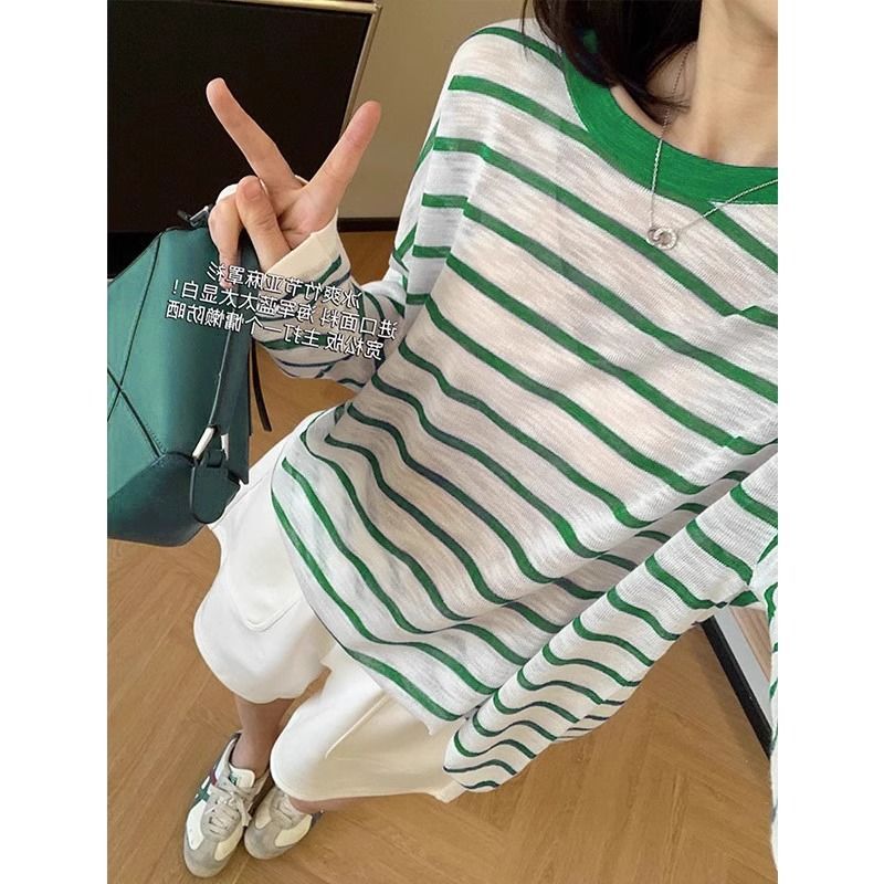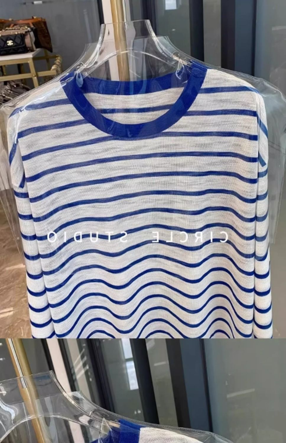 게으른 쿨 아이스 실크 블루 스트라이프 태양 보호 셔츠 여성용 여름 블라우스 얇은 느슨한 캐주얼 긴팔 스웨터 티셔츠스토어 가기