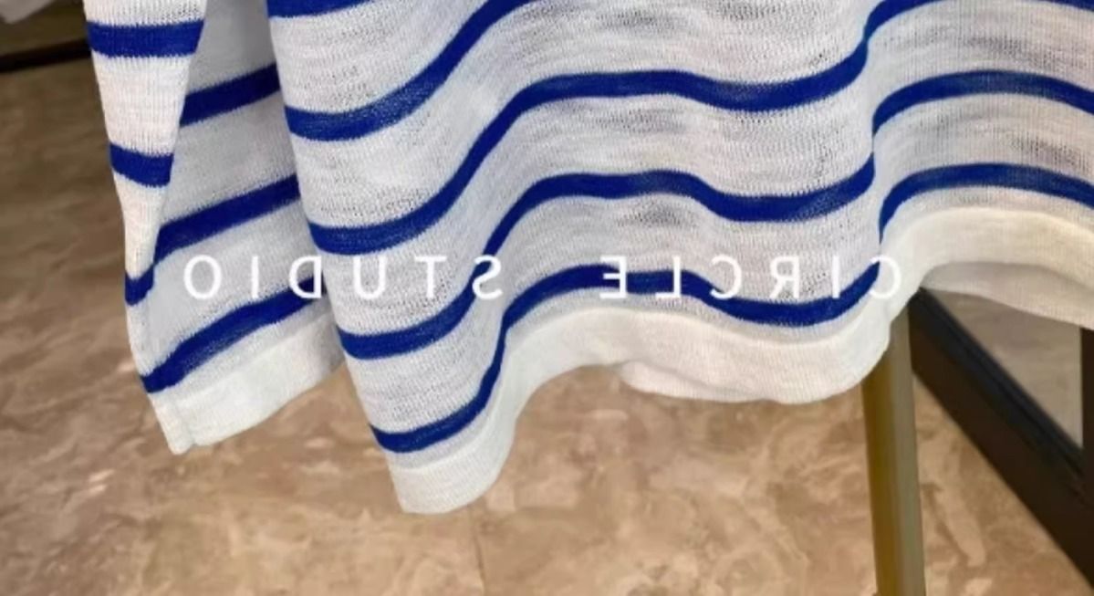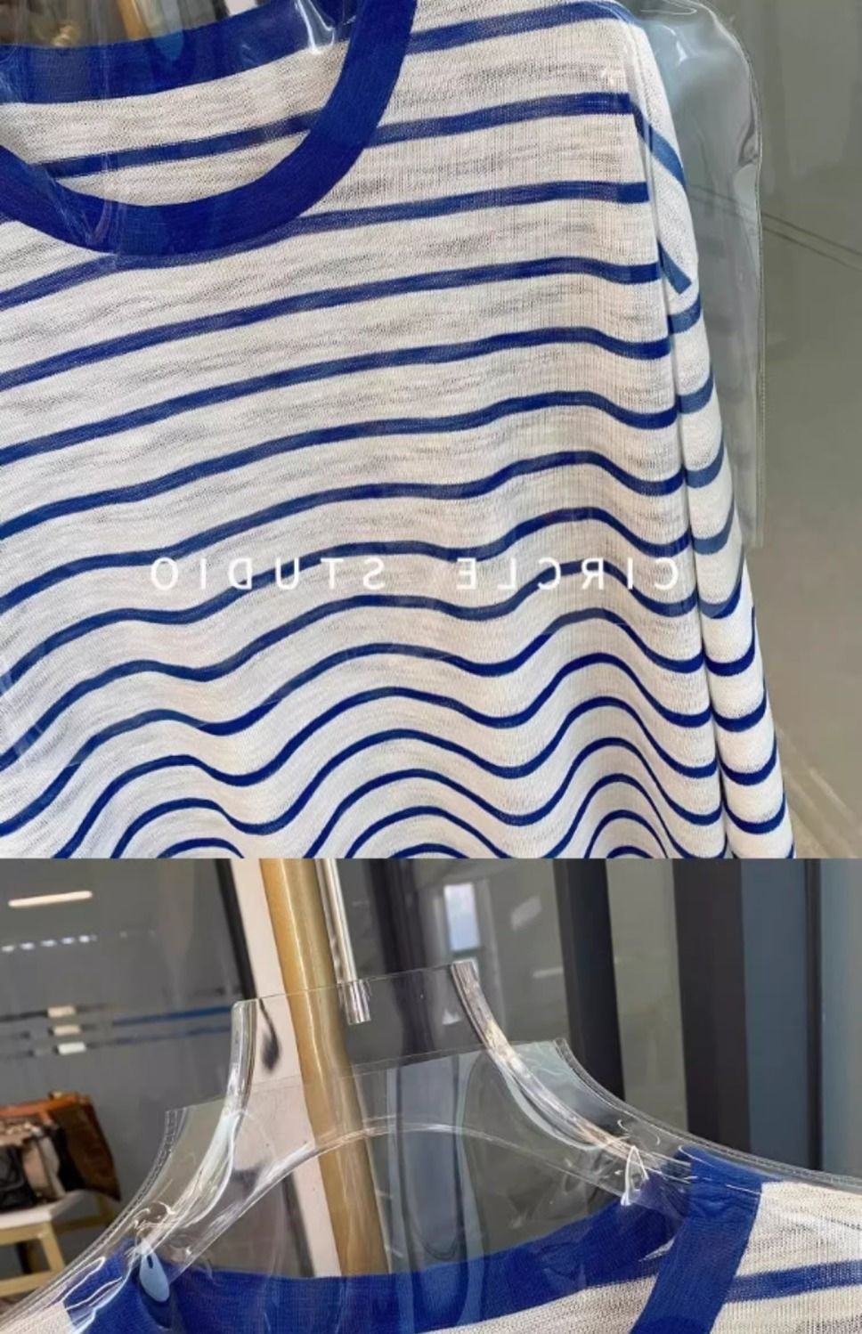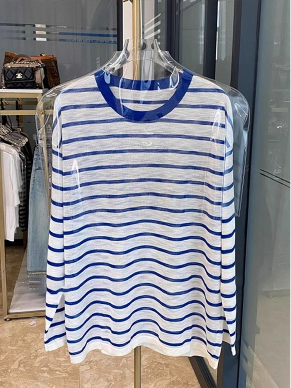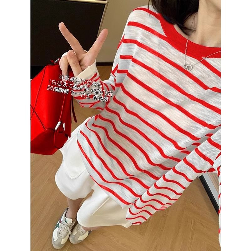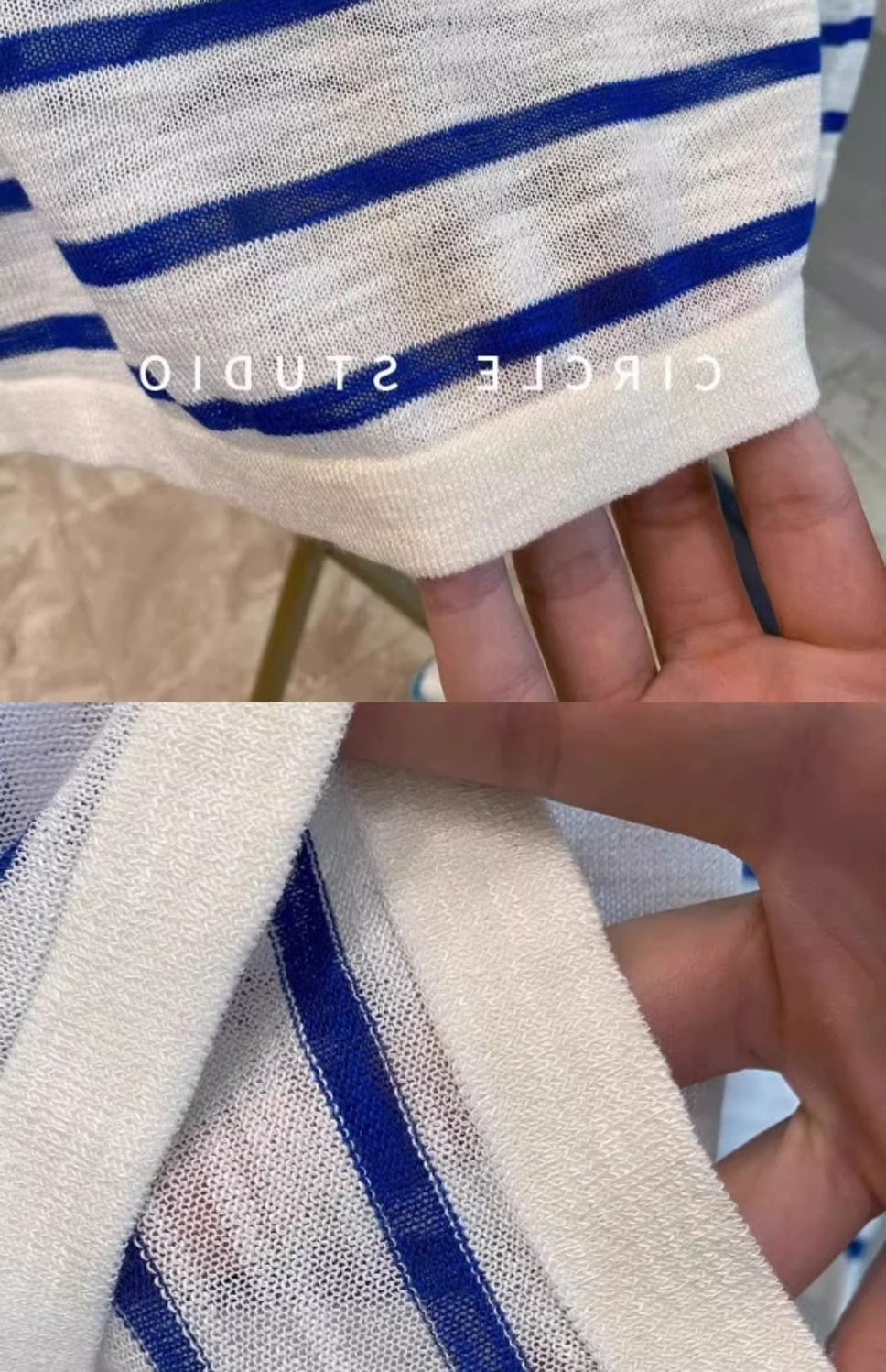 게으른 쿨 아이스 실크 블루 스트라이프 태양 보호 셔츠 여성용 여름 블라우스 얇은 느슨한 캐주얼 긴팔 스웨터 티셔츠스토어 가기