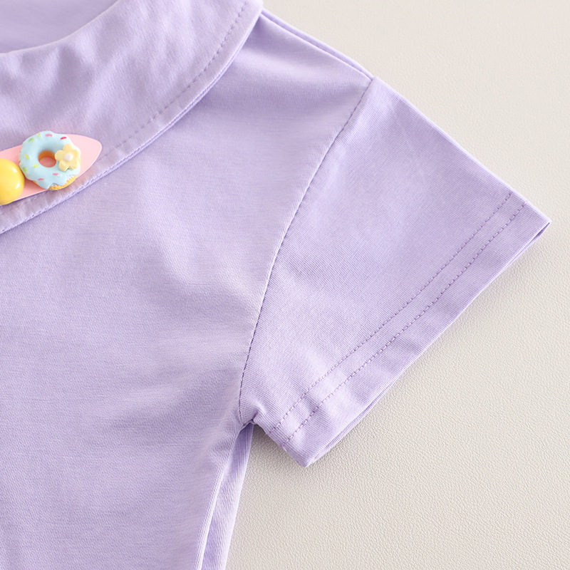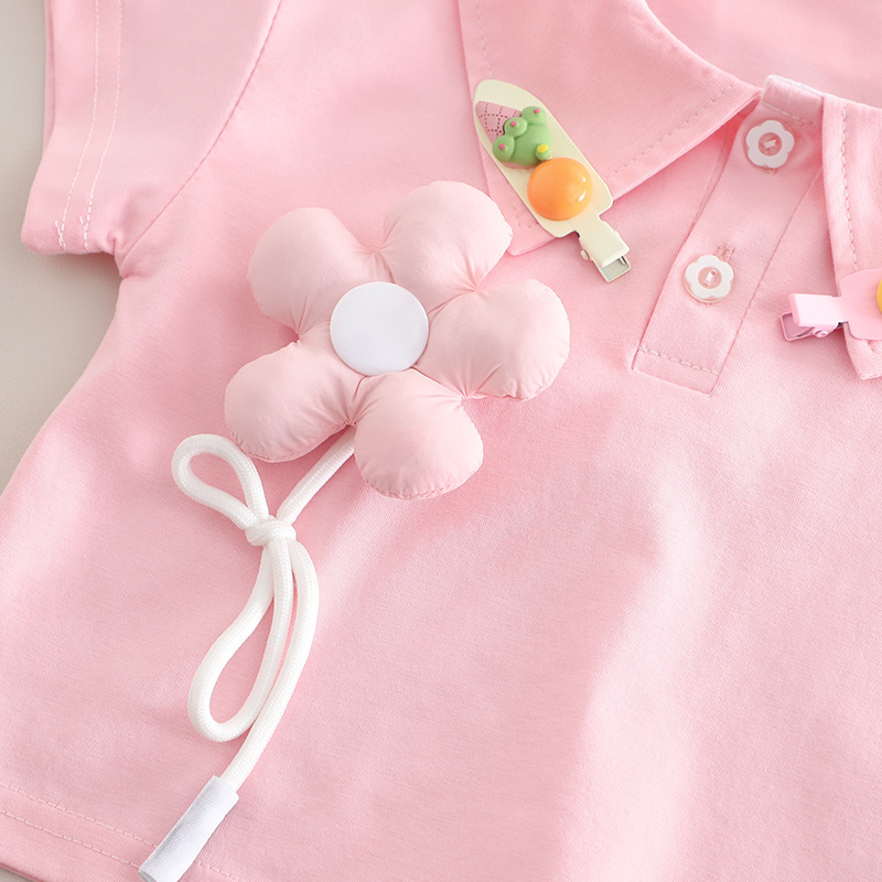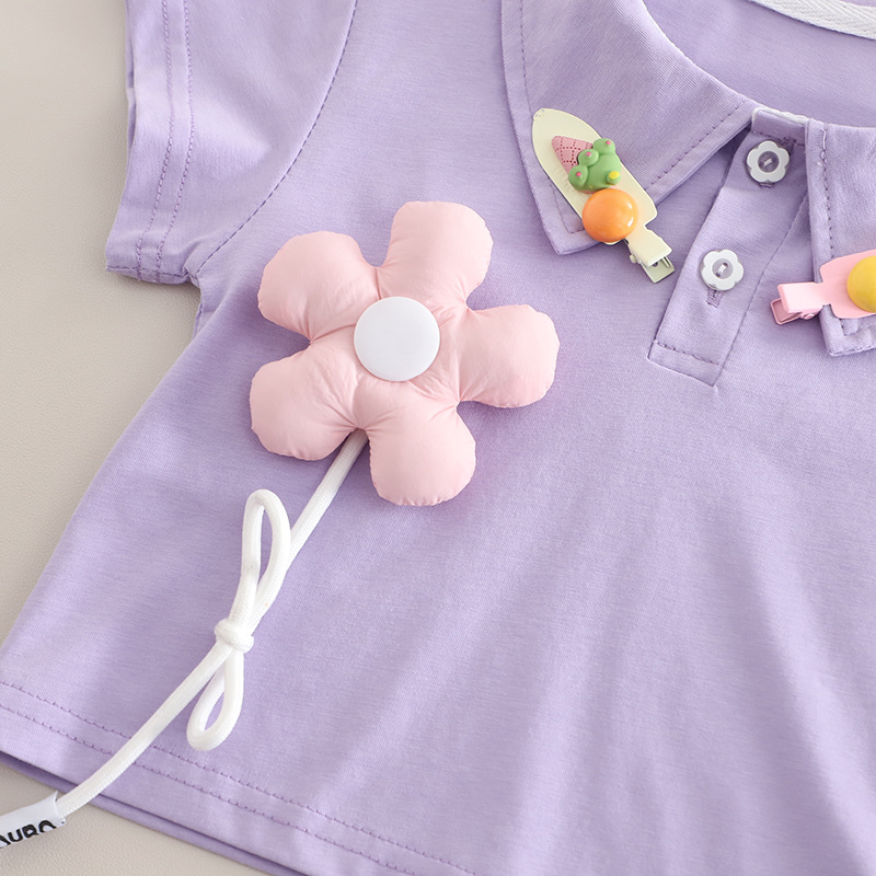 국경 간 아기 소녀 꽃 클립 반팔 양복 2025 새로운 여름 아동 의류 아동 귀여운 투피스 세트