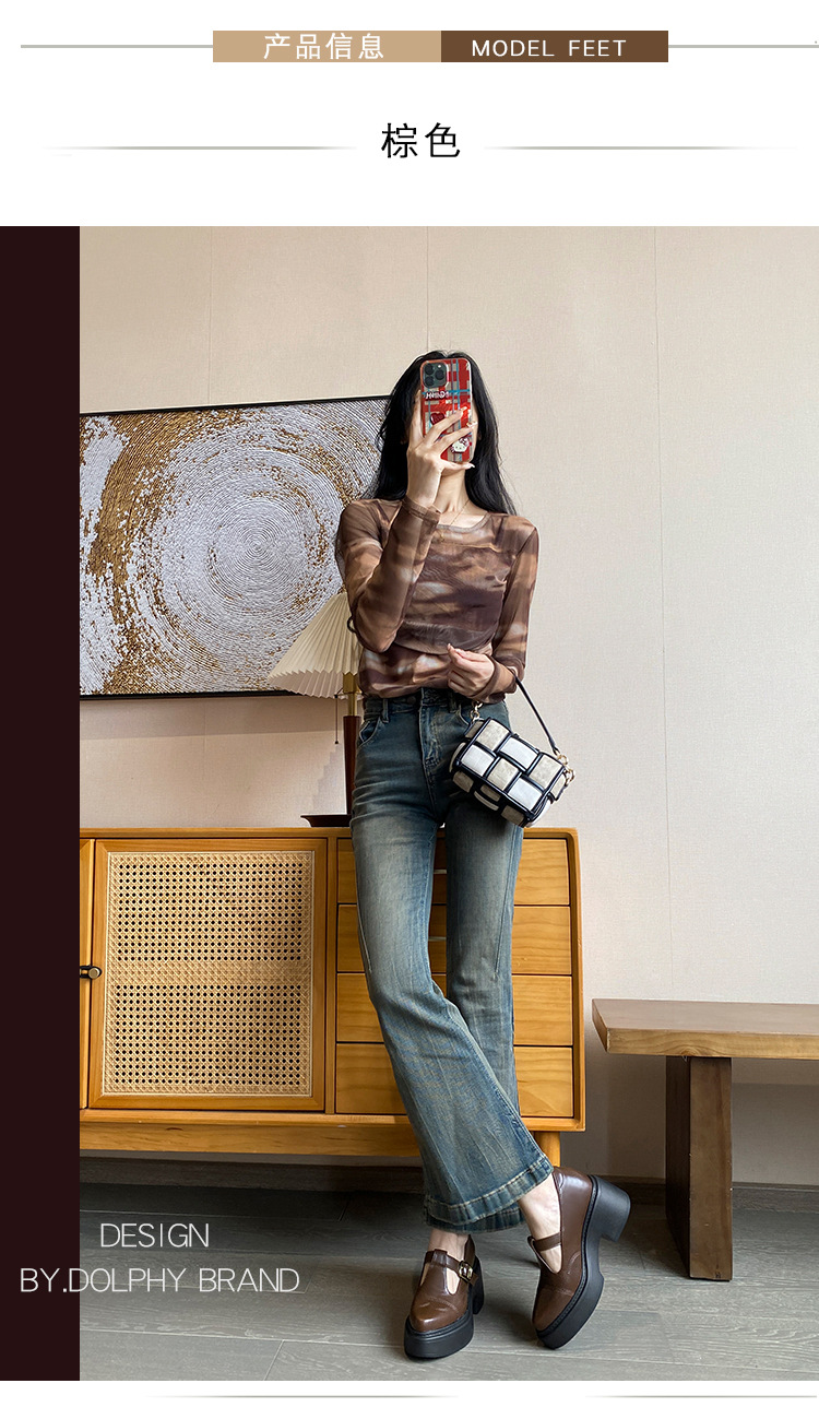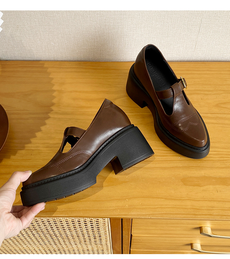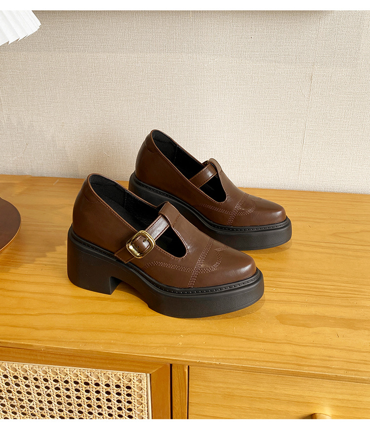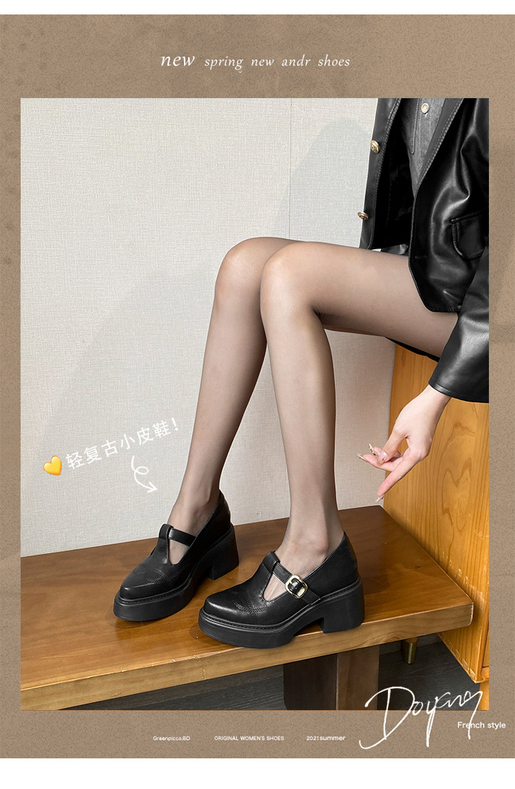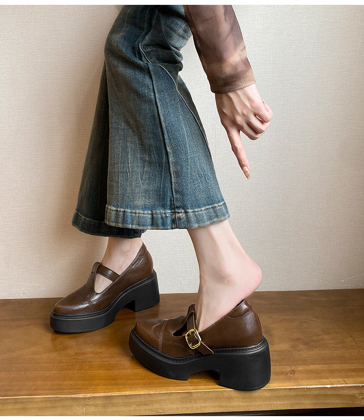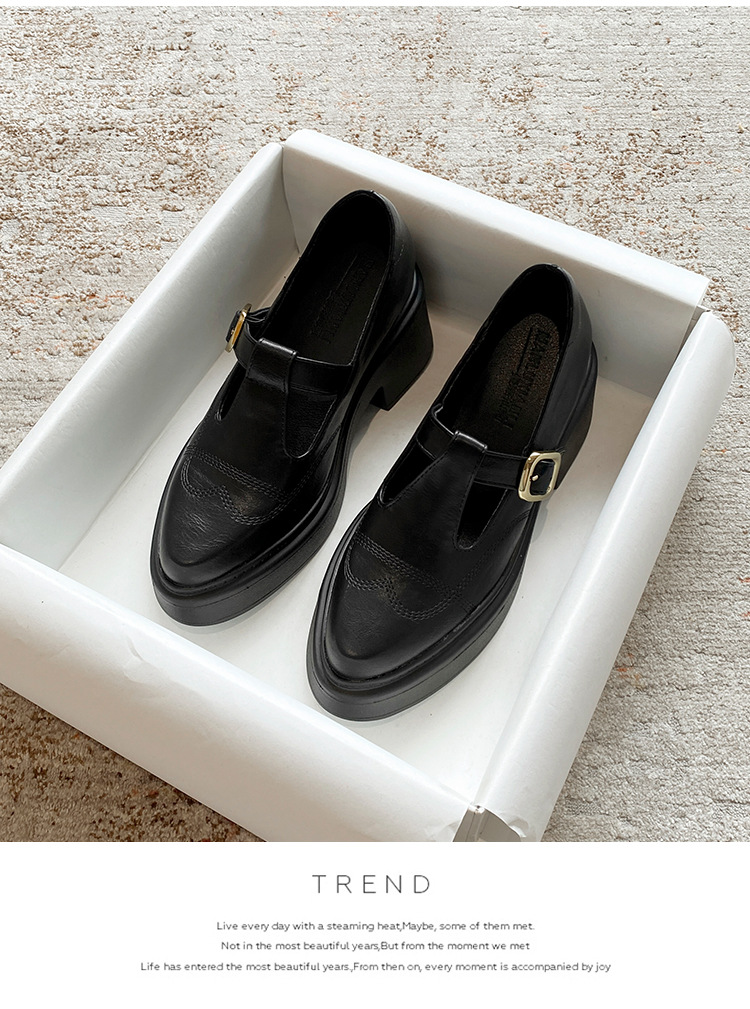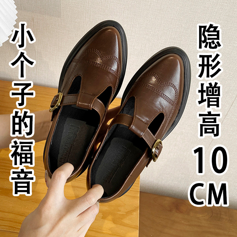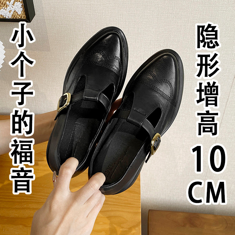 10CM 뾰족한 높이 증가 메리 제인 신발 버클 얕은 입 두꺼운 바닥 로퍼가있는 여성 신발 올매치 캐주얼 싱글 레이어 신발스토어 가기