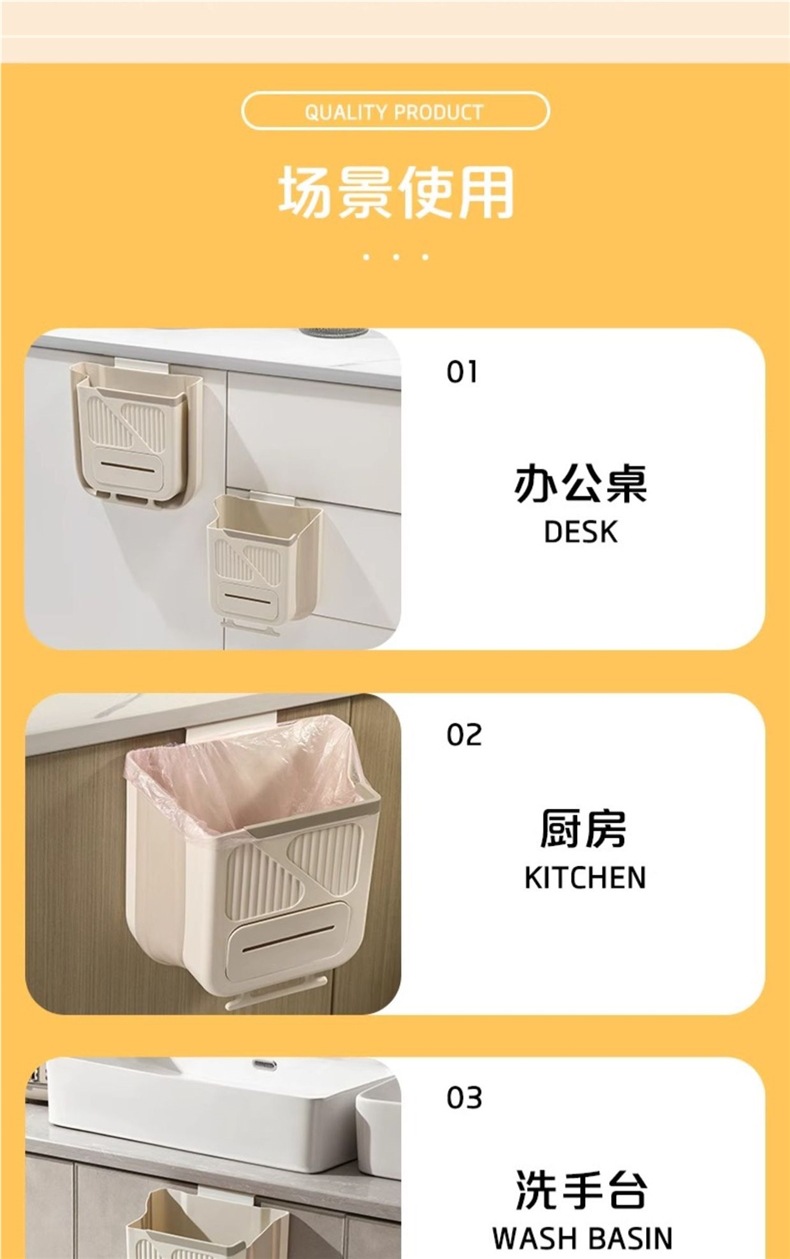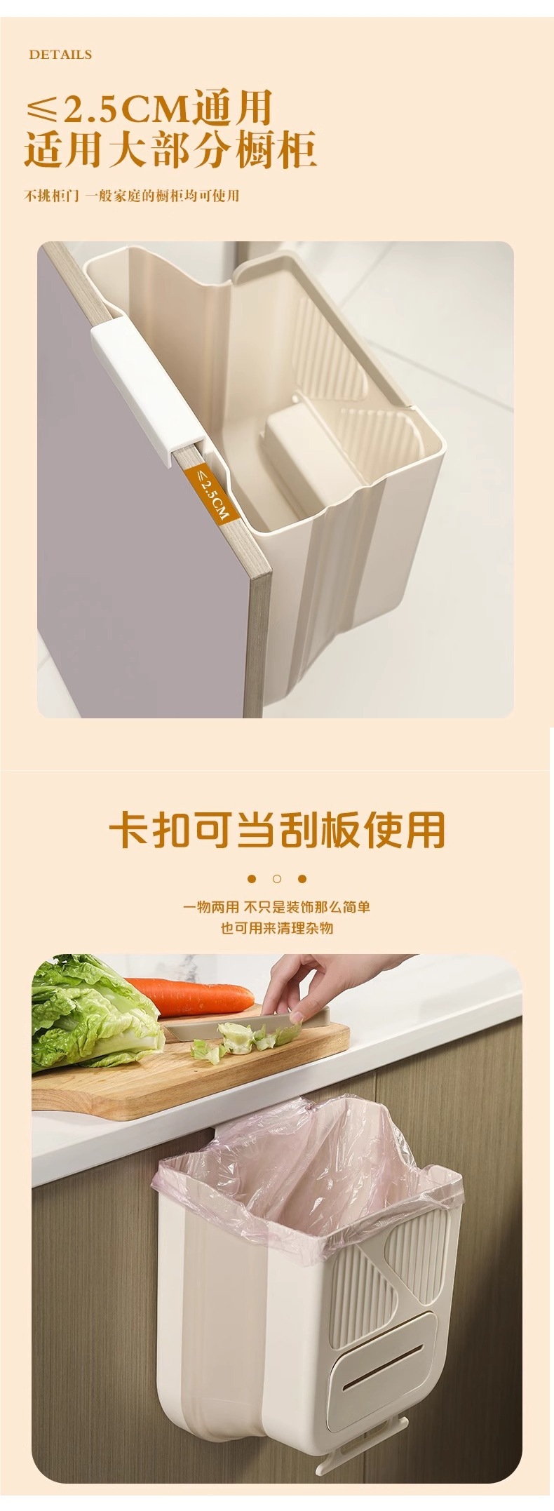 주방 휴지통 교수형 가정용 주방 폐기물 분류 접이식 캐비닛 도어 벽 교수형 욕실 화장실 보관 스프링 멜트