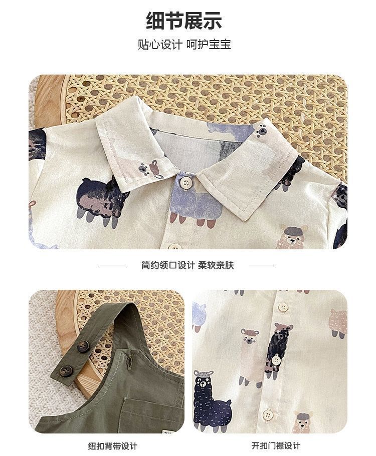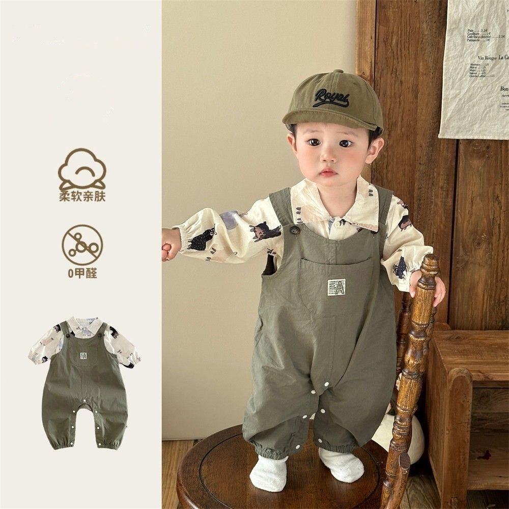 소년 세트 봄과 가을 2025 새로운 한국 스타일 외국 스타일 작은 달 아기 봄 만화 셔츠 스트랩 두 조각스토어 가기