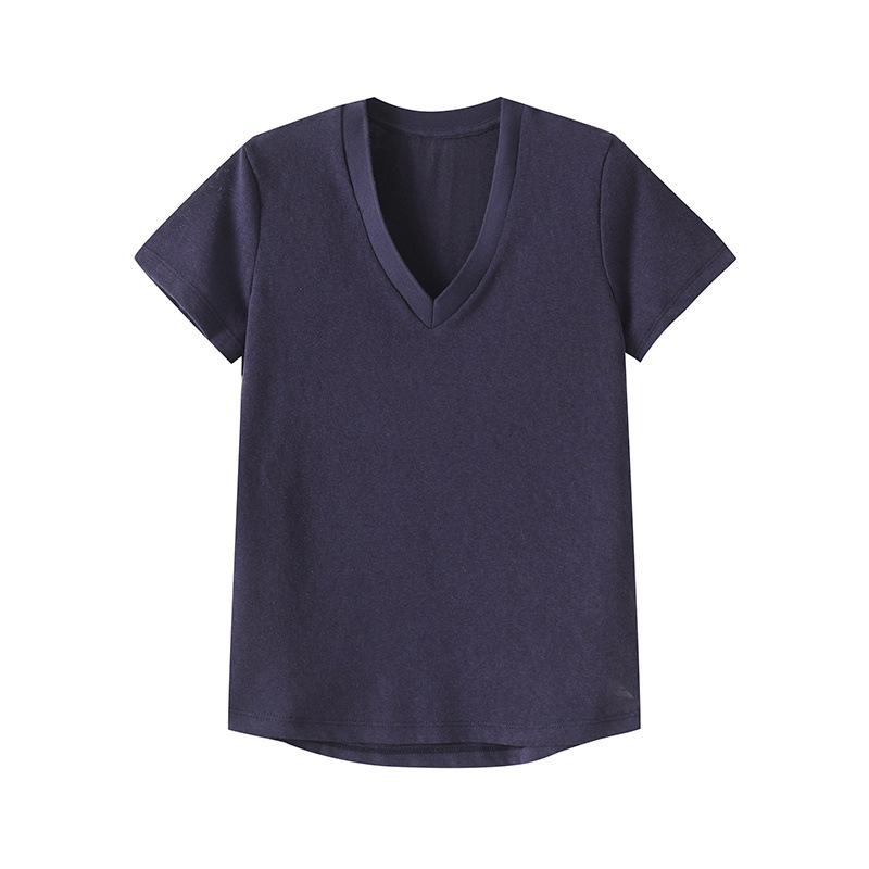 여성용 캐주얼 V 넥 숄더 티셔츠 코튼 리넨 통기성 반팔 심플 슬림베이스 여름 m476174스토어 가기