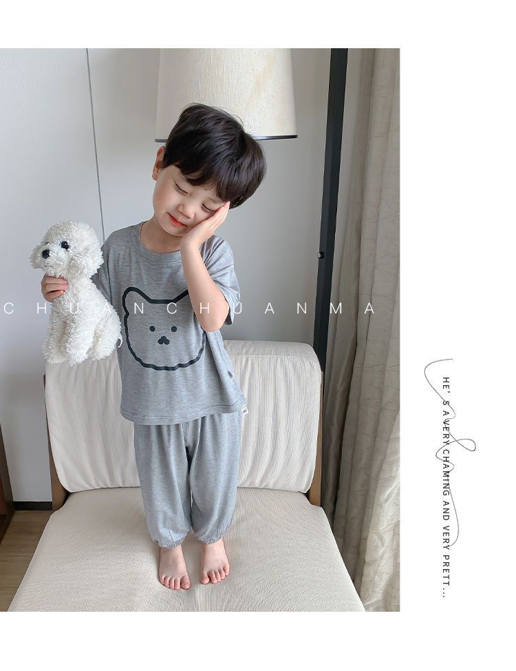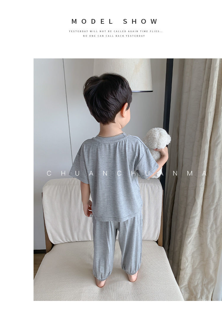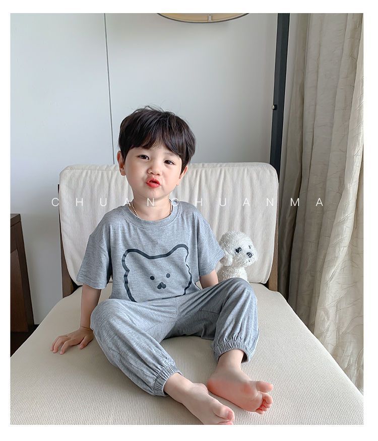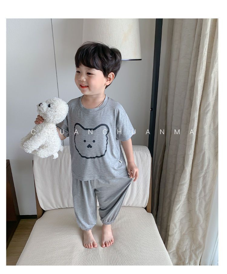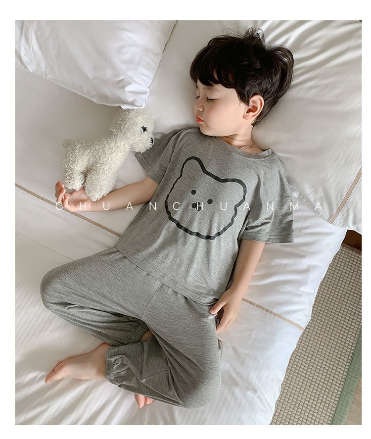 소년 소녀를위한 어린이 잠옷 여름 반팔 아기 에어컨 의류 모달 얇은 어린이 홈 의류 여름 패션스토어 가기