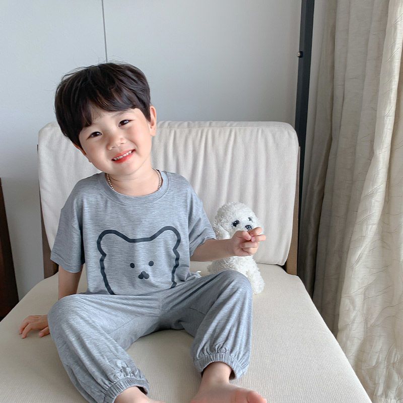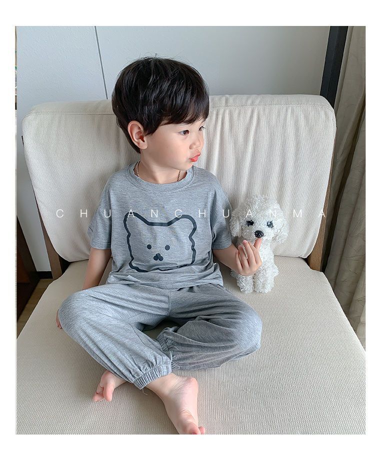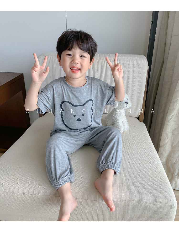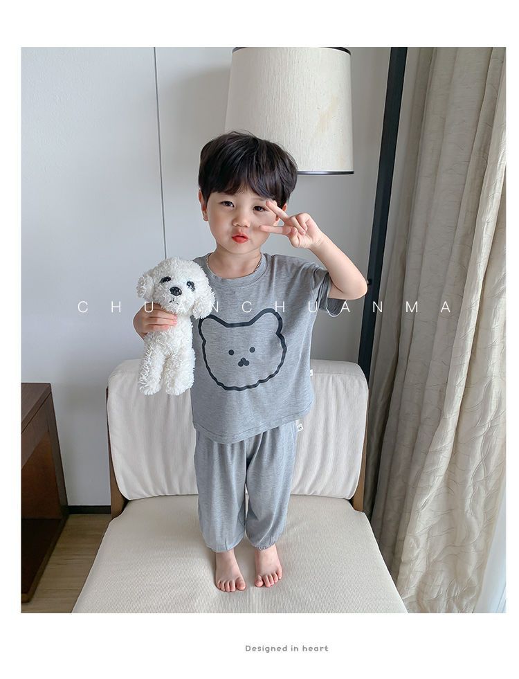 소년 소녀를위한 어린이 잠옷 여름 반팔 아기 에어컨 의류 모달 얇은 어린이 홈 의류 여름 패션스토어 가기