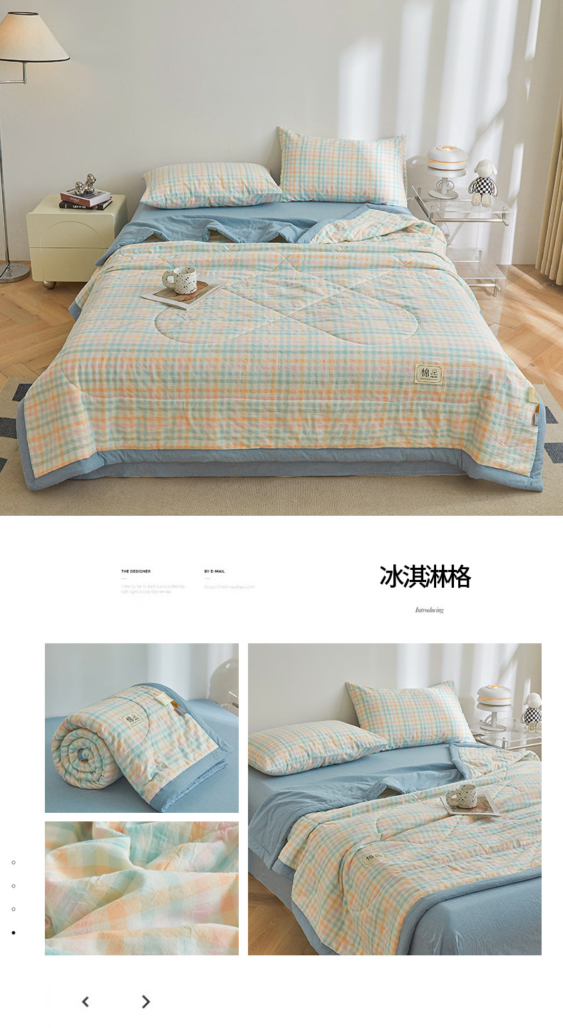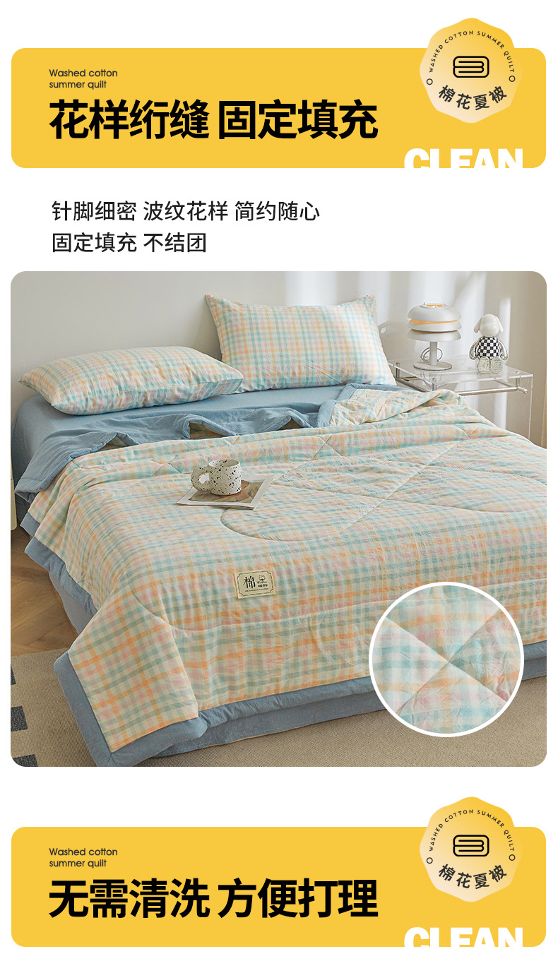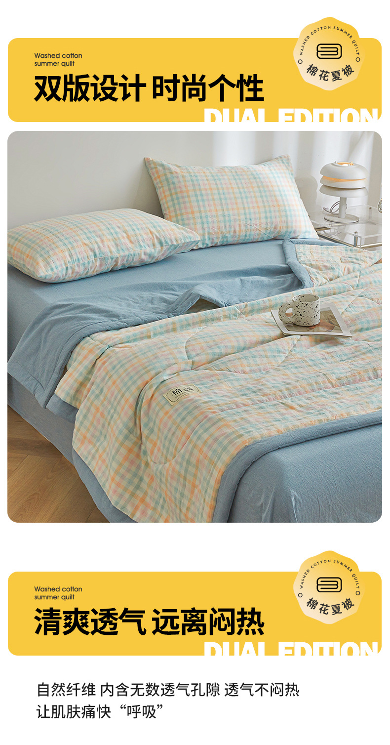 A급 신장면 여름 이불, 여름용 시원한 이불, 세탁 가능한 면 이불, 싱글/더블 사이즈, 기숙사용, 세탁기 사용 가능, 선물용 얇은 이불