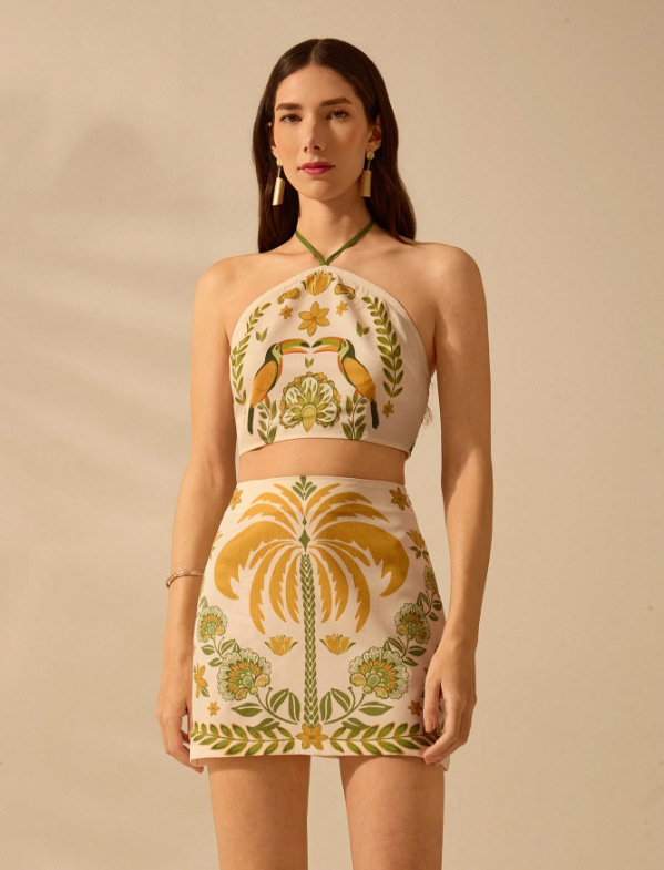 2025 대외 무역 국경 유럽 및 미국 여성의 끈없는 여름 반바지 열대 식물과 코코넛 나무 인쇄 휴일 세트