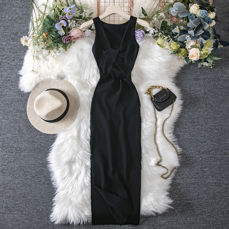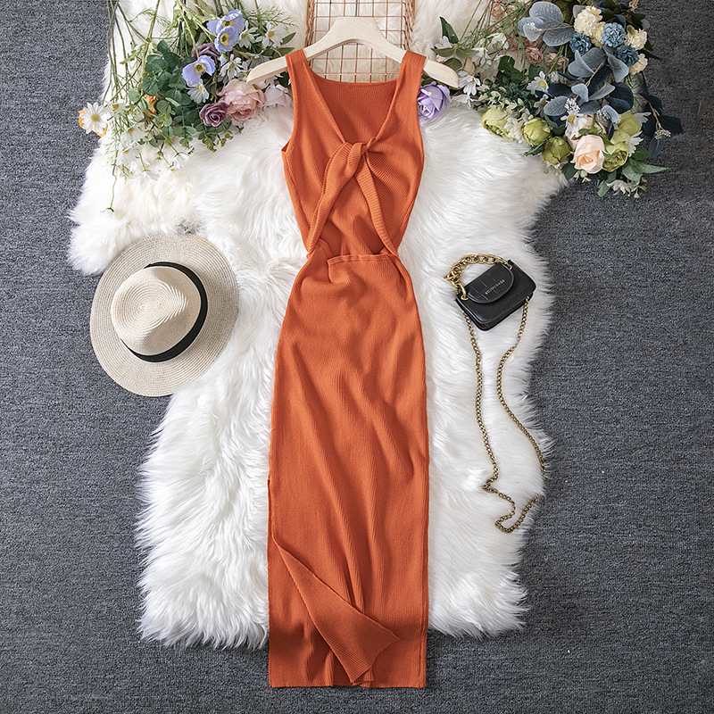 유럽과 미국의 패션 2025 새로운 여름 스타일 섹시한 트위스트가 가슴을 드러내는 중공 패션 투웨어 니트 드레스스토어 가기