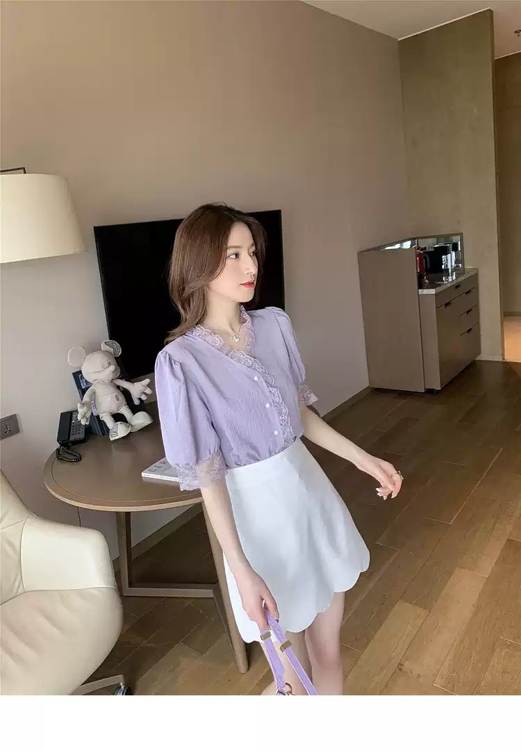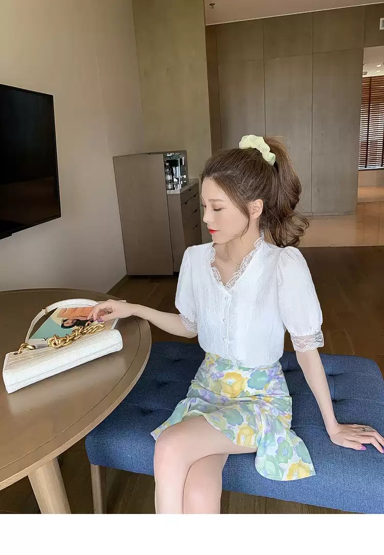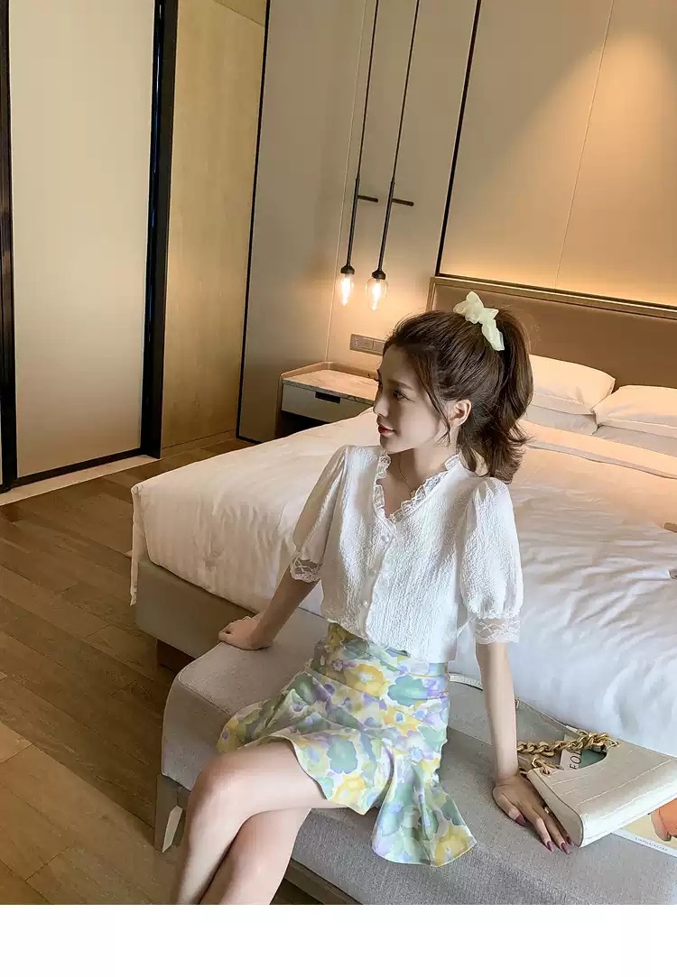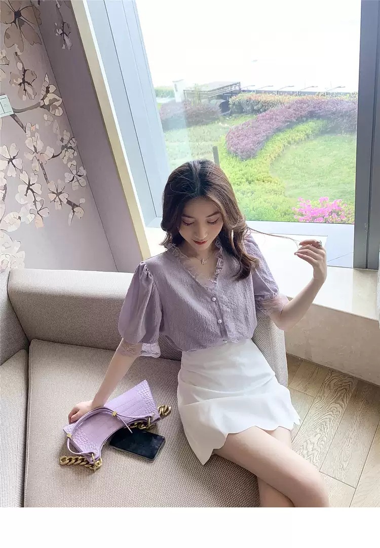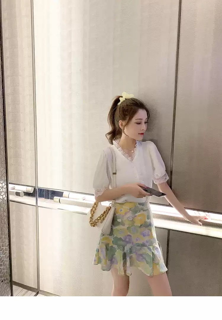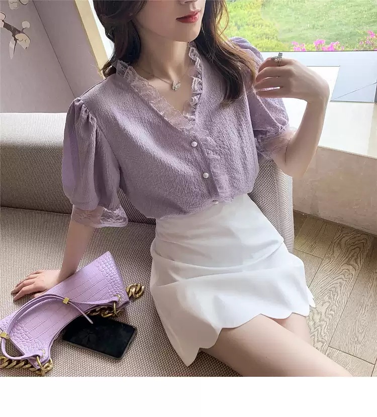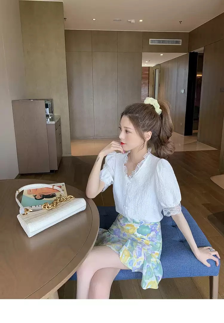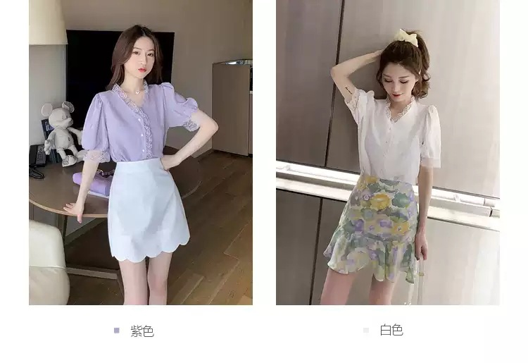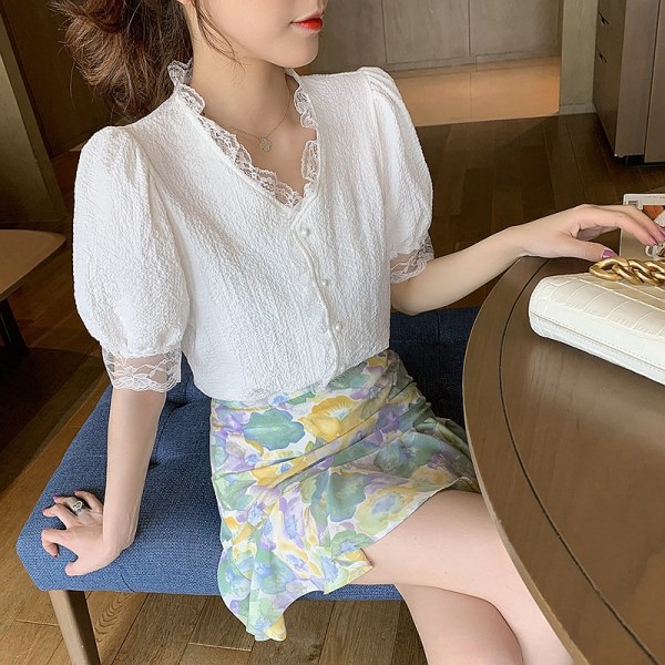 세련되고 달콤한 패셔너블한 쉬폰 셔츠 탑 2025 여름 신작 화이트 셔츠 여성 프렌치 디자인 틈새 시장스토어 가기