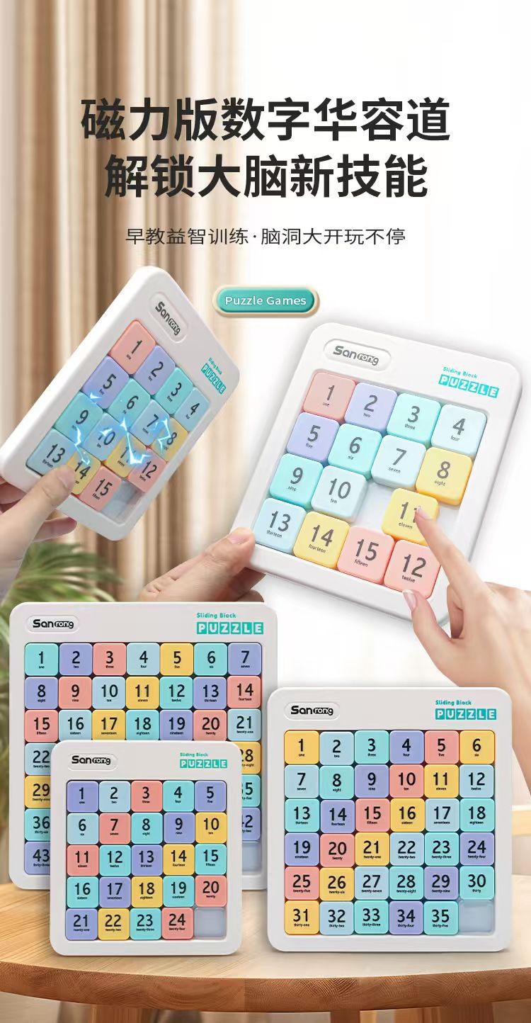 자기 디지털 Huarongdao Sanrong 정품 슬라이딩 퍼즐 어린이 교육 수학 영감 논리적 사고 훈련