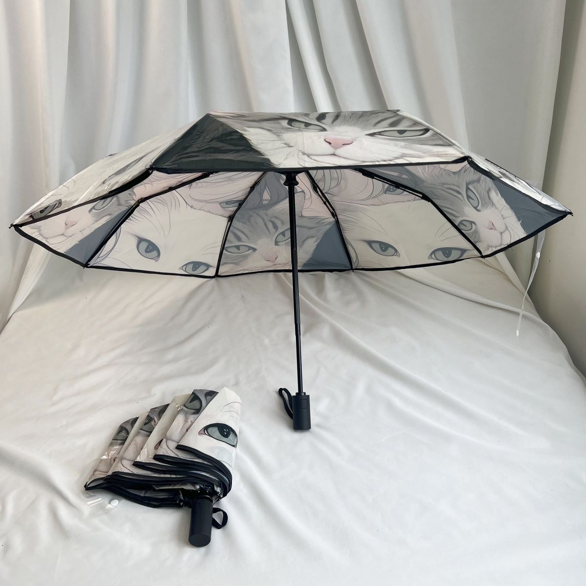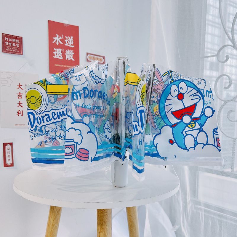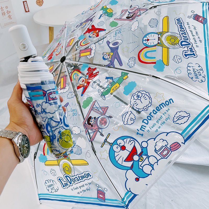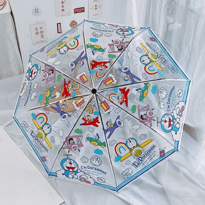 한 조각 무료 배송 재고 전체 자동 8-뼈 트라이 폴드 도라에몽 투명 우산 접이식 투명 우산 패턴스토어 가기