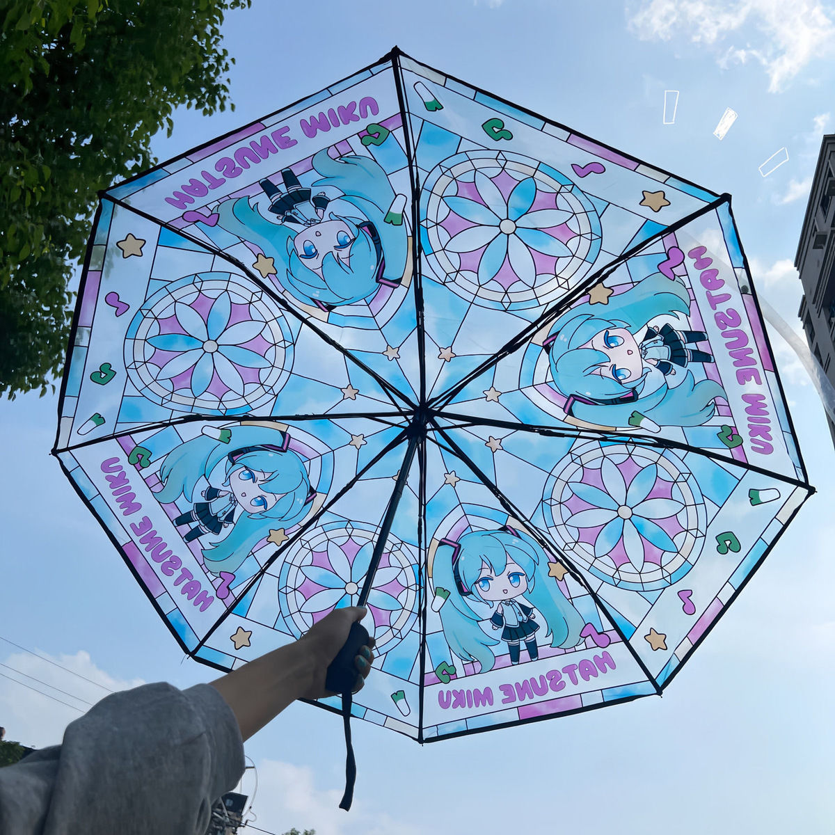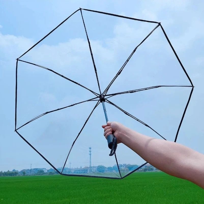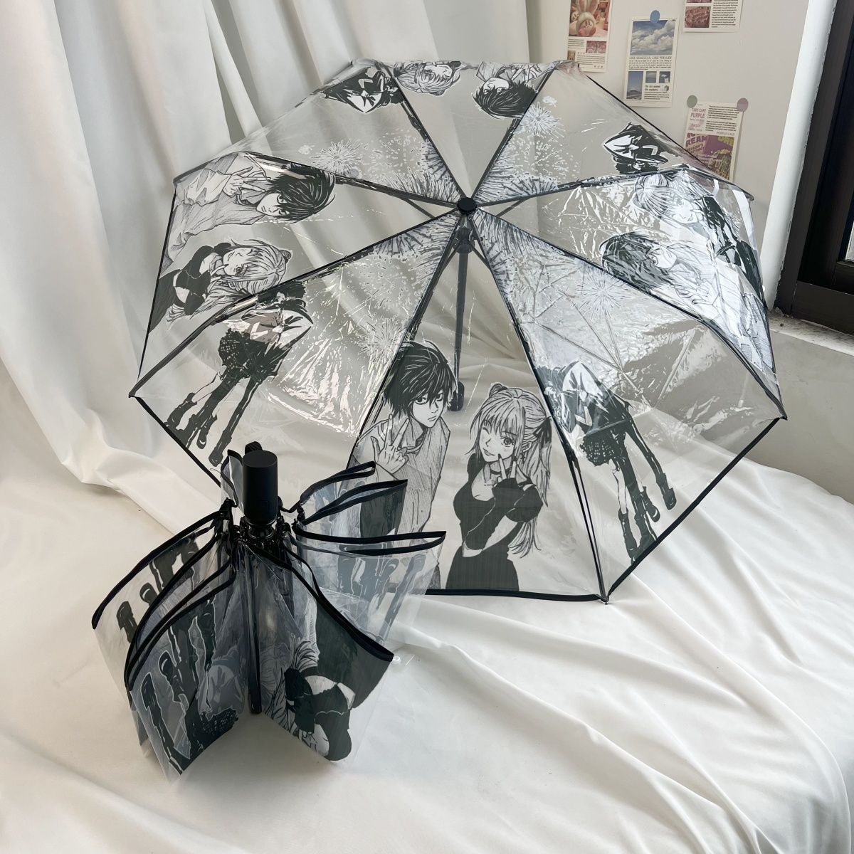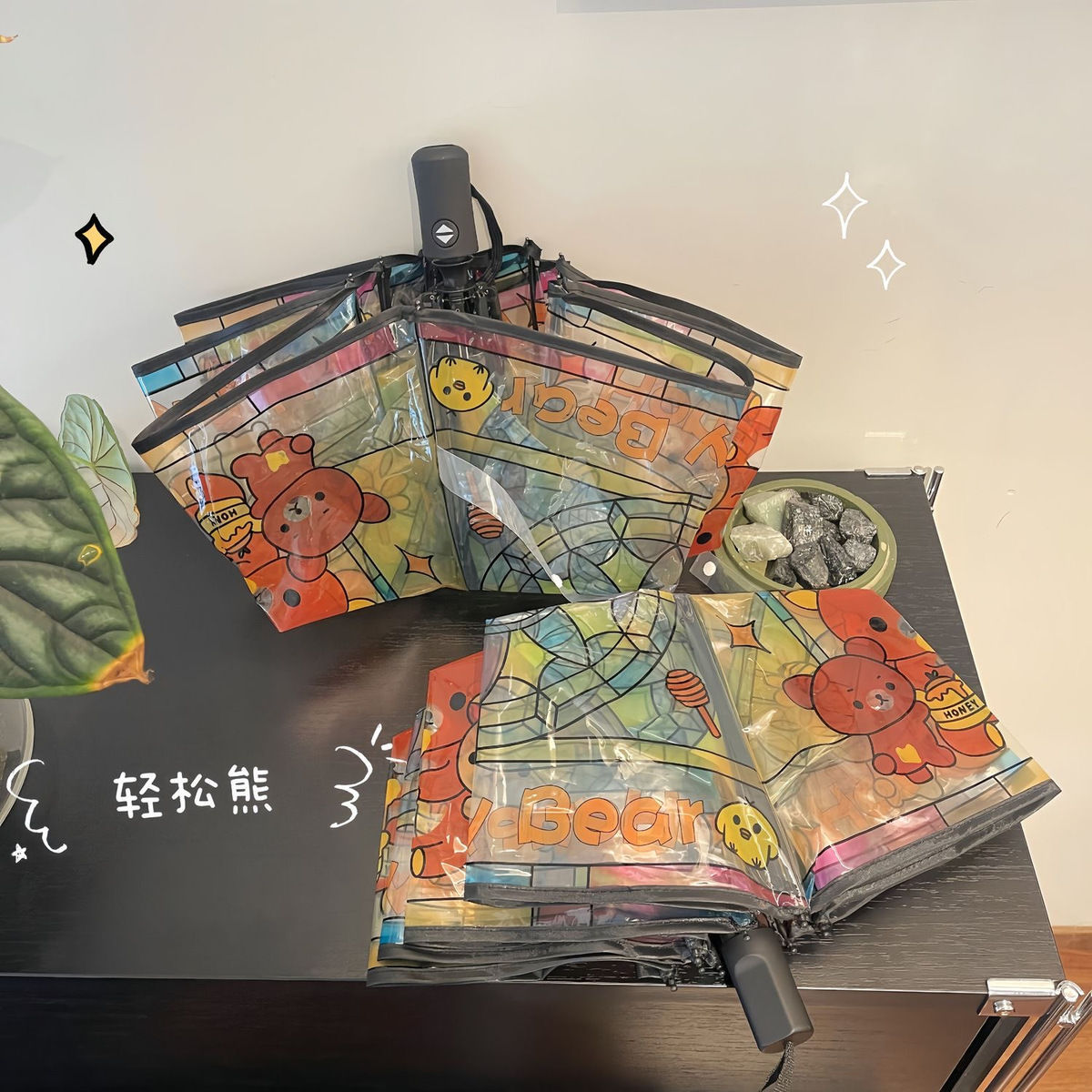 한 조각 무료 배송 재고 전체 자동 8-뼈 트라이 폴드 도라에몽 투명 우산 접이식 투명 우산 패턴스토어 가기