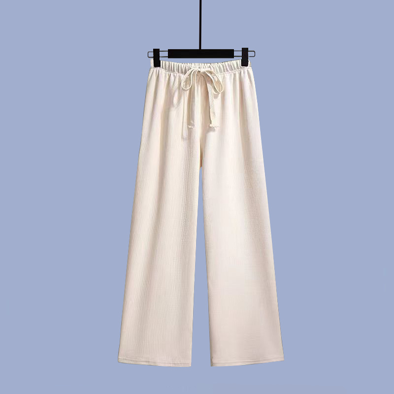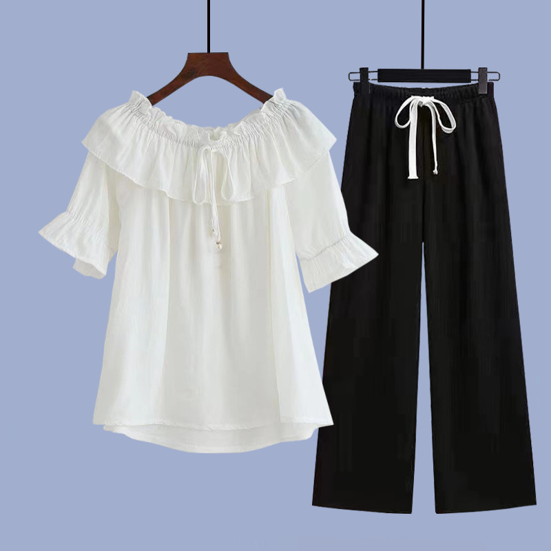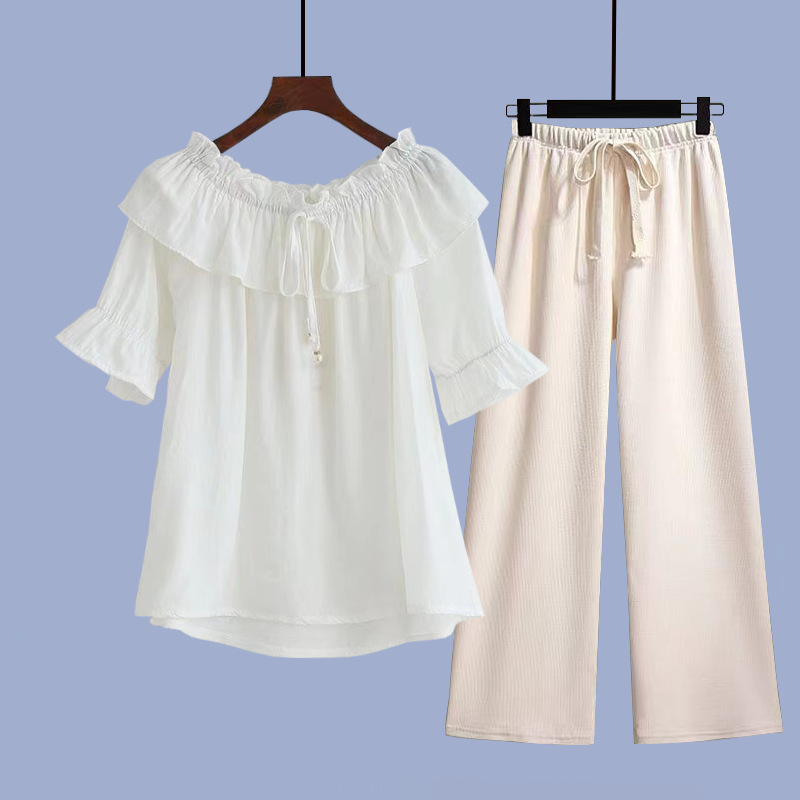 • 흰색 반팔 + 황백색 와이드 팬츠 정장