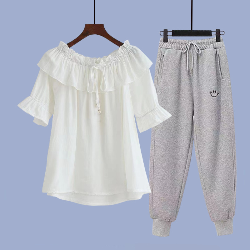 • 흰색 반팔 + 회색 스웨트팬츠 정장