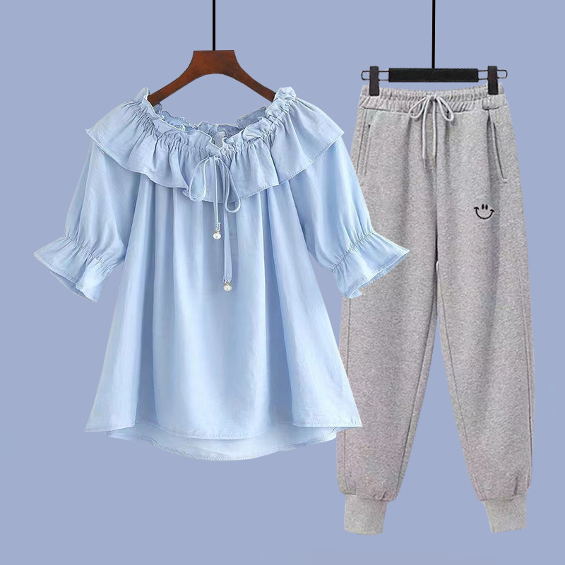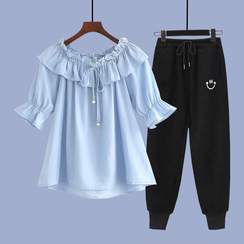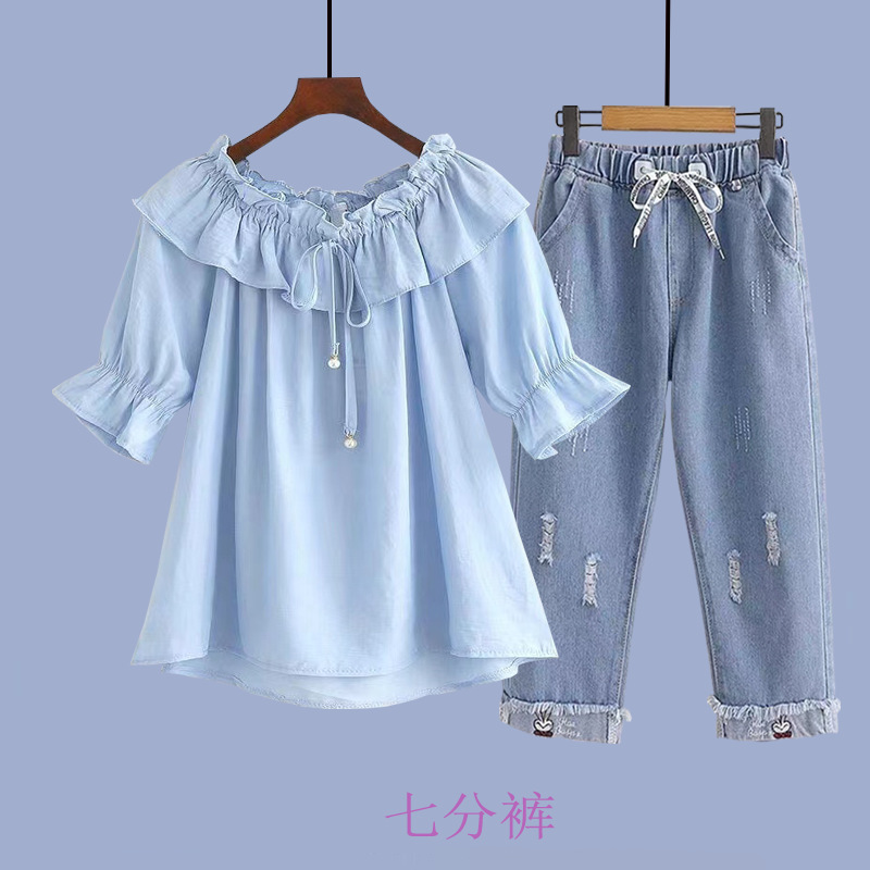 여성 여름 얇은 싱글/슈트 어린 소녀 반팔 쉬폰 셔츠 중학생 여성 패션 여름 투피스 세트