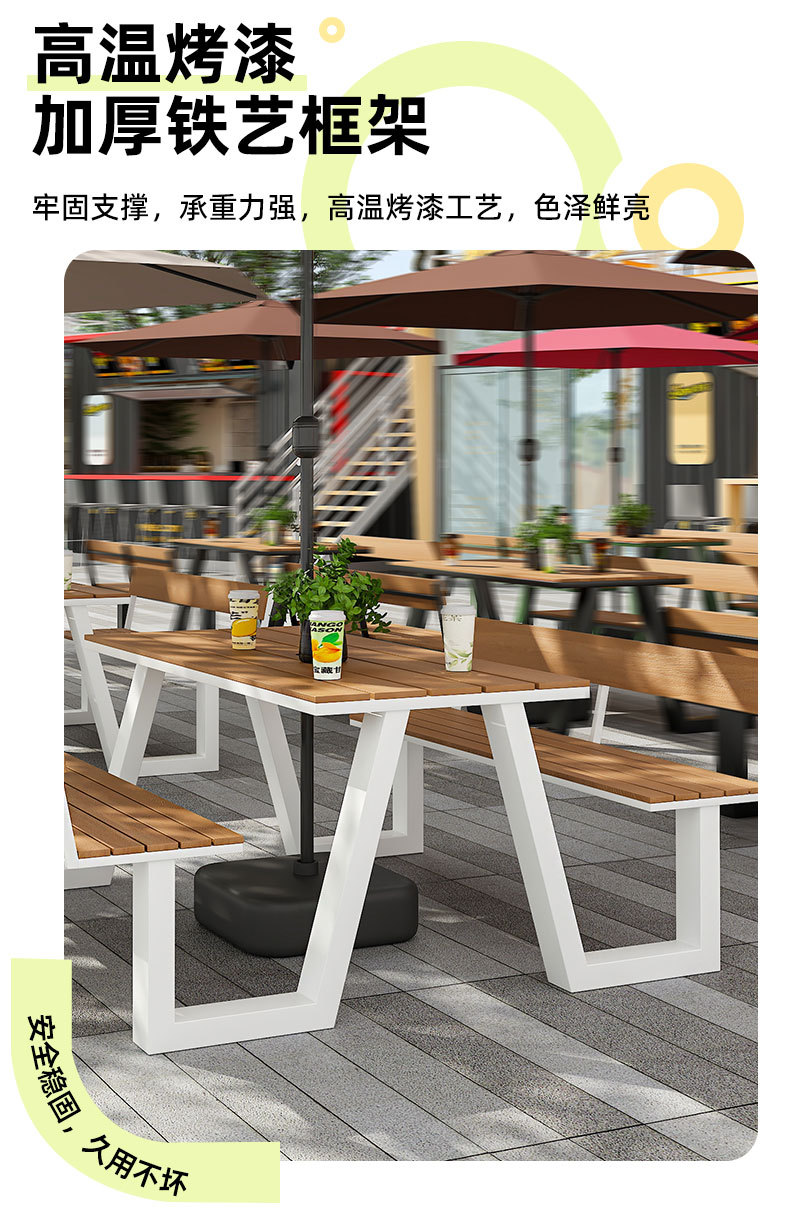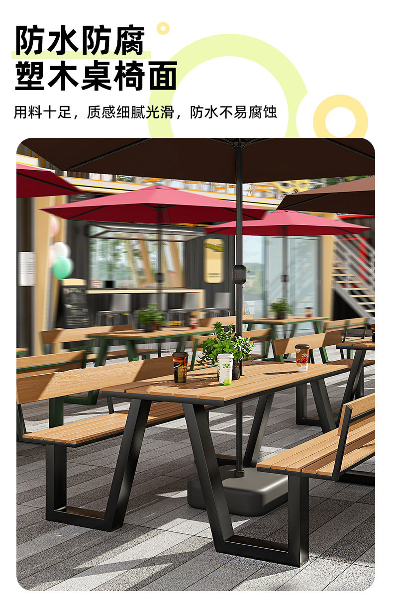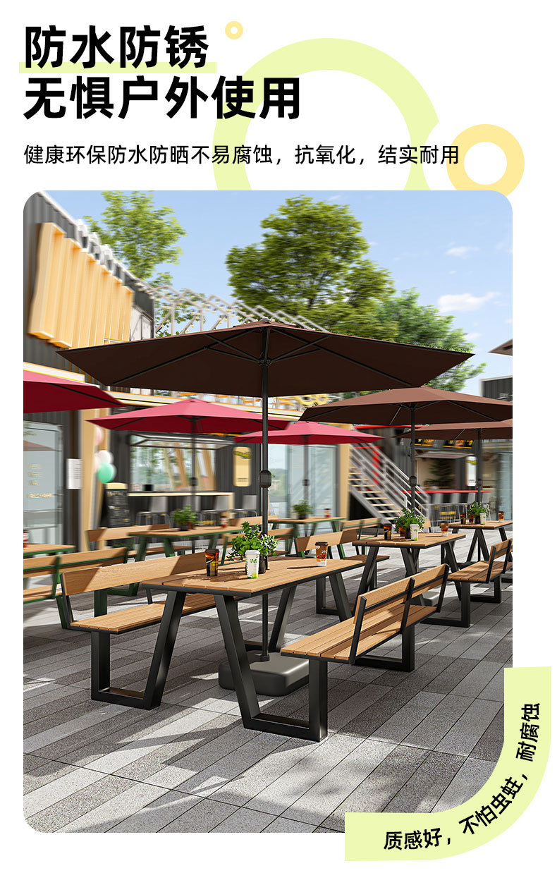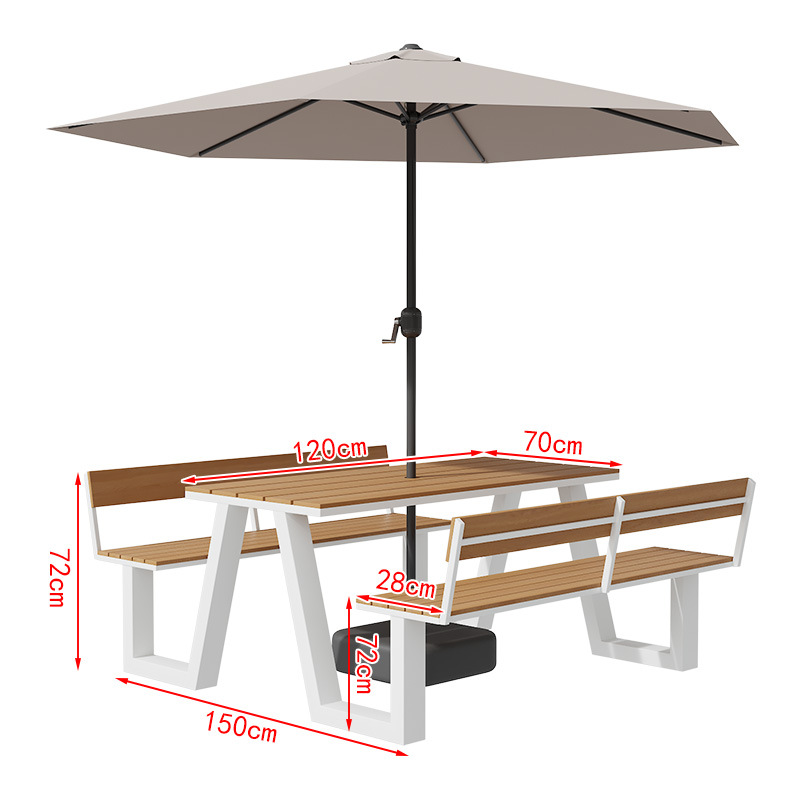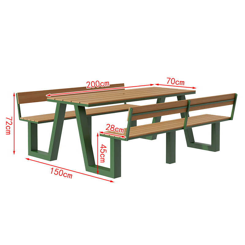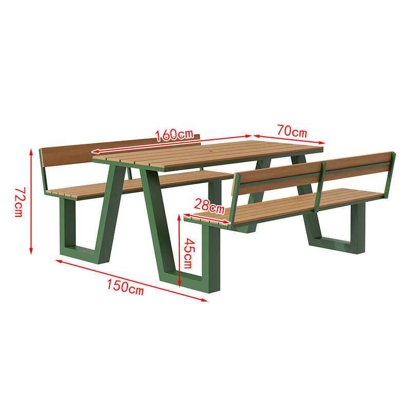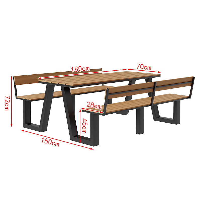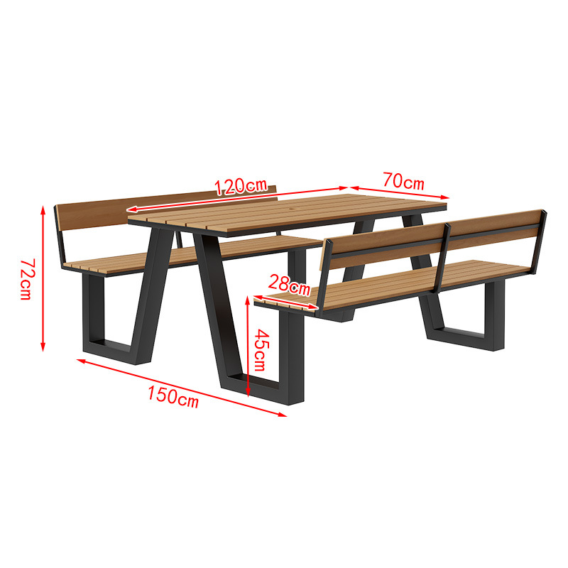 야외 테이블과 의자 조합 공원 의자 철공 정원 안뜰 좌석 경치 벤치 통합 플라스틱 목재 식탁 및 의자스토어 가기