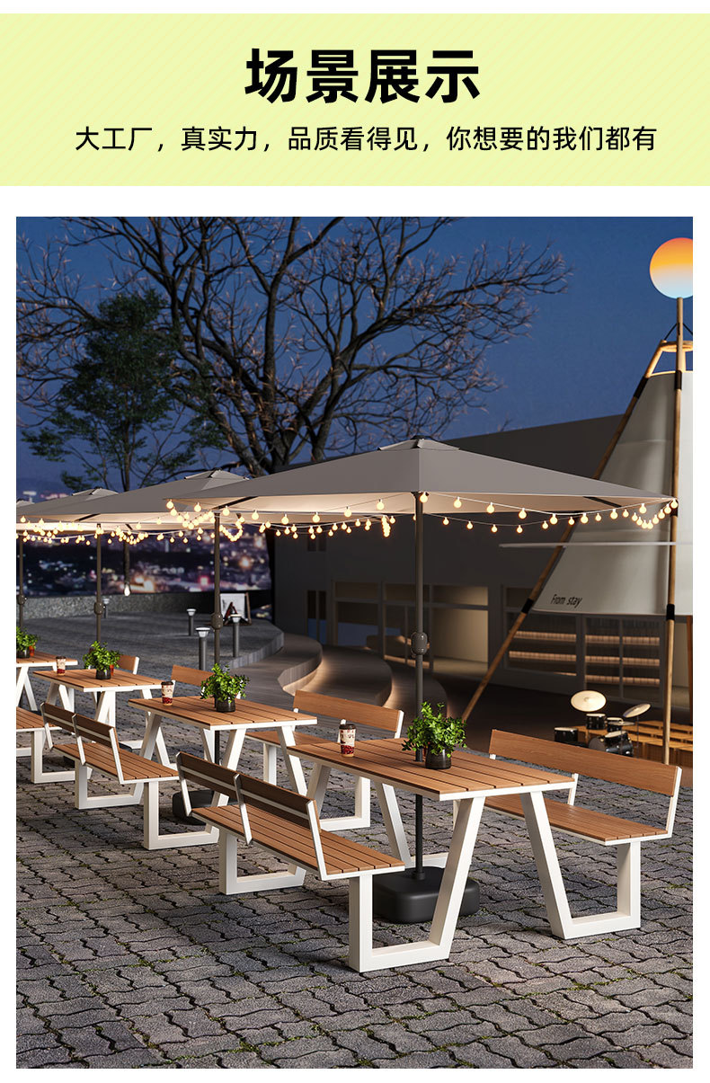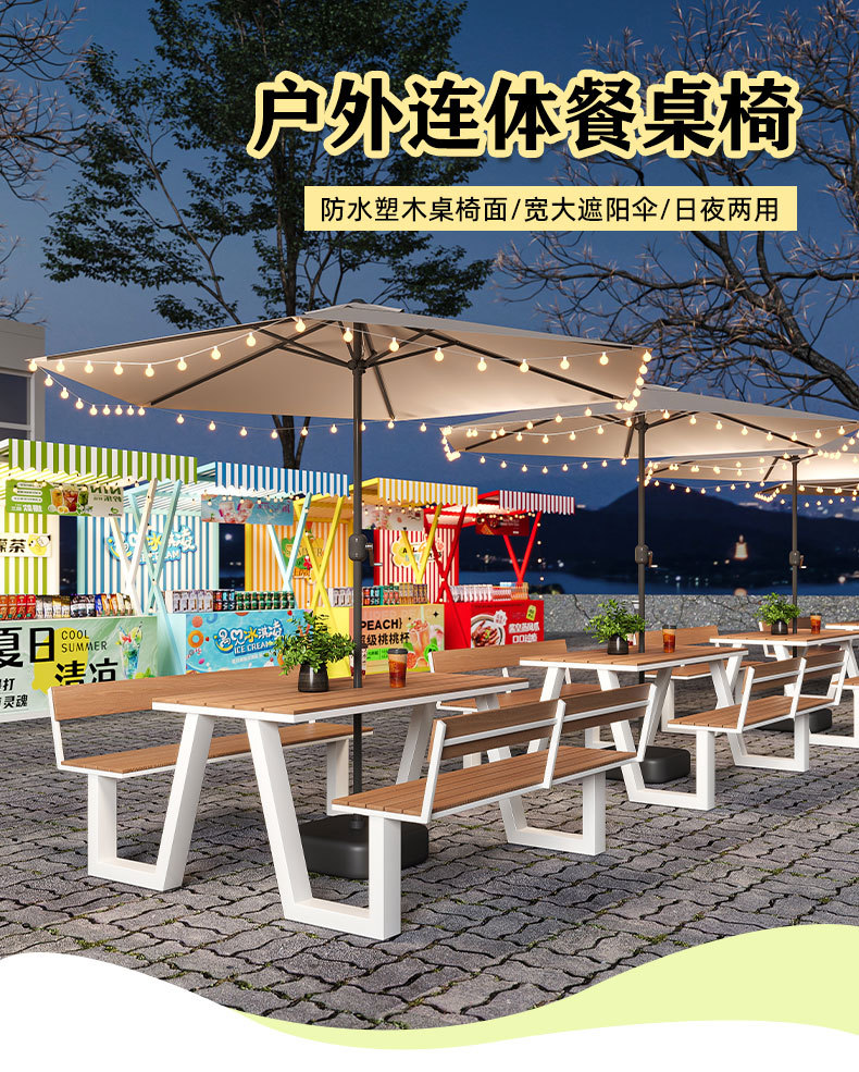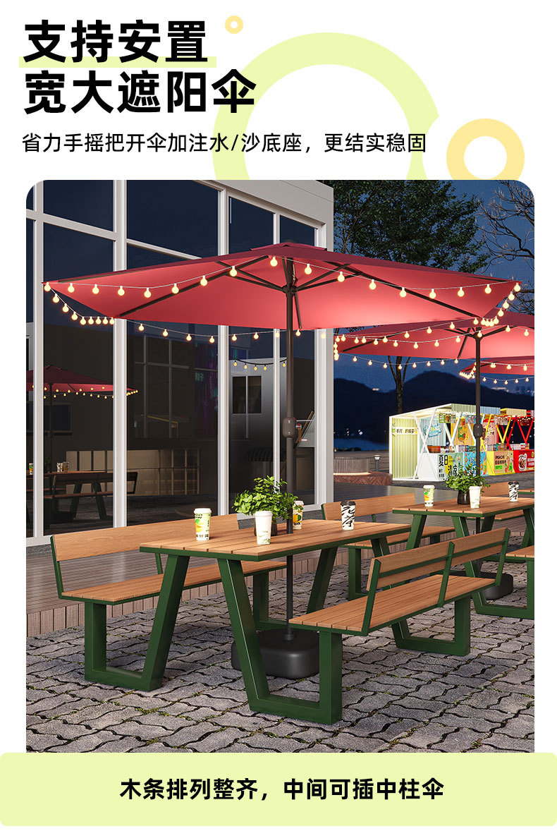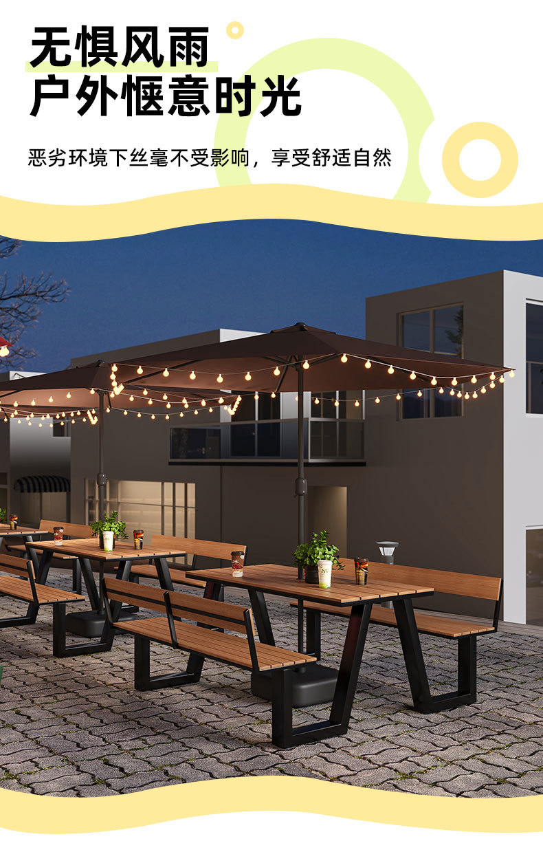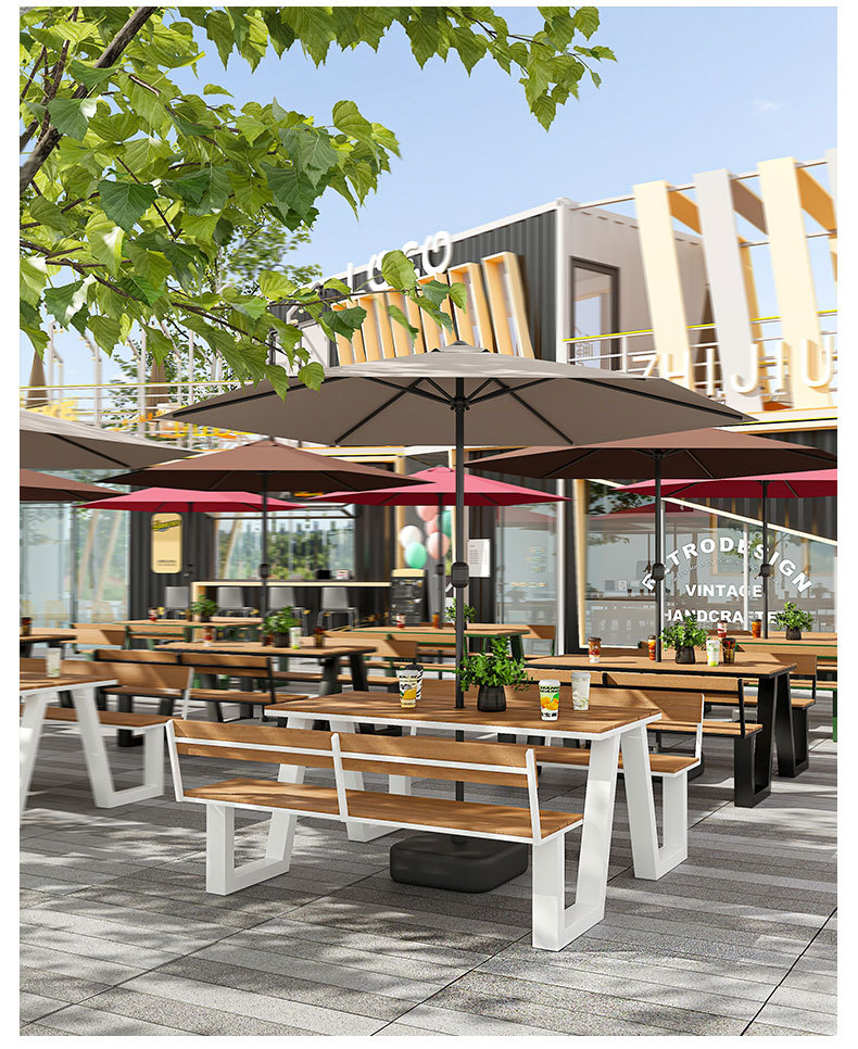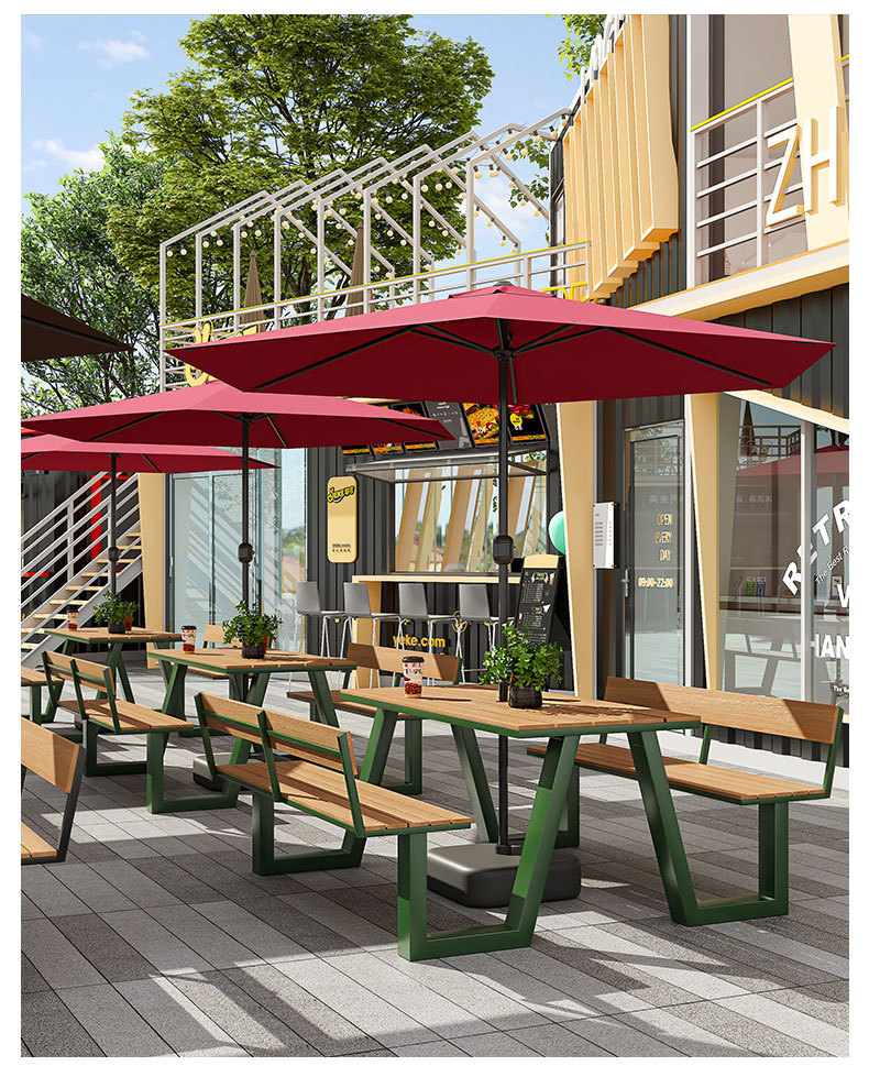 야외 테이블과 의자 조합 공원 의자 철공 정원 안뜰 좌석 경치 벤치 통합 플라스틱 목재 식탁 및 의자스토어 가기