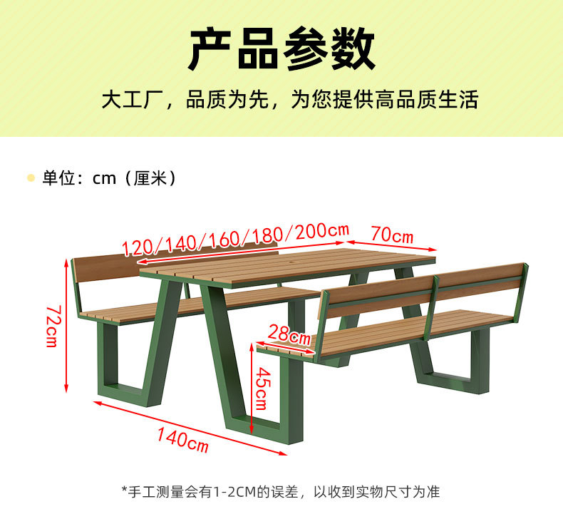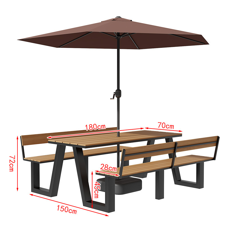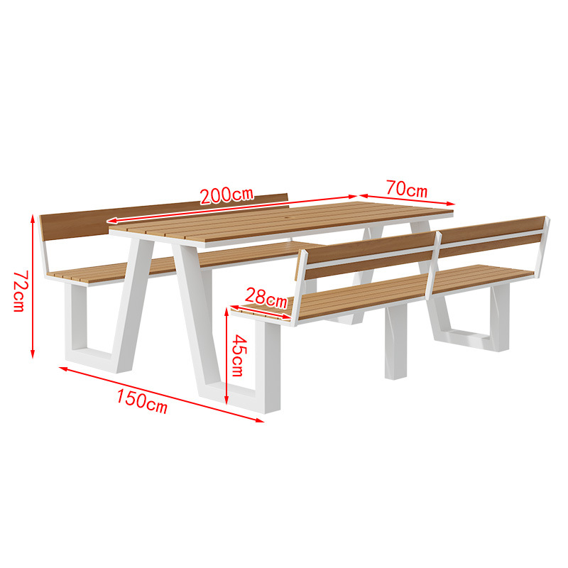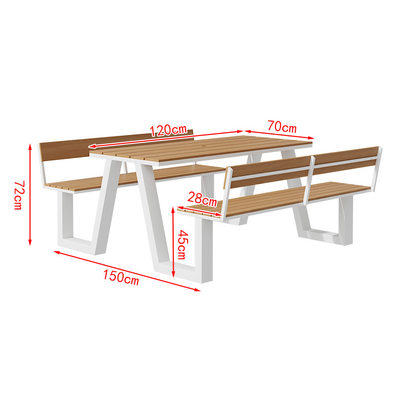 야외 테이블과 의자 조합 공원 의자 철공 정원 안뜰 좌석 경치 벤치 통합 플라스틱 목재 식탁 및 의자
