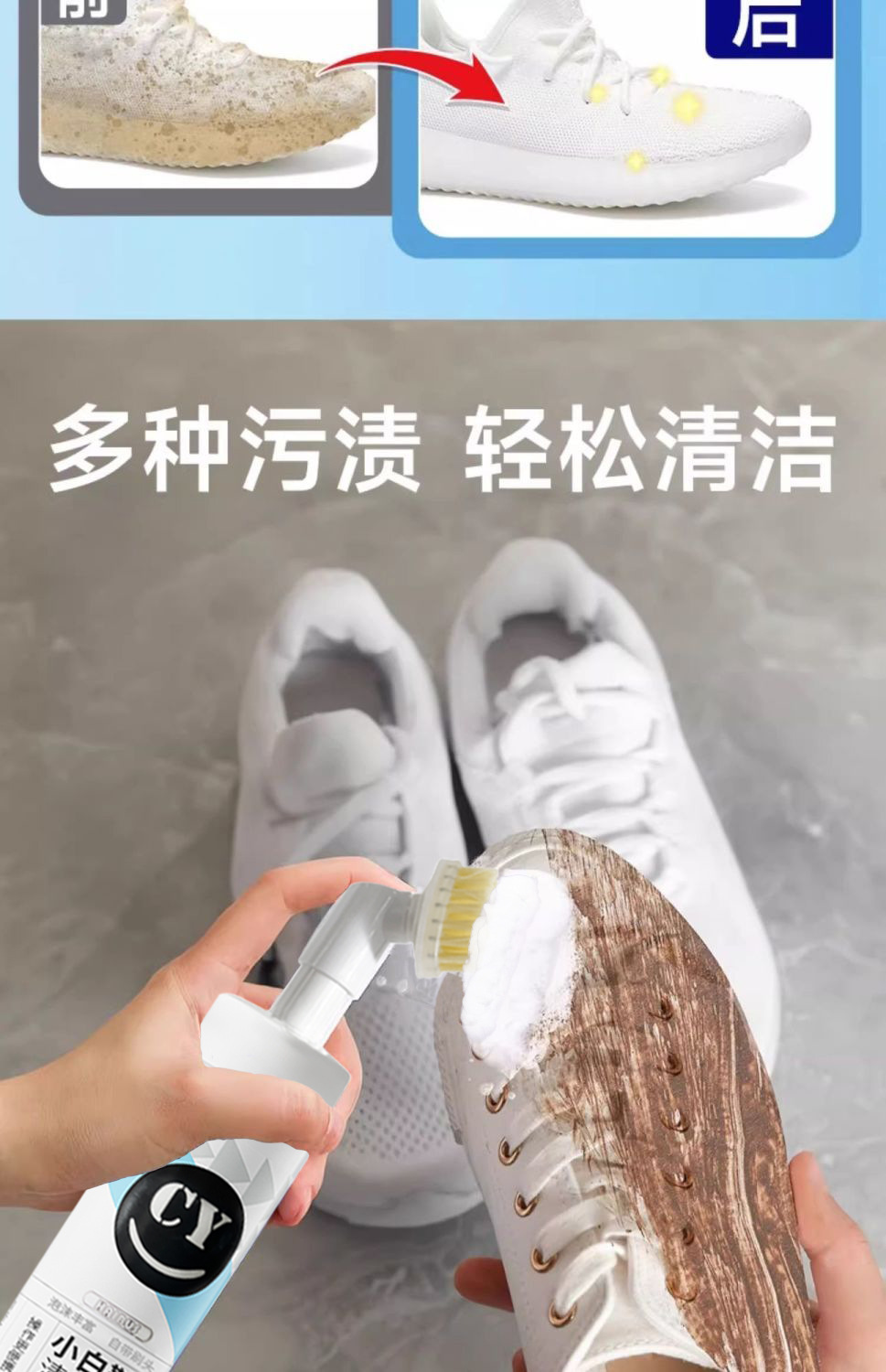 강한 흰색 신발 청소 에이전트 스니커즈 메쉬 슈즈 워시 프리 미백 오염 제거 폼 흰색 신발 브러시 유물스토어 가기