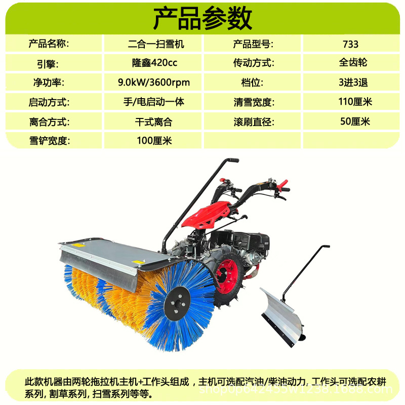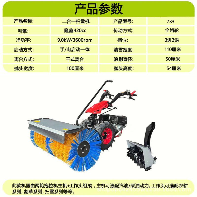 • 2-in-1 풀 기어 110 제설기 + 회전 경운기