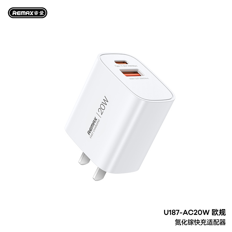 Remax 새로운 30W 빠른 충전 헤드 Type-C 포트 휴대 전화 충전 헤드 유럽 게이지 게이지 갈륨 질화물 충전기 라인스토어 가기