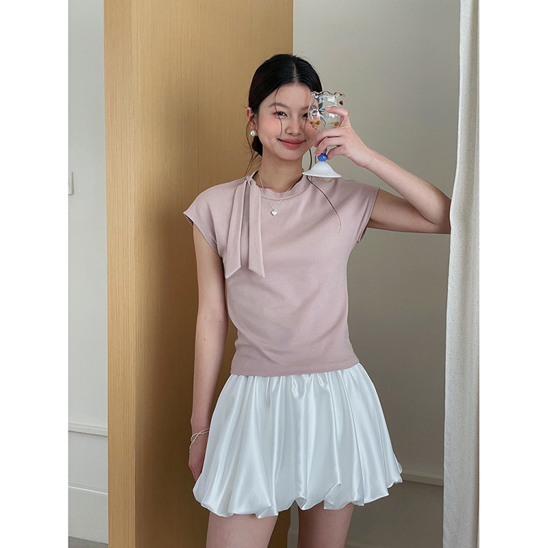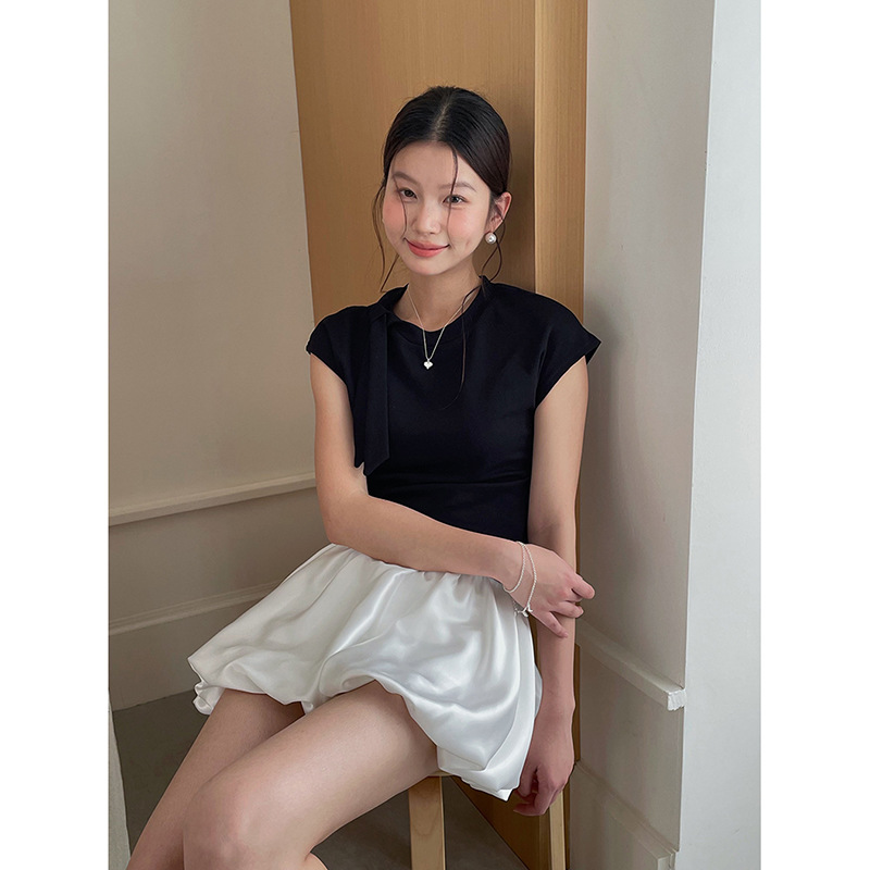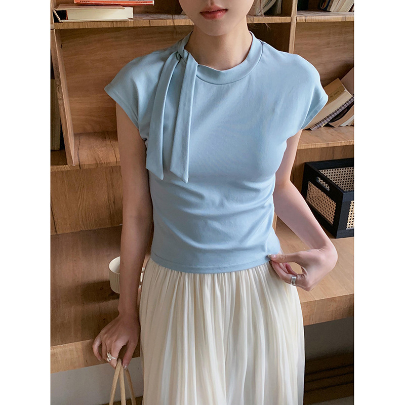 [어린 소녀] 송명한국 통근 크루 넥 사이드 스트랩 티셔츠 여자 여름 새 탑 Y2790F