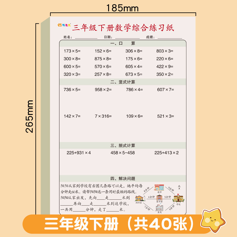 초등학교 2, 3, 4학년을 위한 수학 종합 연습지, 구술 계산, 분리 계산, 수직 계산, 문제 해결스토어 가기