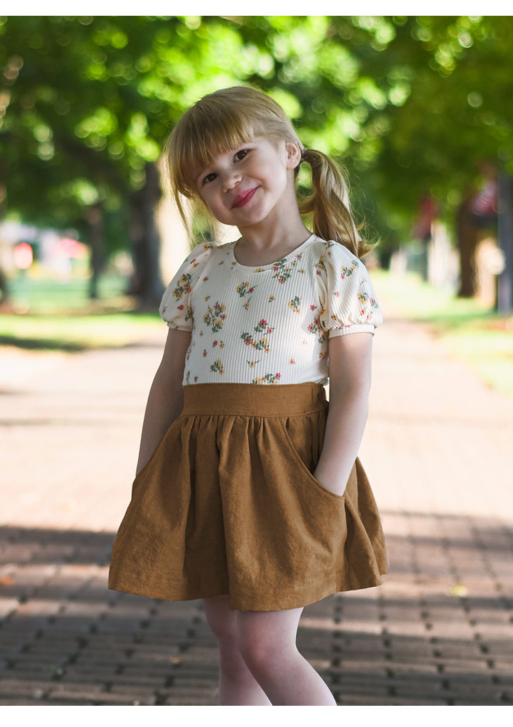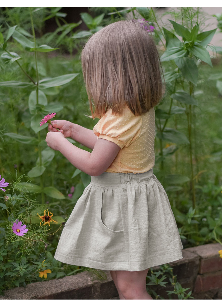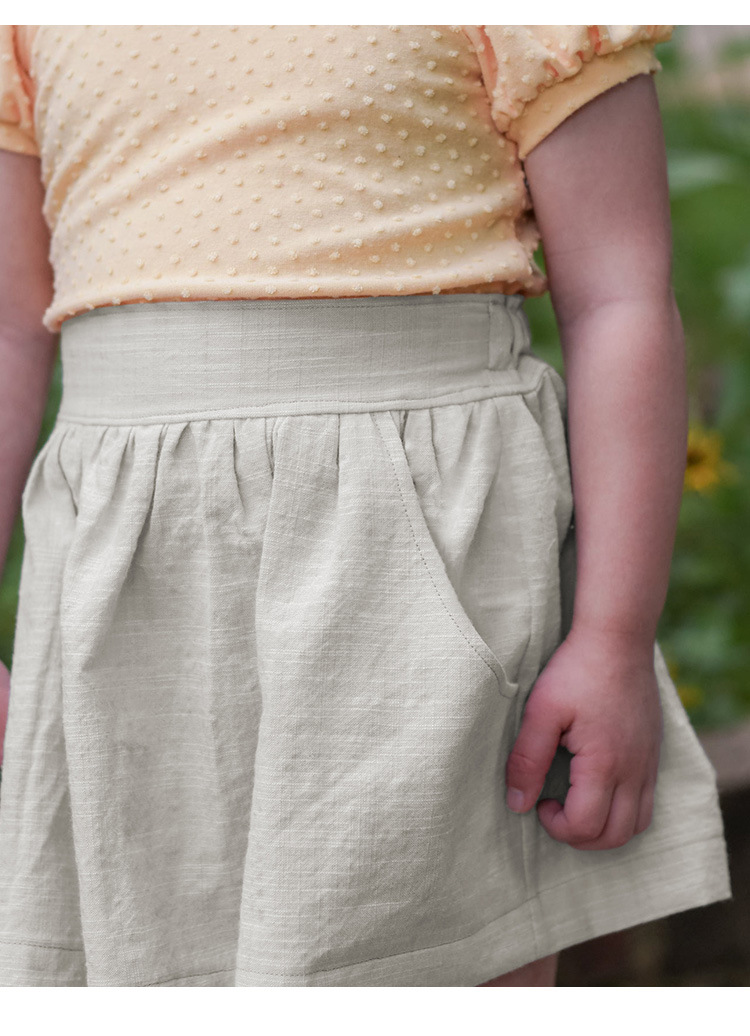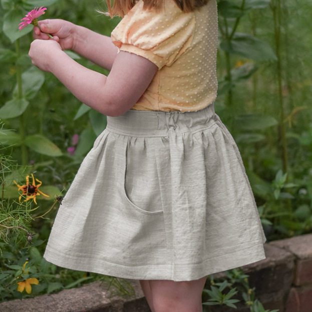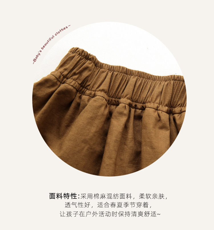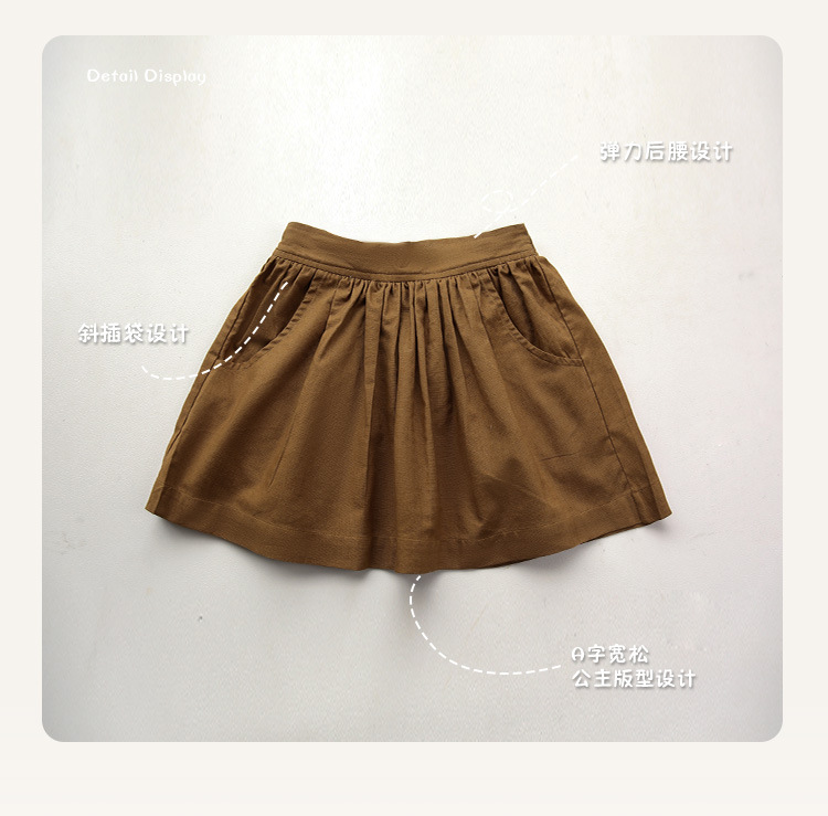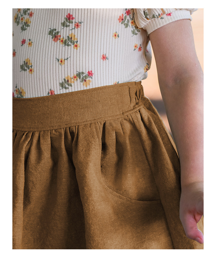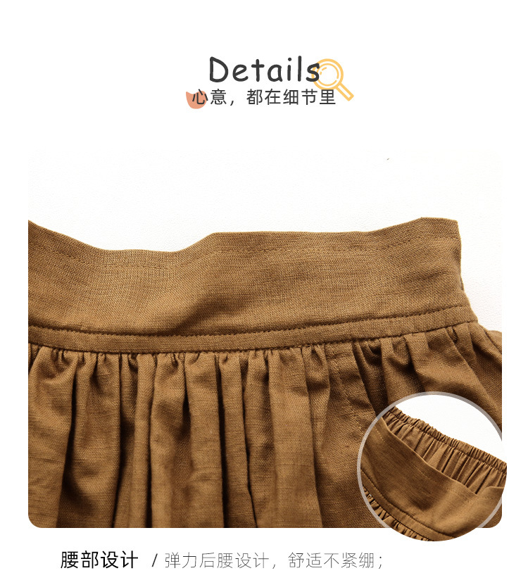 모리 포켓 작은 치마 어린이 면화와 리넨 느슨한 허리 주름 치마 2025 여름 귀여운 편안한 치마 어린이 여성스토어 가기